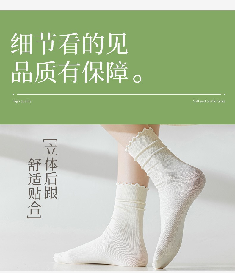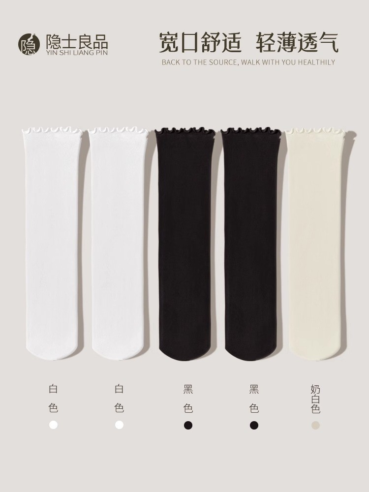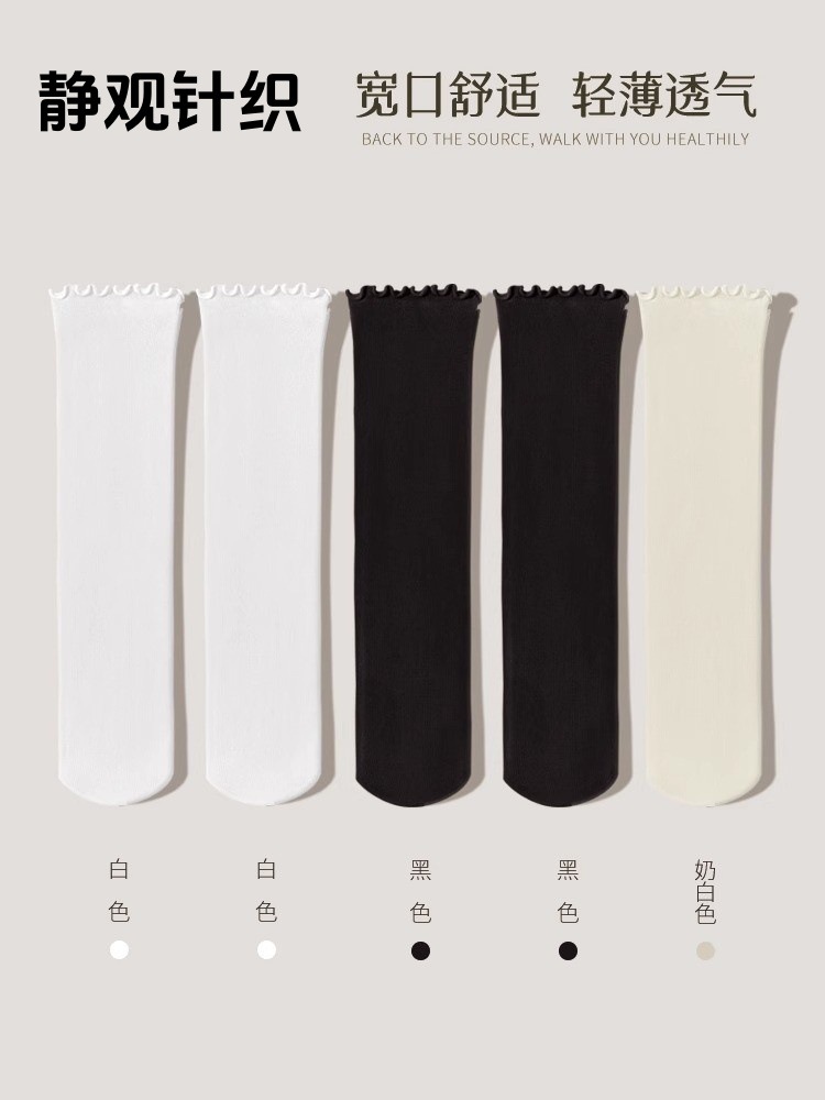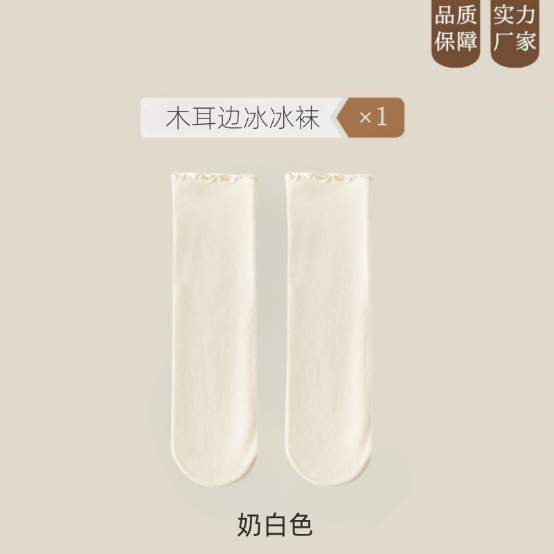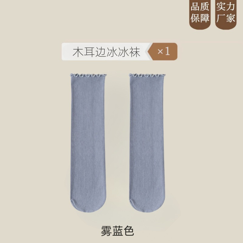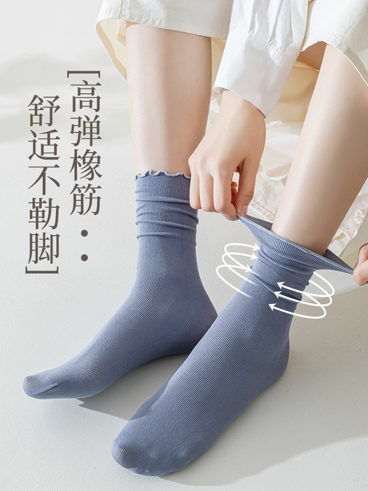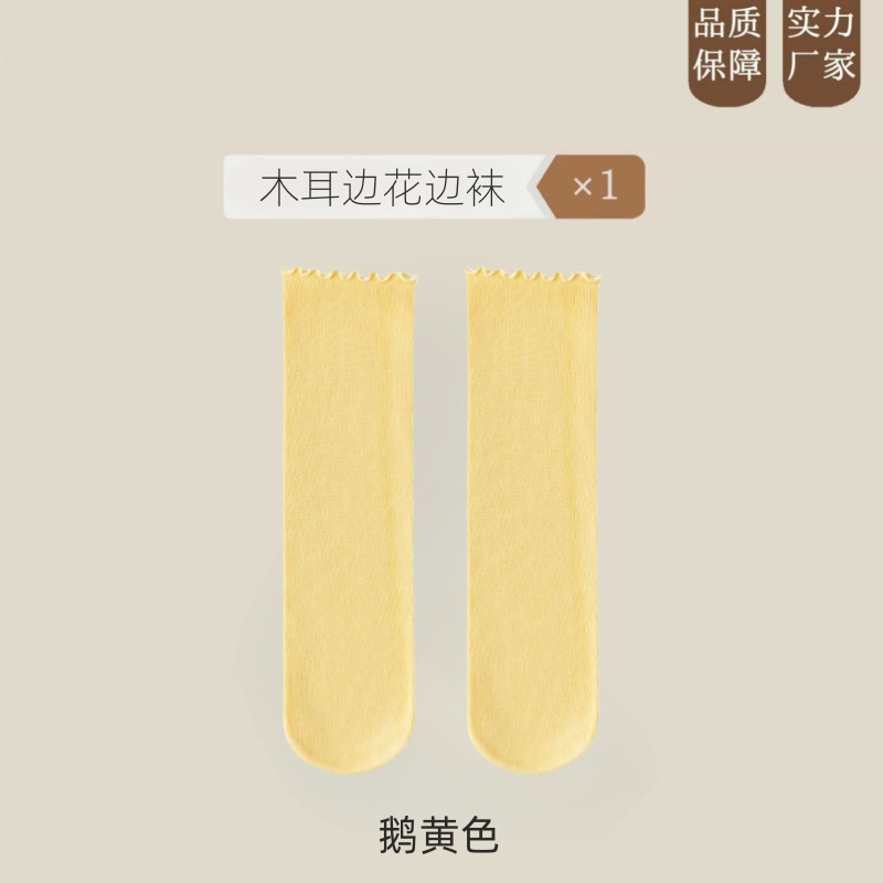 여름 얇은 얼음 양말 우드 이어 사이드 양말 여성용 스택 양말 벨벳 레이스 양말 일본 캔디 컬러 중간 길이 양말