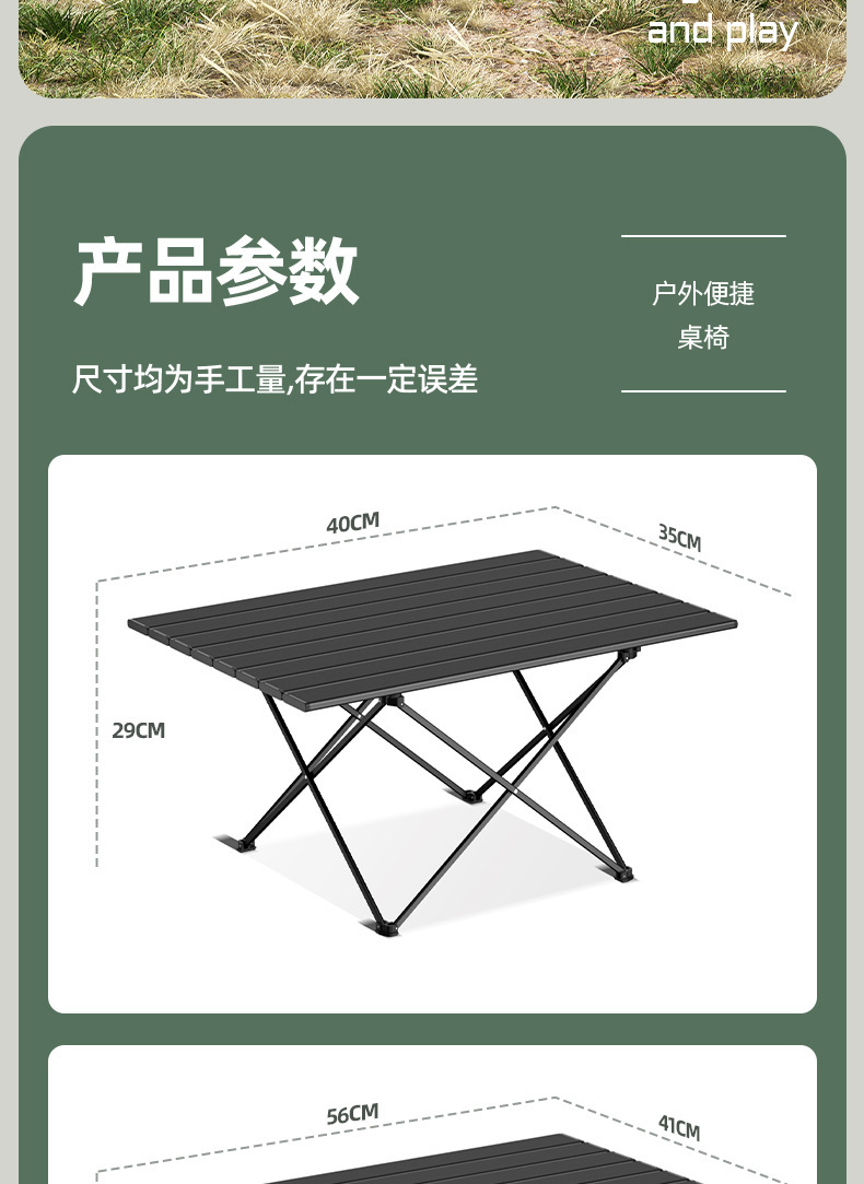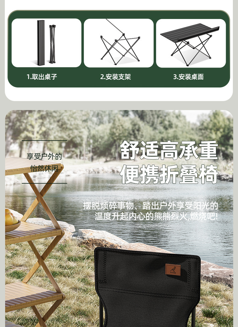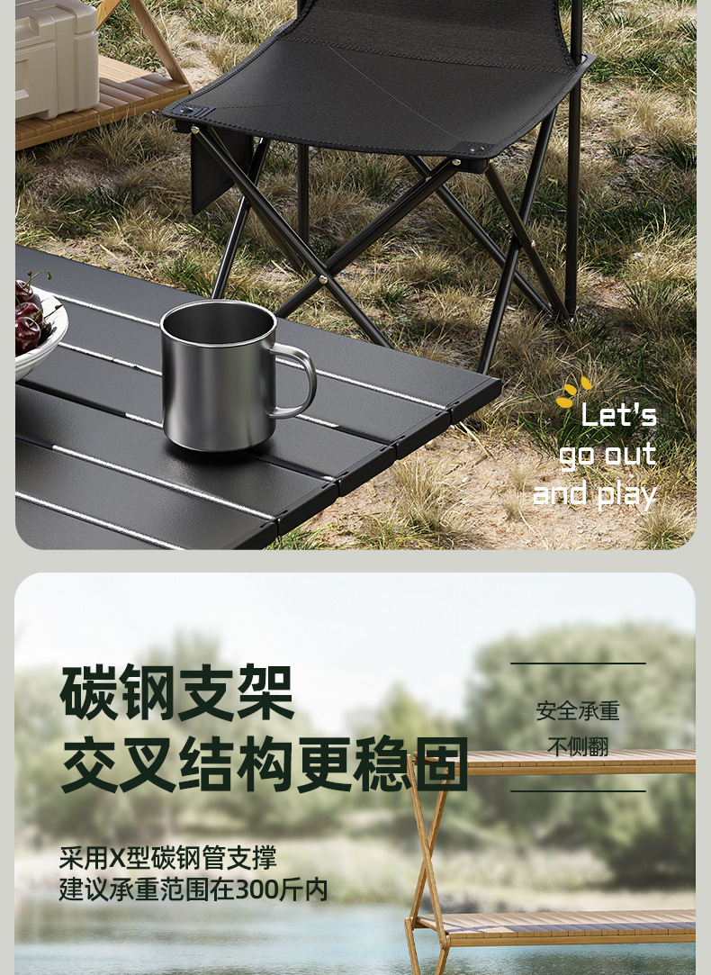 야외 접이식 테이블 휴대용 식탁 피크닉 캠핑 테이블과 의자 계란 롤 테이블과 의자 장비 바베큐 저장 탄소강