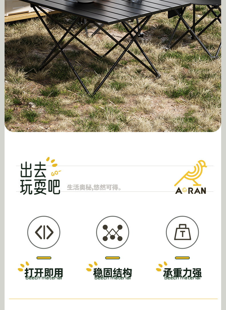 야외 접이식 테이블 휴대용 식탁 피크닉 캠핑 테이블과 의자 계란 롤 테이블과 의자 장비 바베큐 저장 탄소강스토어 가기
