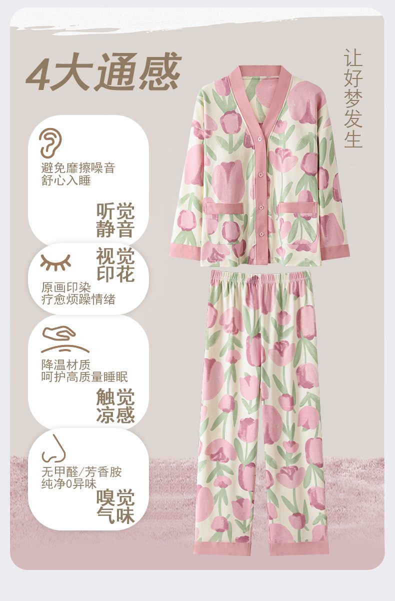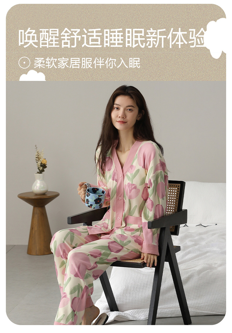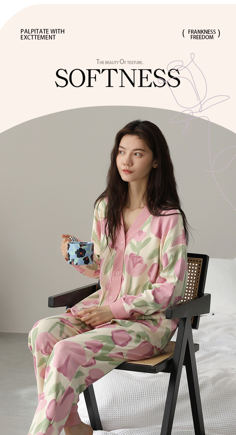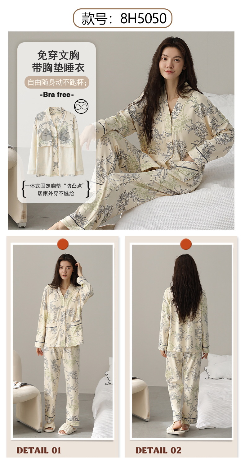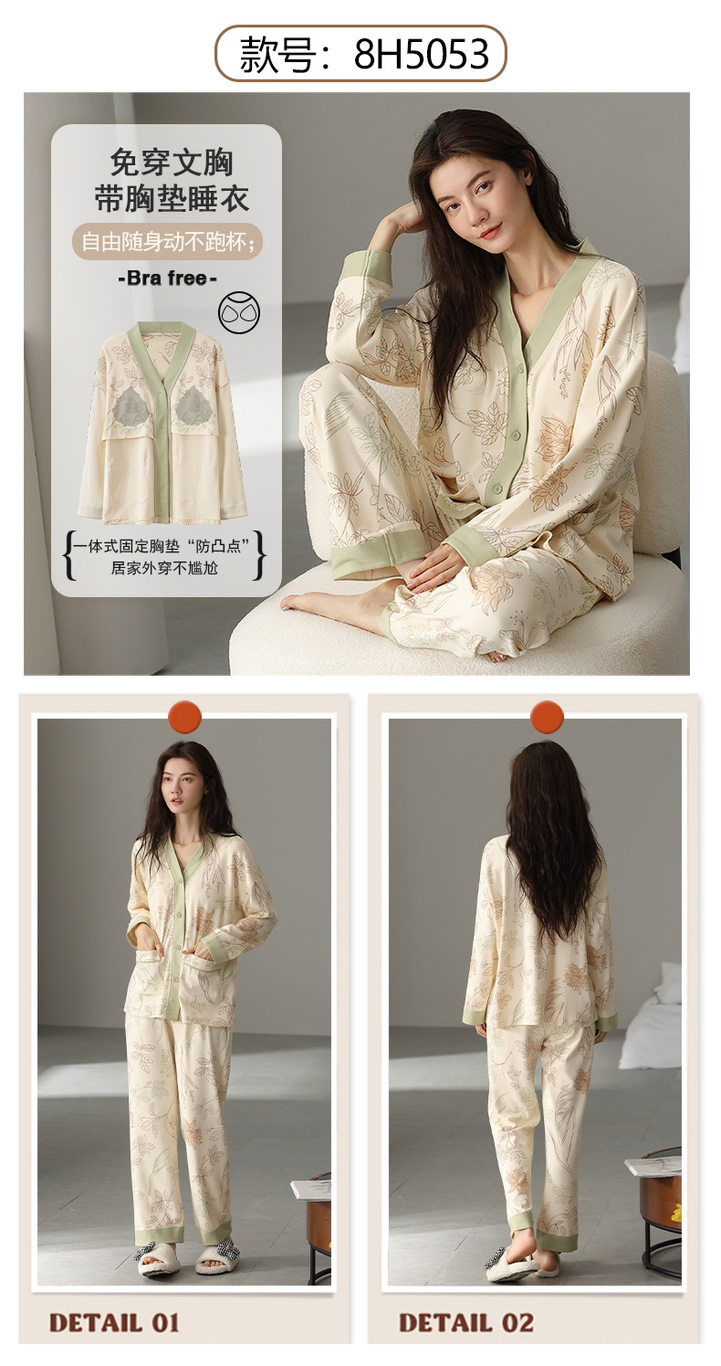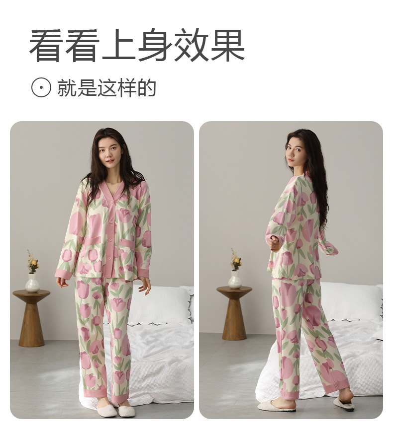 코튼 파자마 여성의 봄과 가을 가슴 패드 하나 2024 새로운 긴 소매 카디건 외부 착용 홈 의류 세트스토어 가기