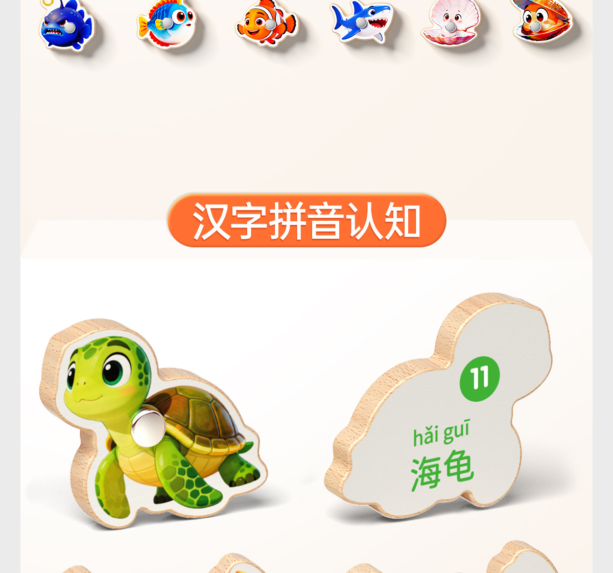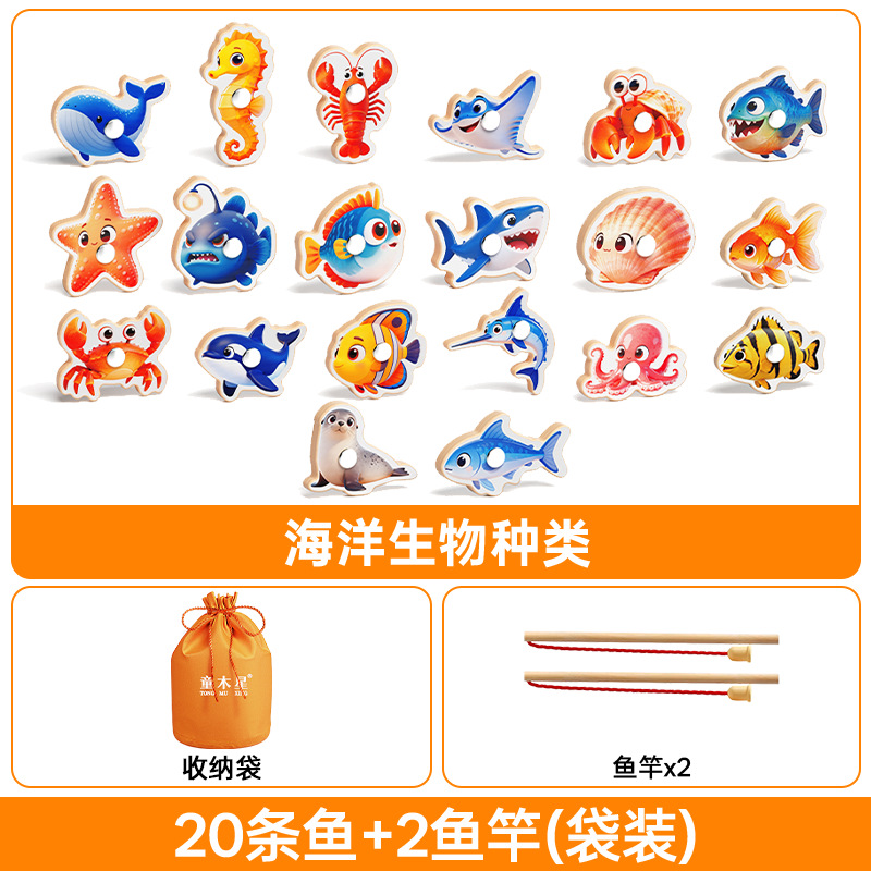 어린이 낚시 장난감 자기 나무 물고기 1 ~ 3 세 아기 퍼즐 조기 교육인지 바다 물고기 첫 번째 생일 선물