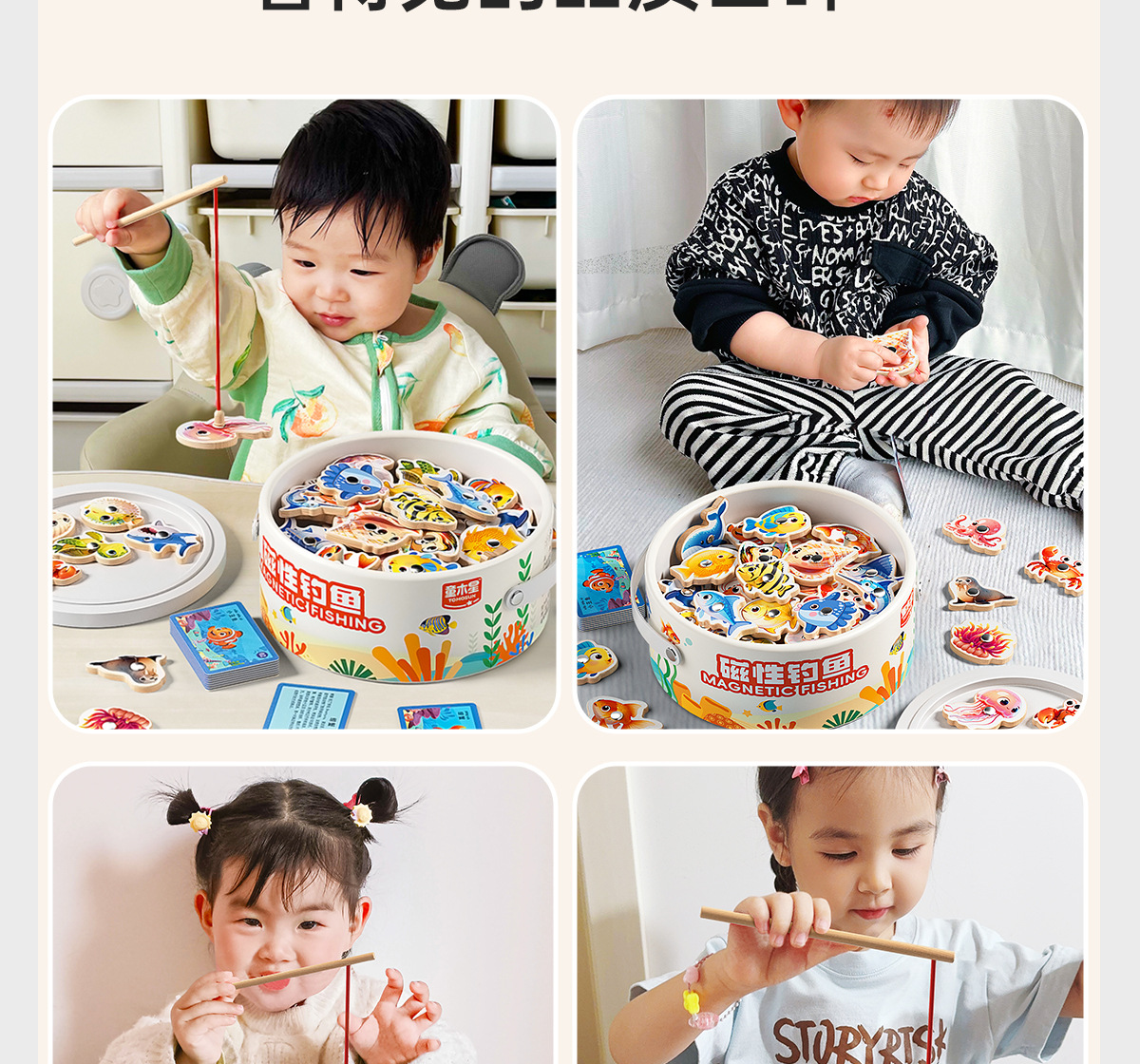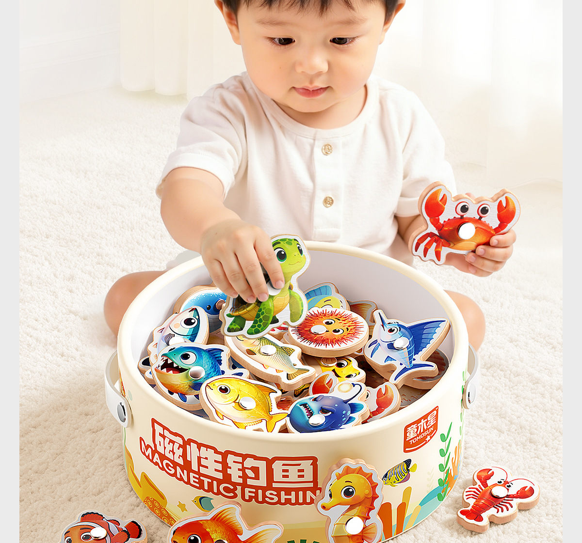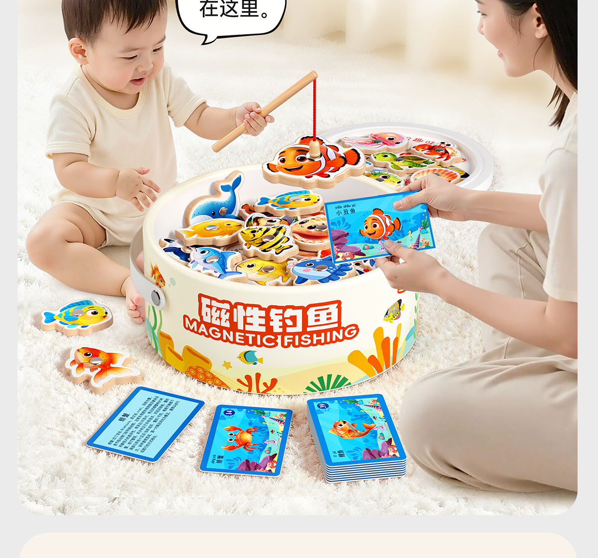 어린이 낚시 장난감 자기 나무 물고기 1 ~ 3 세 아기 퍼즐 조기 교육인지 바다 물고기 첫 번째 생일 선물스토어 가기