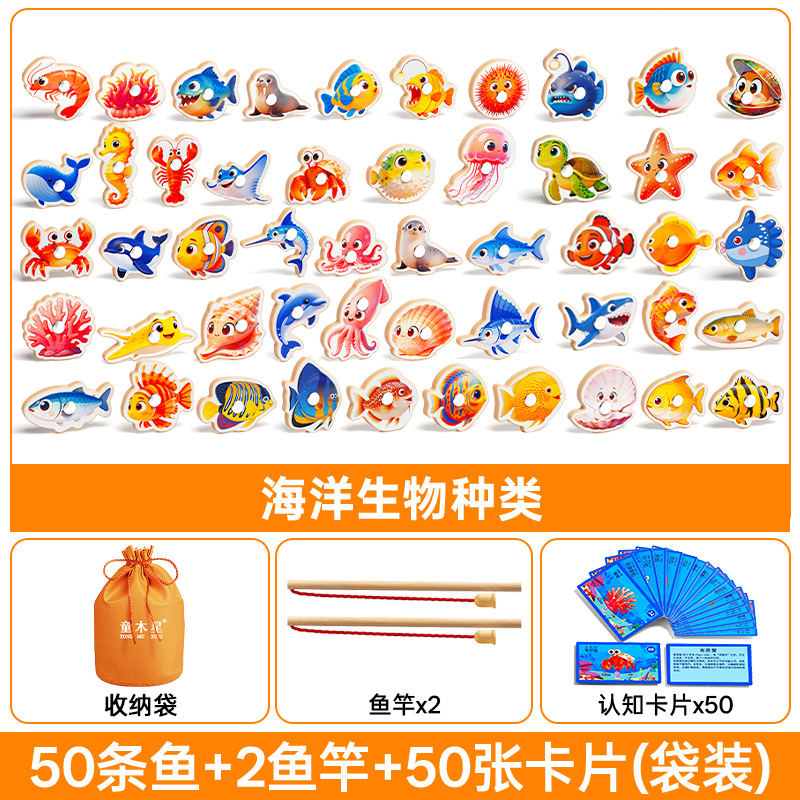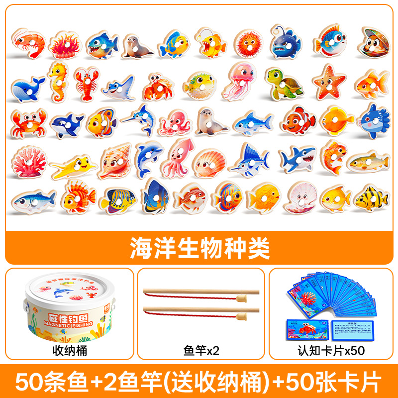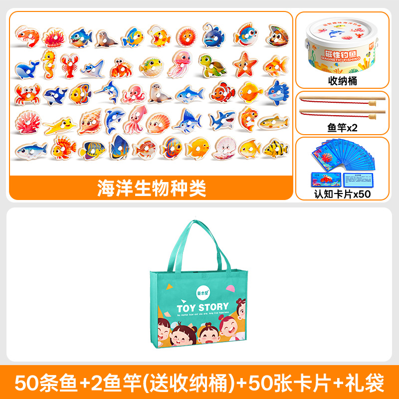 • 【선물 세트】 물고기 50마리 + 낚싯대 2개 + 카드 50장 + 통 포장