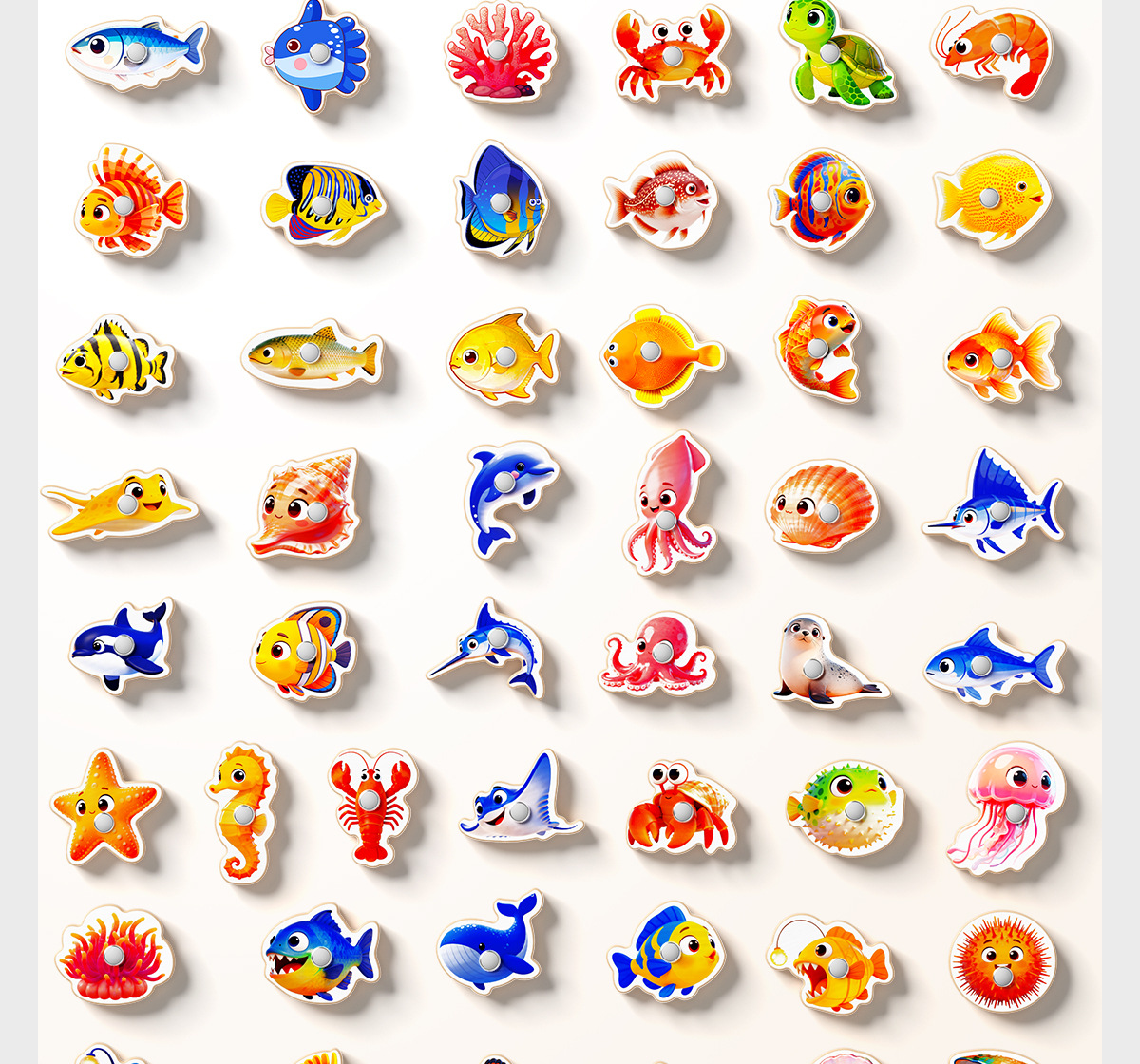• 자석 물고기 50개 + 낚싯대 2개 + 카드 50장 (수납통 증정)