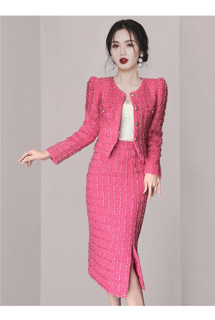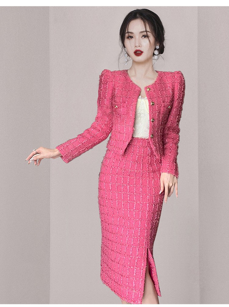 크로스보더 작은 향수 스타일 정장 2025 신상 인기 가을 작은 향수 스타일 정장 스커트 고급 작은 드레스 투피스 세트