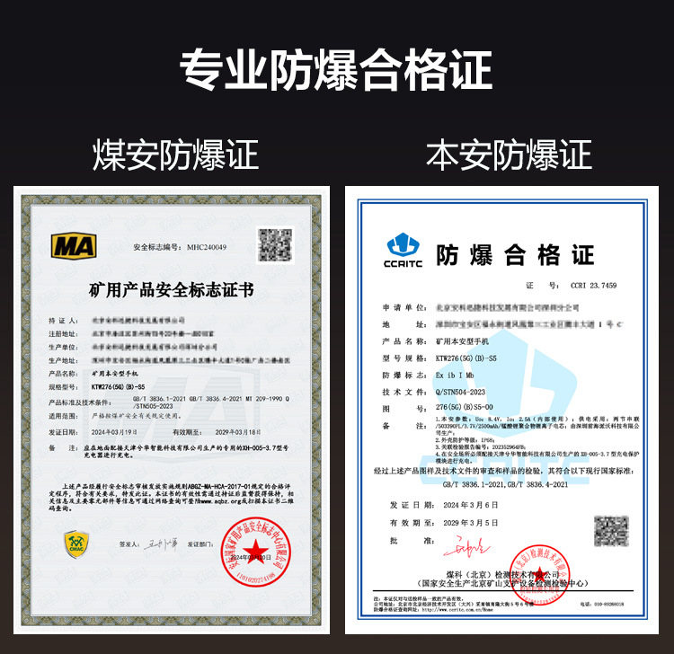 Anke Xunjie KTW276(5G)(B) -S5 석탄 안전 폭발 방지 휴대 전화 내국적으로 안전한 클래스 I 가스 폭발 방지 광산