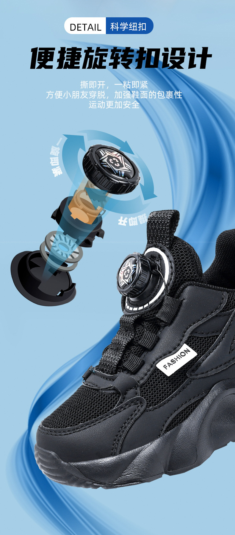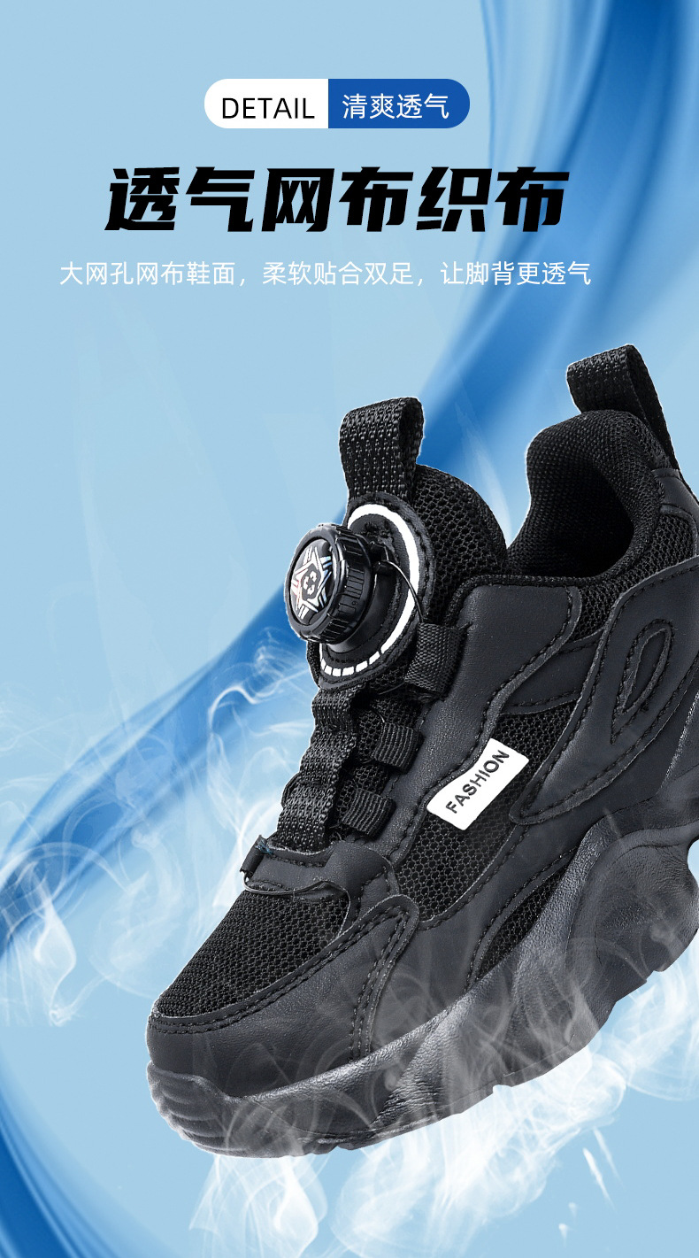 아동 운동화, 여아 메쉬 흰색 신발, 중대형 아동 회전 버클 미끄럼 방지 운동화, 남아 캐주얼 검정색 신발스토어 가기