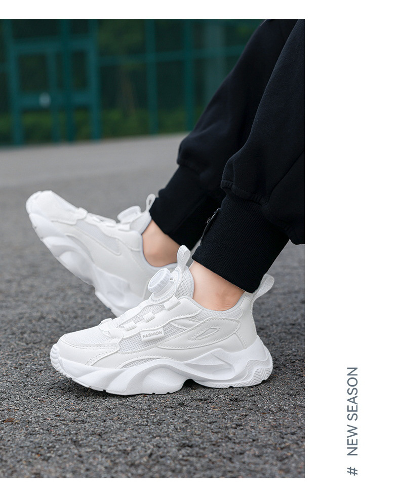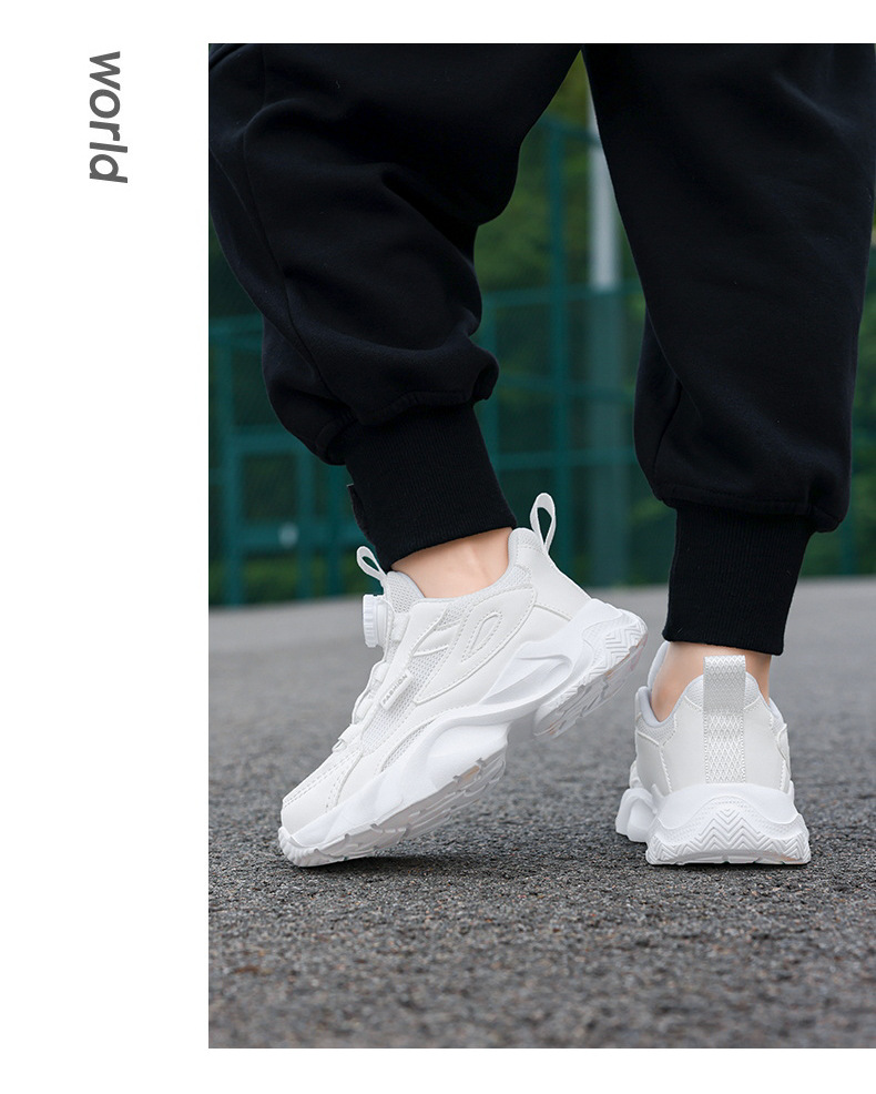 아동 운동화, 여아 메쉬 흰색 신발, 중대형 아동 회전 버클 미끄럼 방지 운동화, 남아 캐주얼 검정색 신발