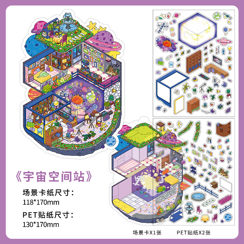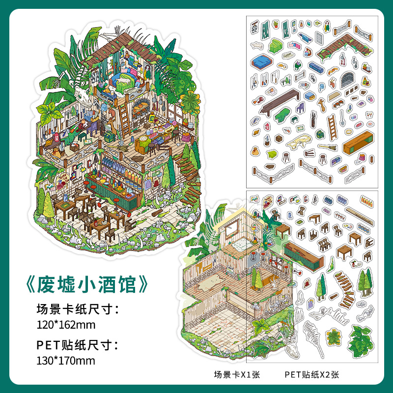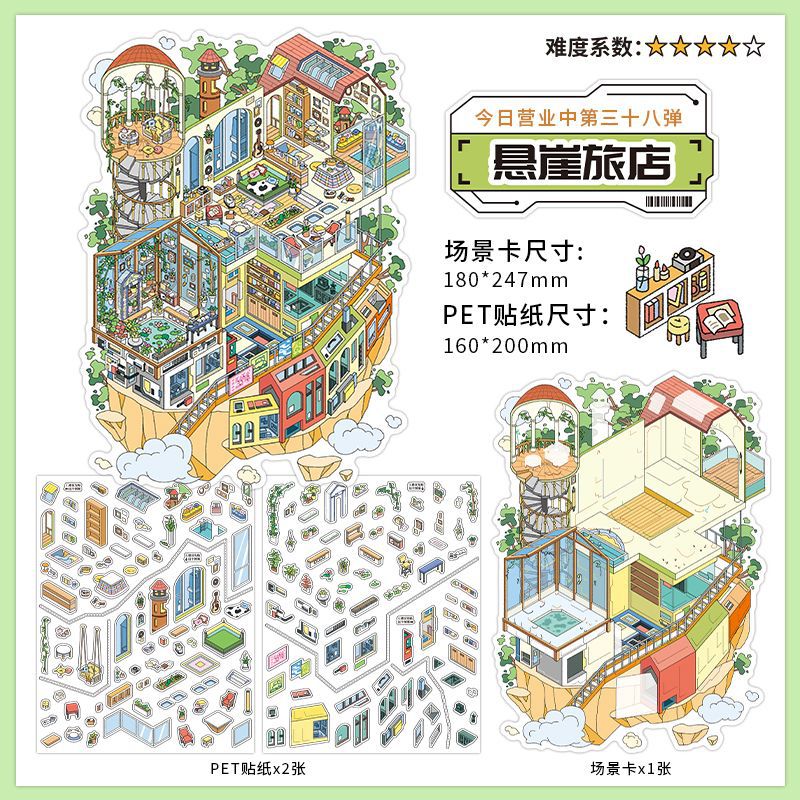인페렐. 나 미니어처 장면 PET 스티커 diy 오늘 사업에 귀여운 수제 3 차원 조경 오두막 스티커스토어 가기