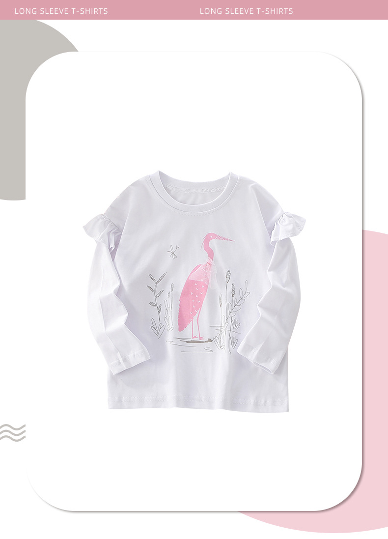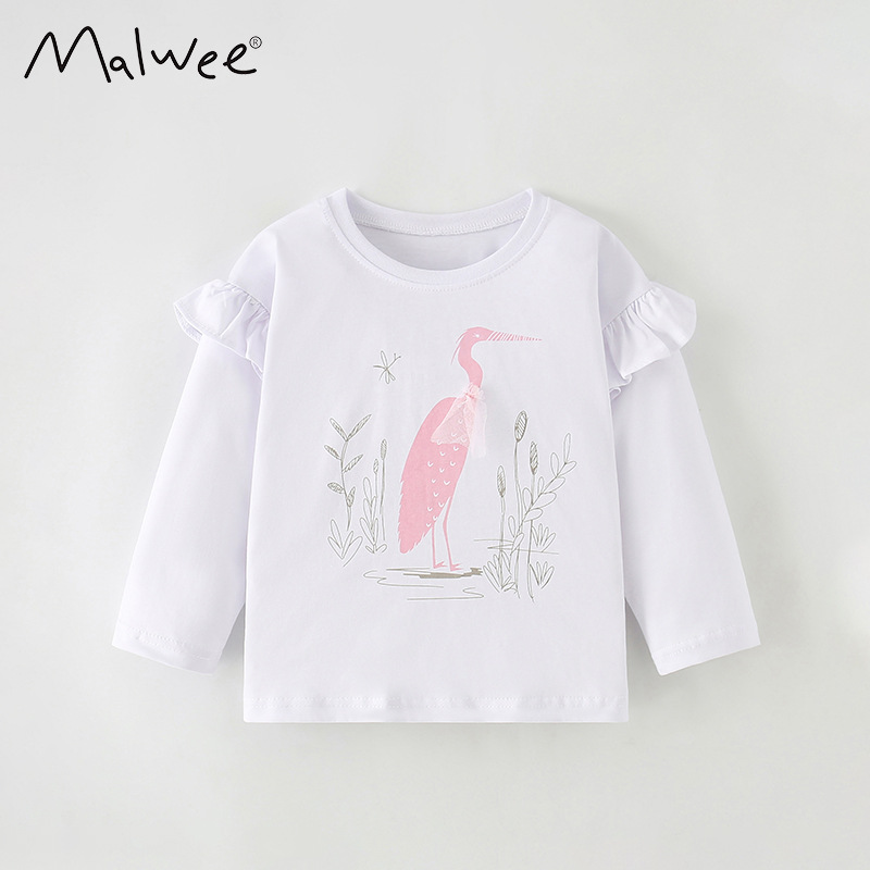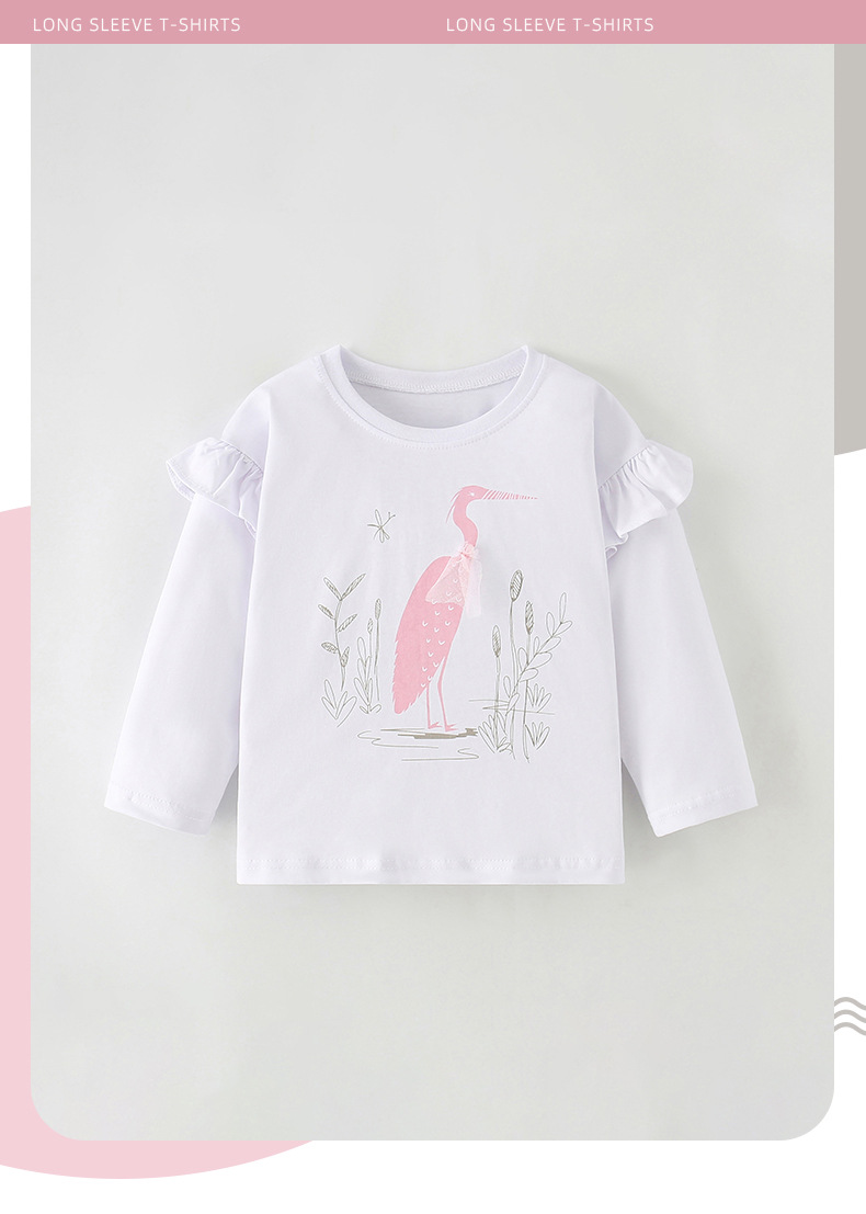 말위 소녀 티셔츠 가을과 겨울 새로운 유럽과 미국 어린이 둥근 목 서양식 프린트 긴 소매 바닥