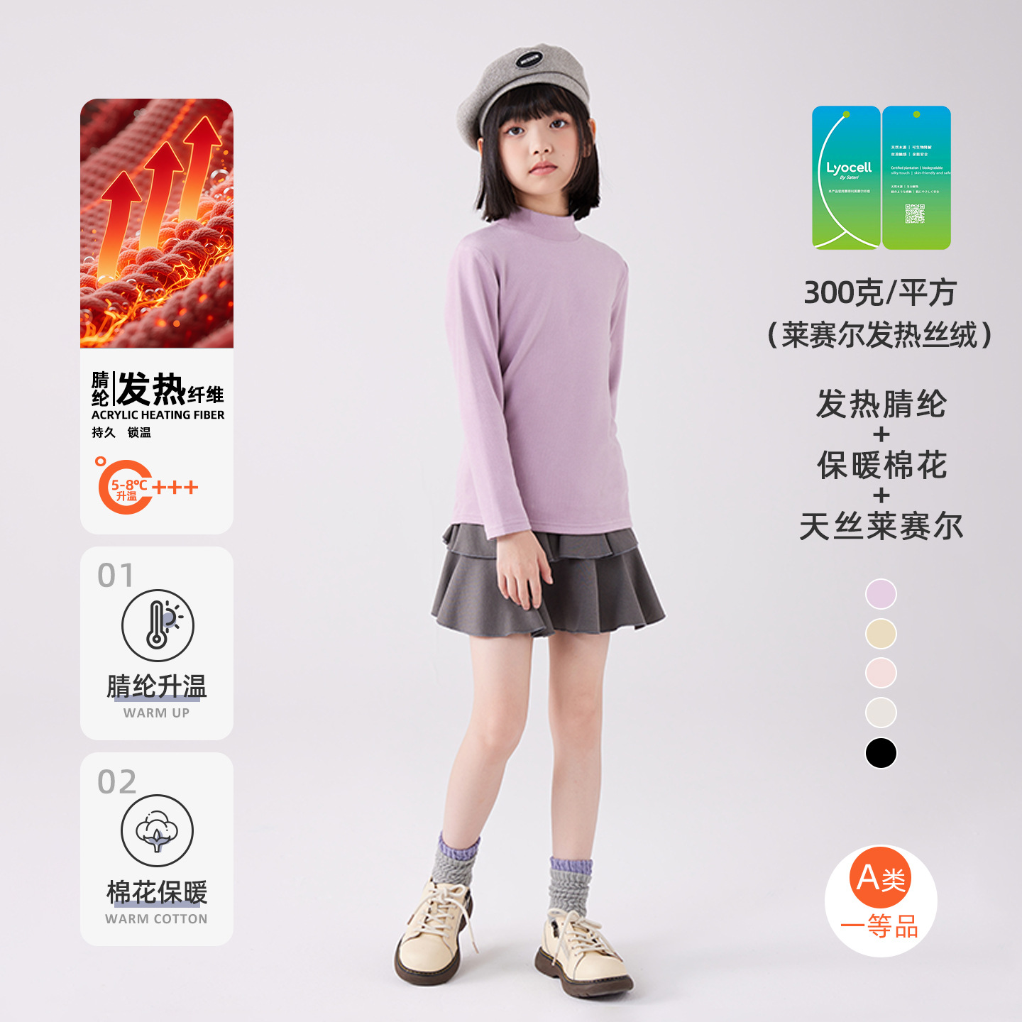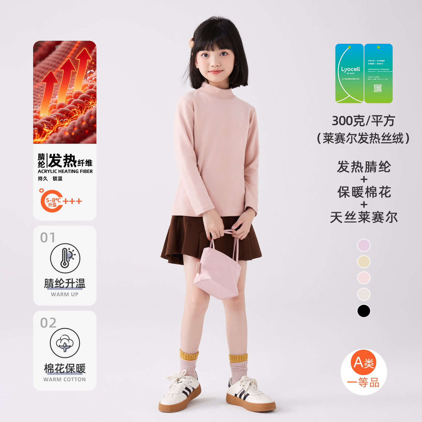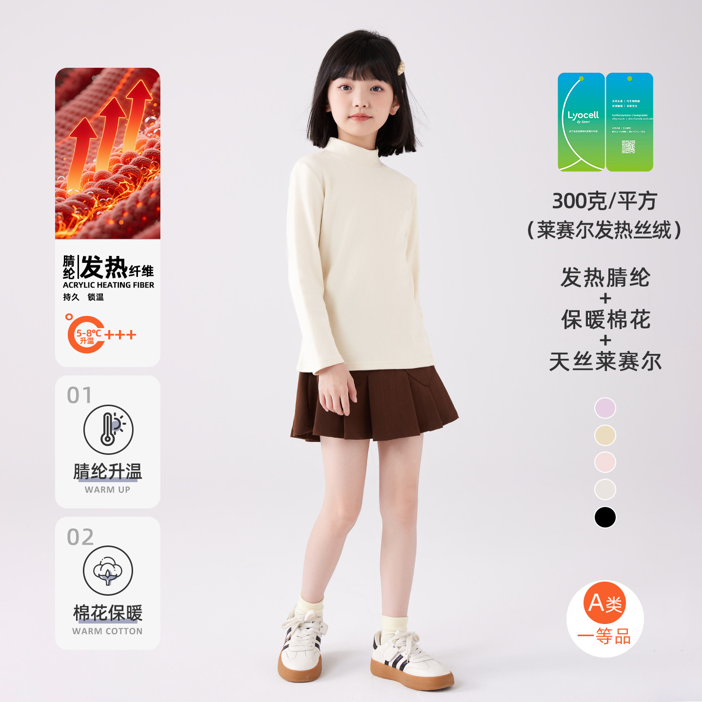 여아 텐셀 리오셀 이너웨어 봄 가을 겨울 아동 하프넥 속옷 중대형 아동 긴팔 상의 A급