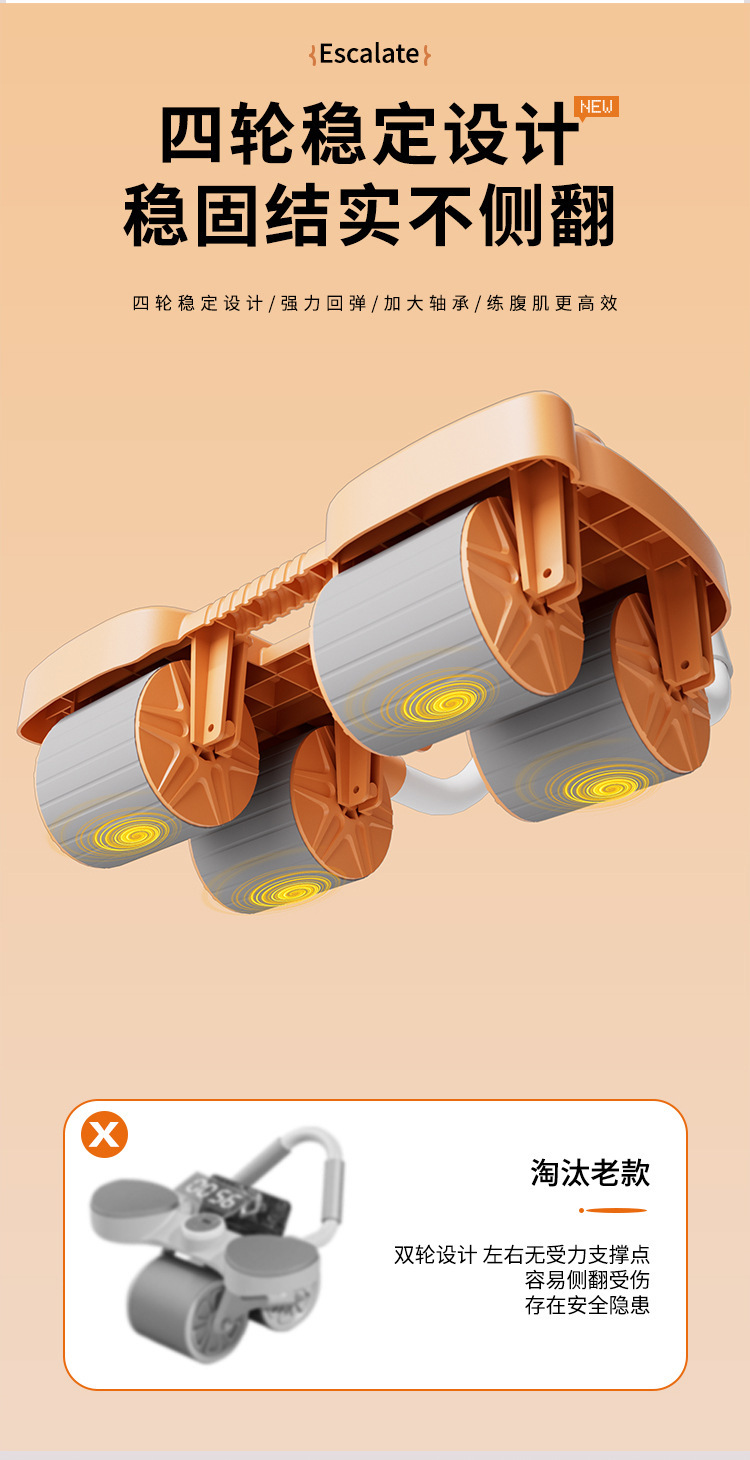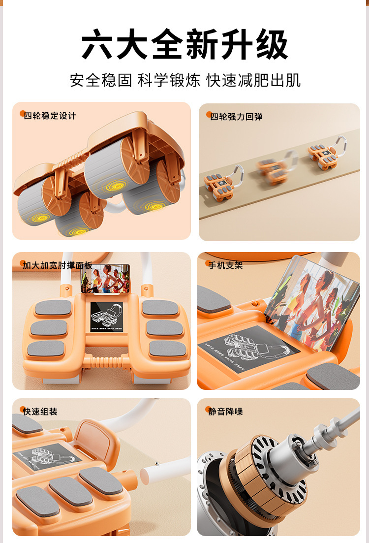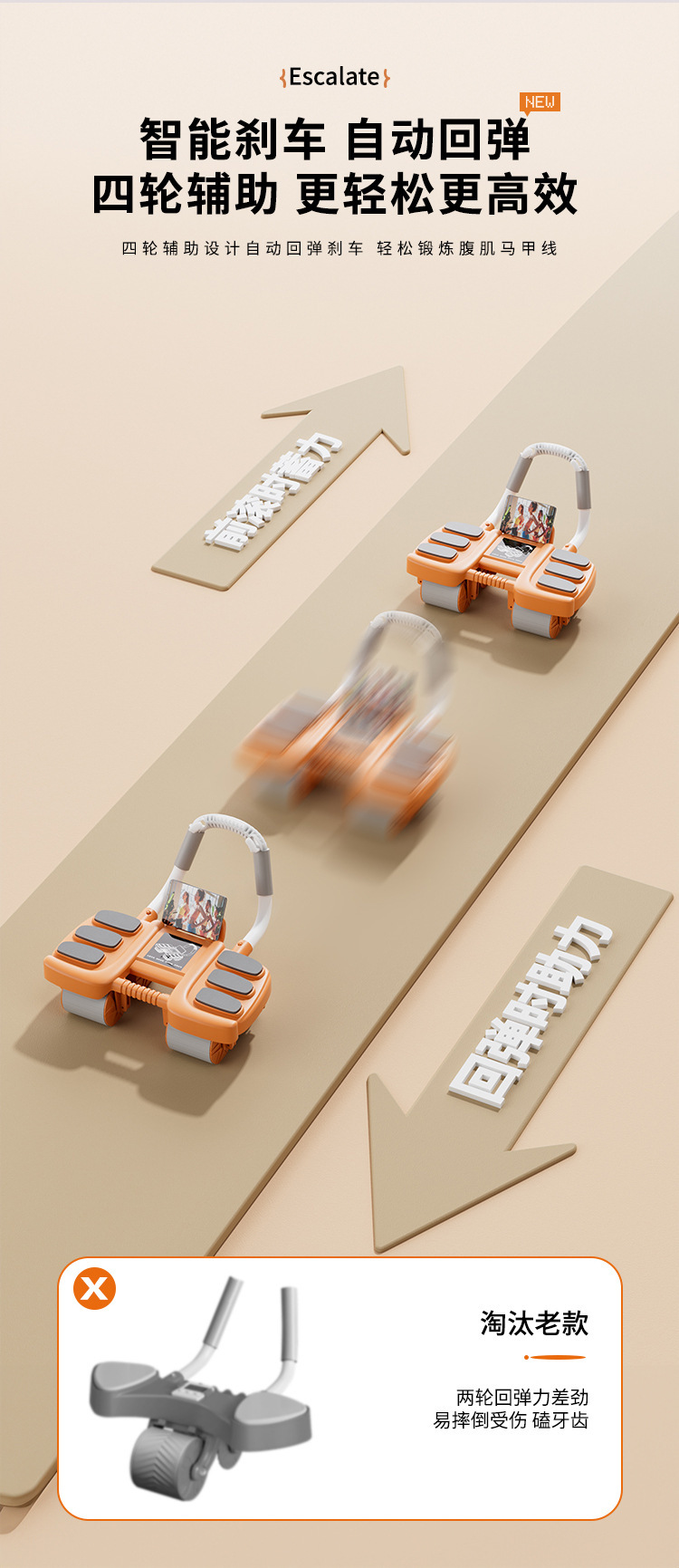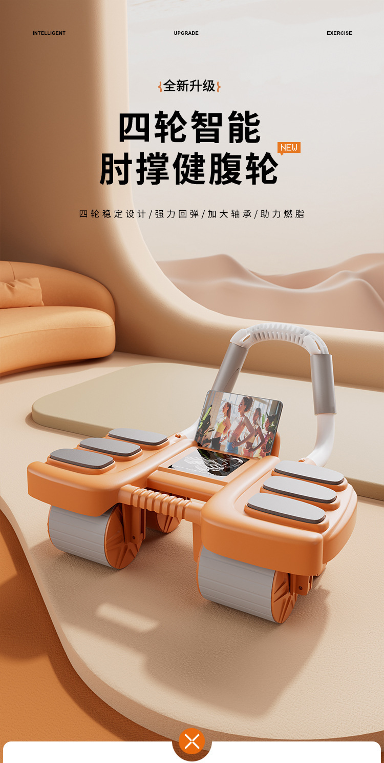 새로운 지능형 4 륜 복부 강화 휠 자동 리바운드 팔꿈치 보조기 복부 근육 훈련 인공물 6 팔꿈치 보조기 복부 롤링 휠 운동