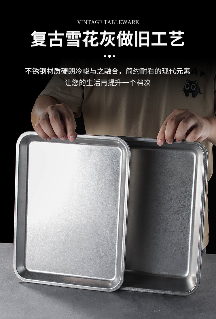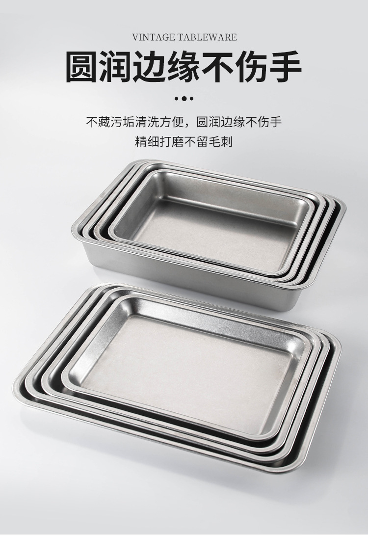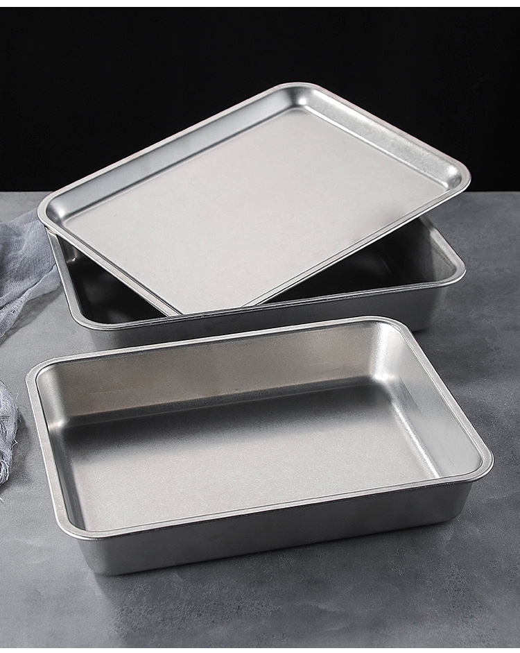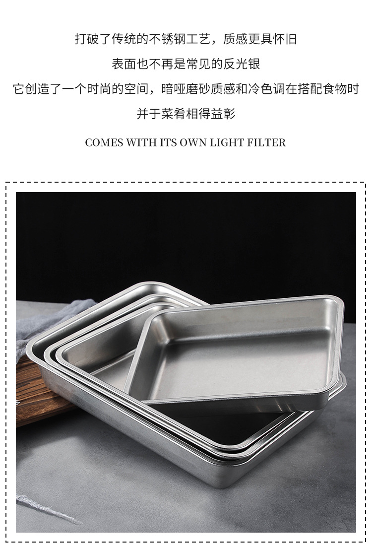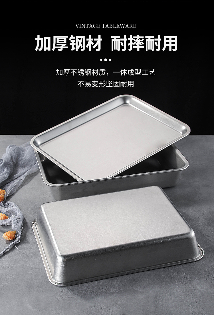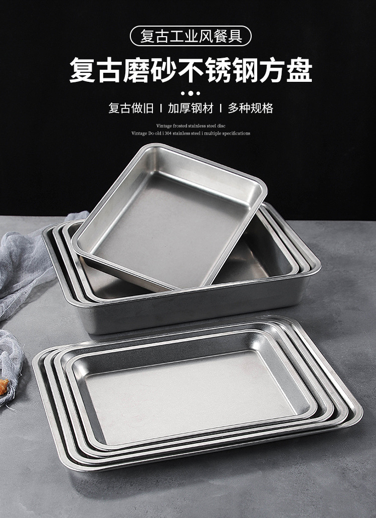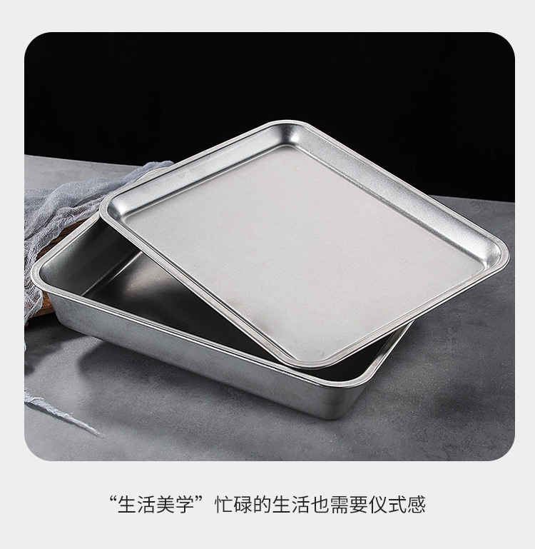 스테인레스 스틸 스퀘어 플레이트 뚜껑이 달린 직사각형 뷔페 플레이트 찐 쌀 트레이 매점 플랫 하단 스퀘어 분지 도매스토어 가기