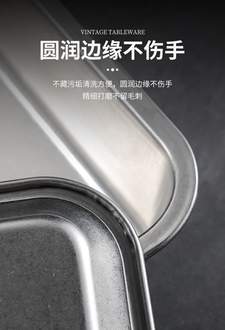 스테인레스 스틸 스퀘어 플레이트 뚜껑이 달린 직사각형 뷔페 플레이트 찐 쌀 트레이 매점 플랫 하단 스퀘어 분지 도매
