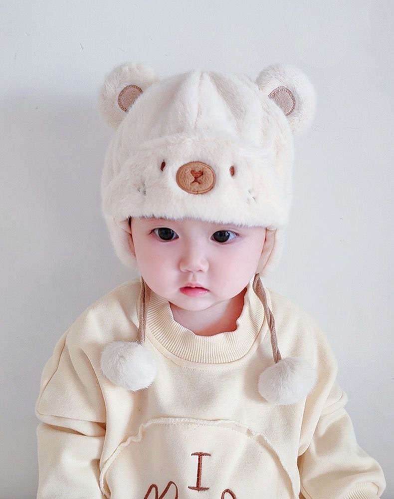 아기 모자 가을과 겨울 아기 소년과 소녀 귀여운 Elastiness 푹신한 모자 두꺼운 따뜻한 겨울 아기 귀 보호 모자스토어 가기