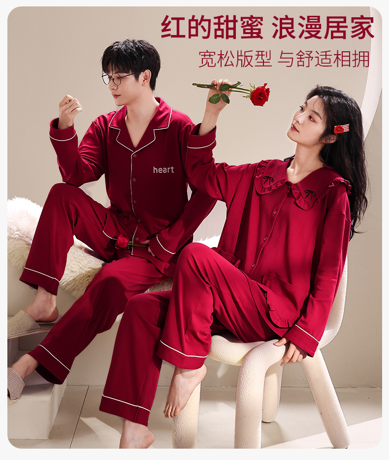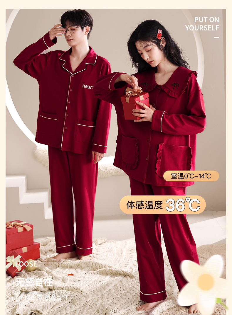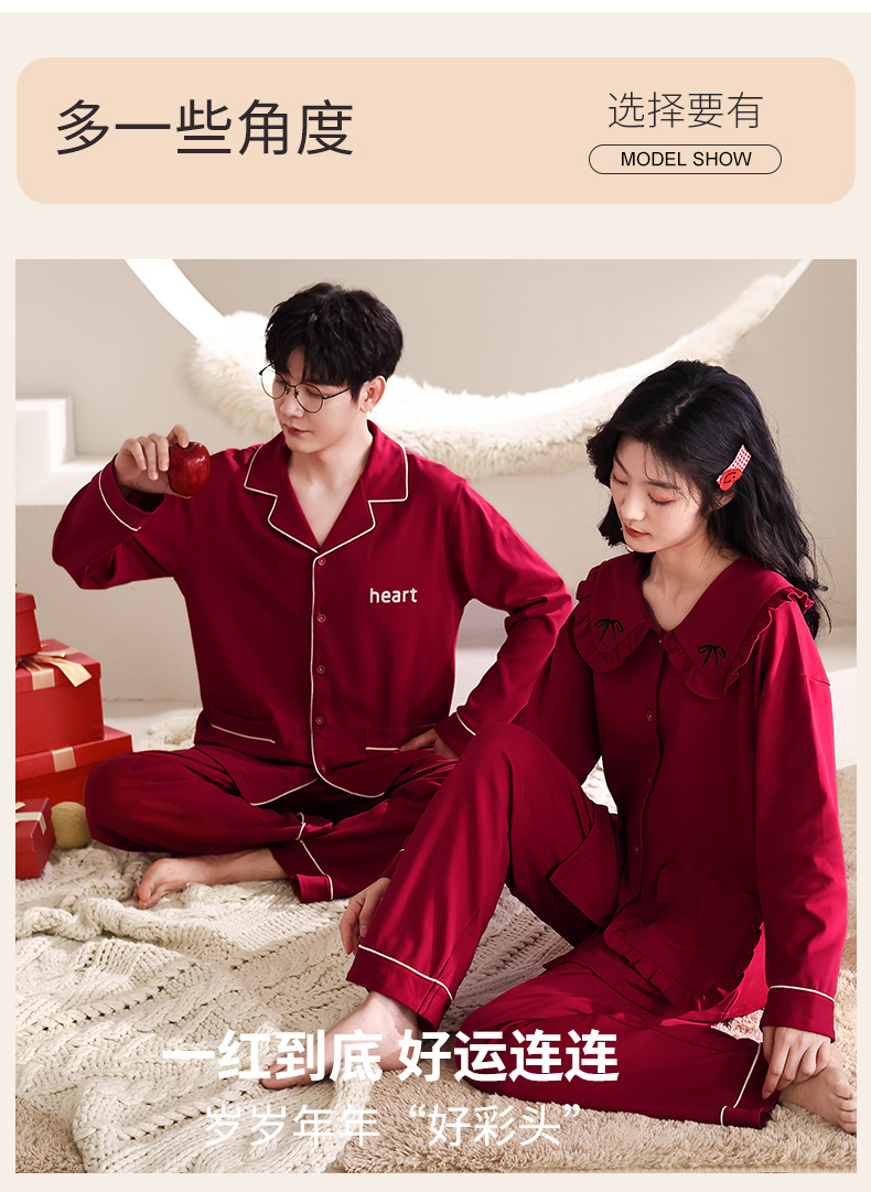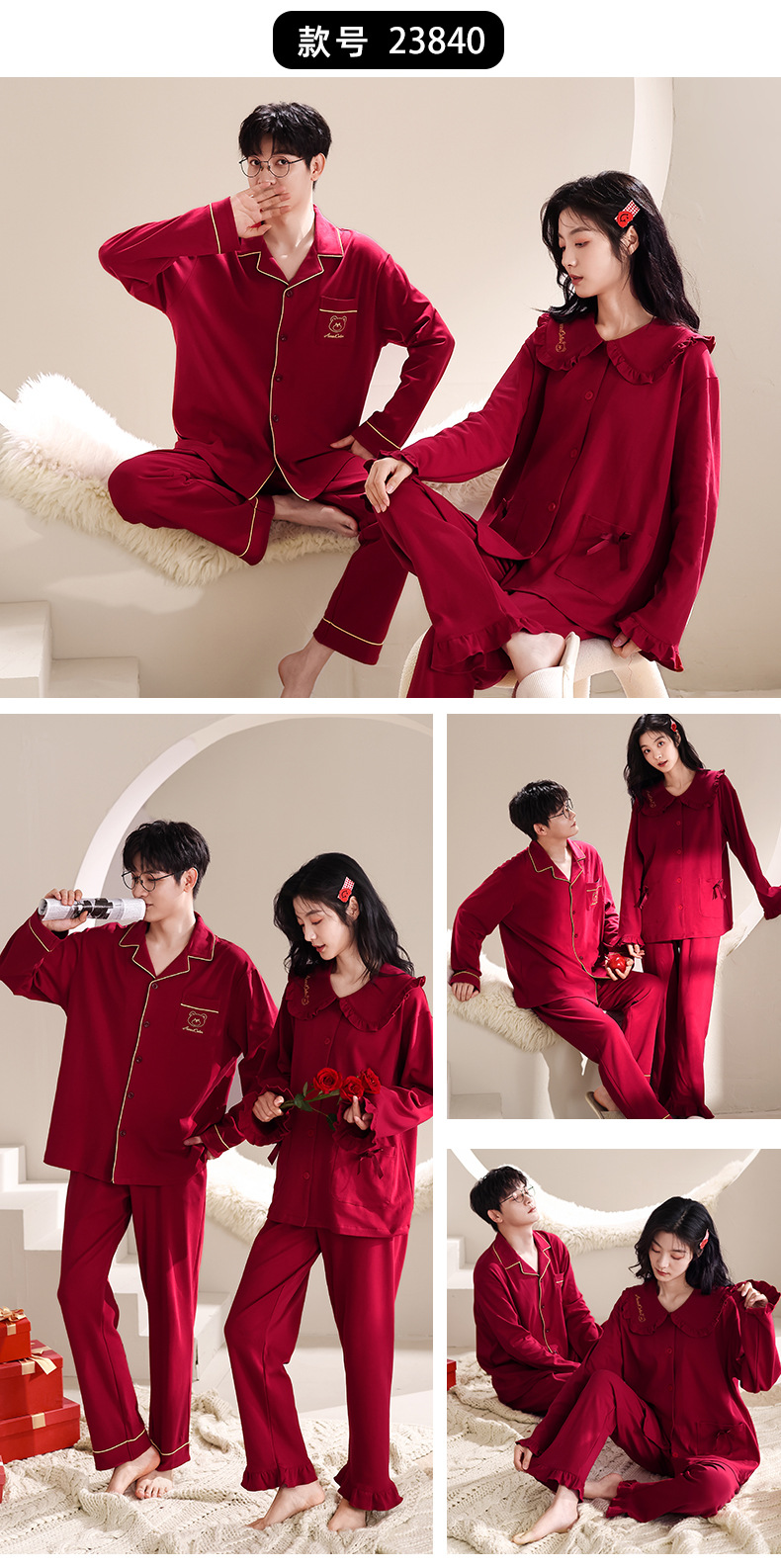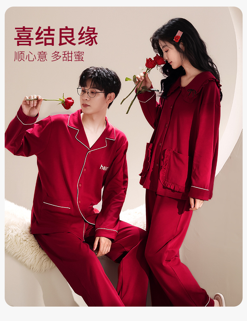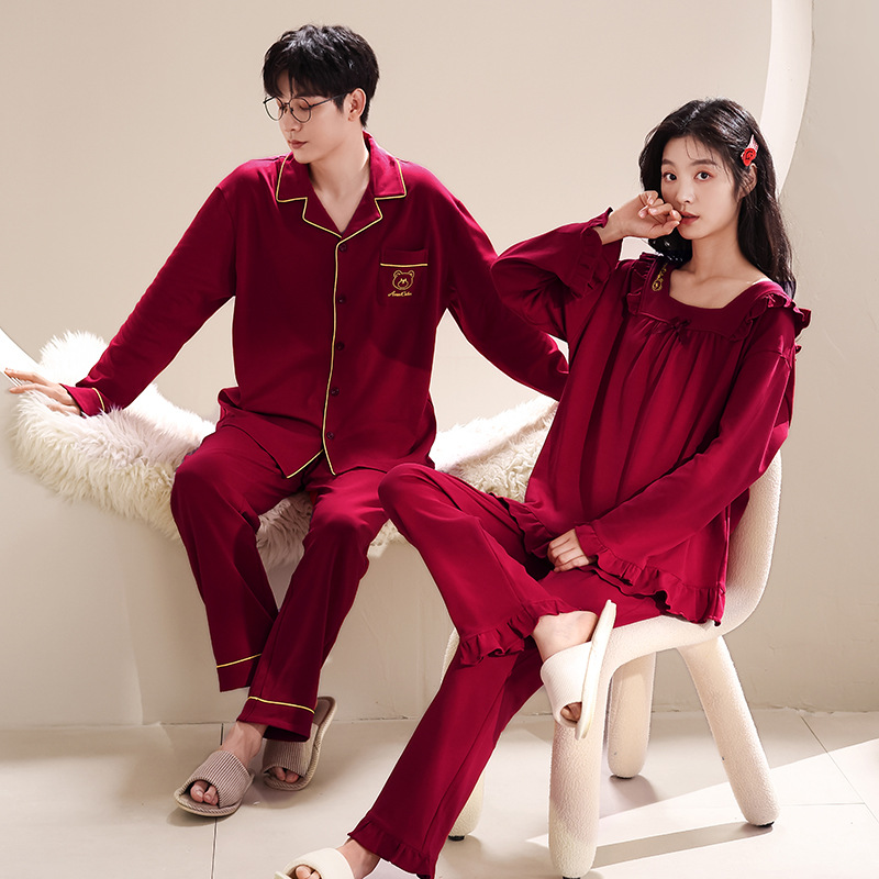 남자 잠옷 결혼식 신혼 부부 세트 면 붉은 면 홈 옷 여성의 봄 가을과 겨울 긴 소매 세트스토어 가기