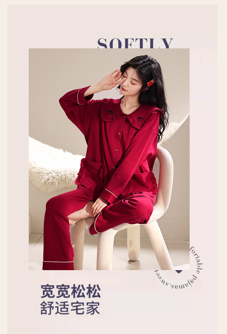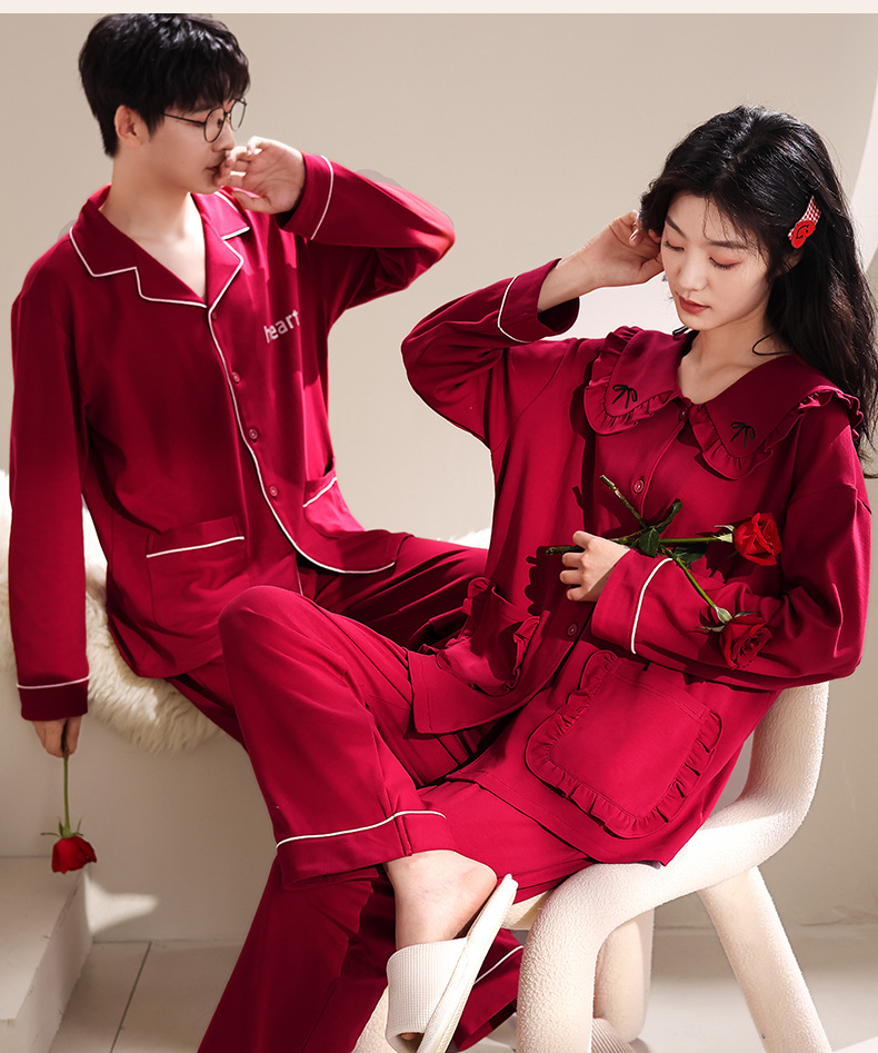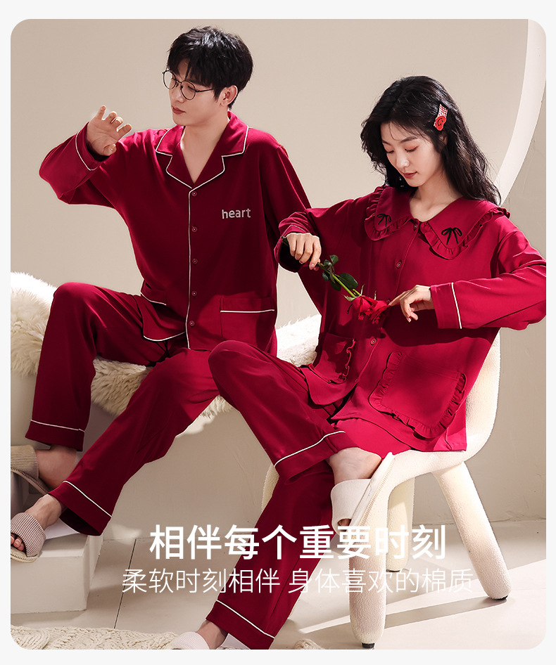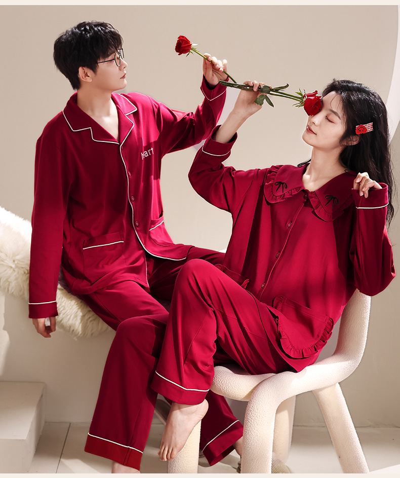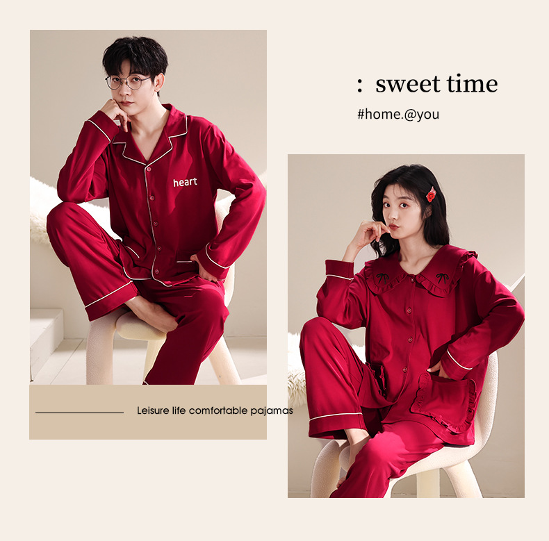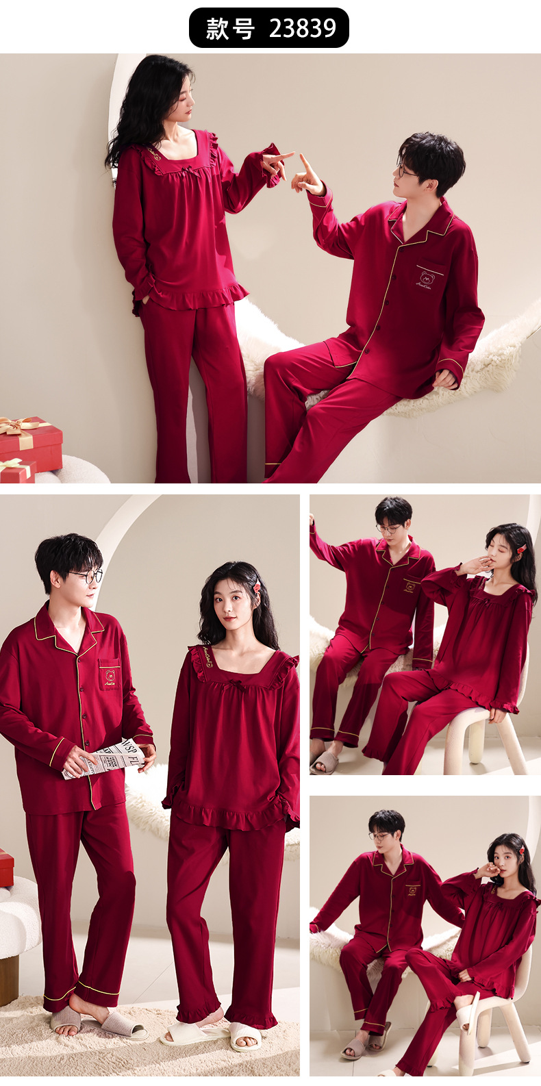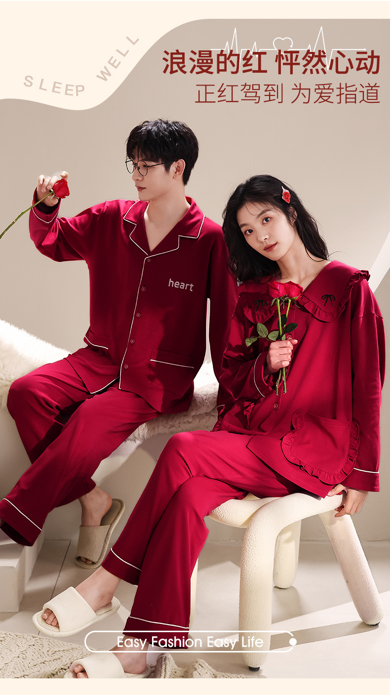 남자 잠옷 결혼식 신혼 부부 세트 면 붉은 면 홈 옷 여성의 봄 가을과 겨울 긴 소매 세트스토어 가기