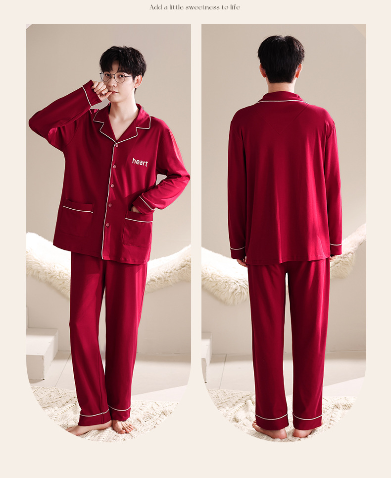 남자 잠옷 결혼식 신혼 부부 세트 면 붉은 면 홈 옷 여성의 봄 가을과 겨울 긴 소매 세트