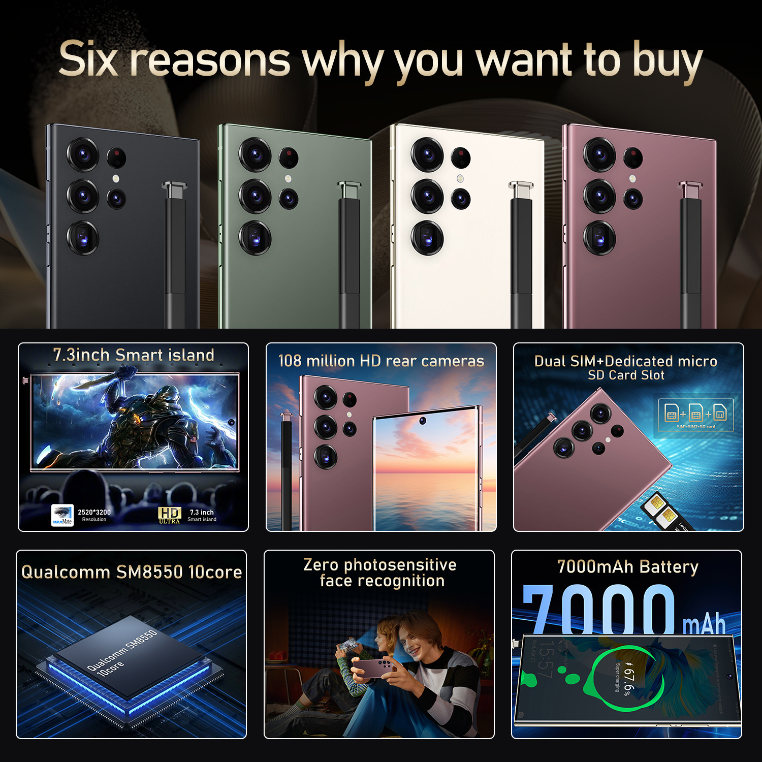국경 간 스마트폰 S24 Ultra True 4G True Perforation 7.3 대형 스크린 1300만 픽셀 4+64 True Octa Core