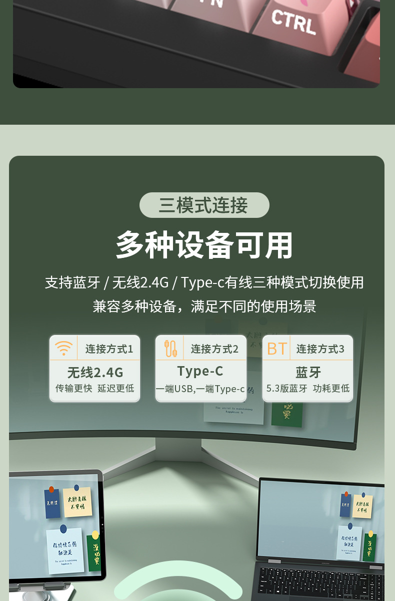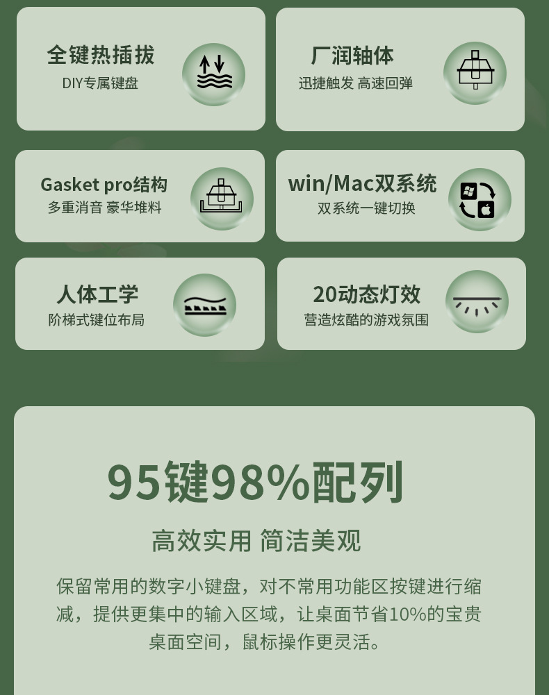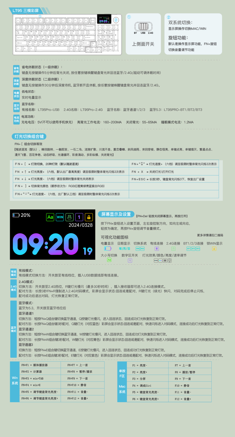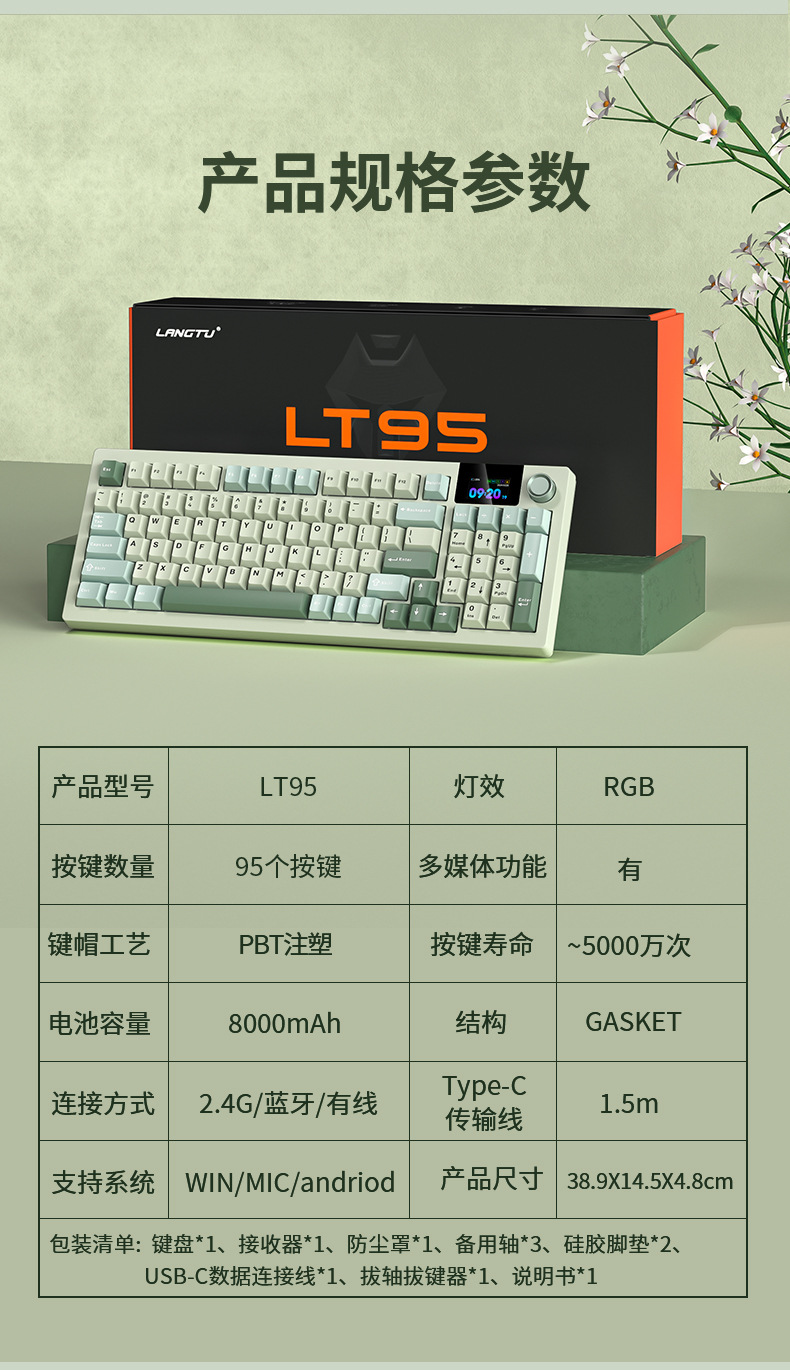 狼途LT95高颜值游戏电竞机械键盘客制化三模无线蓝牙打字办公键盘