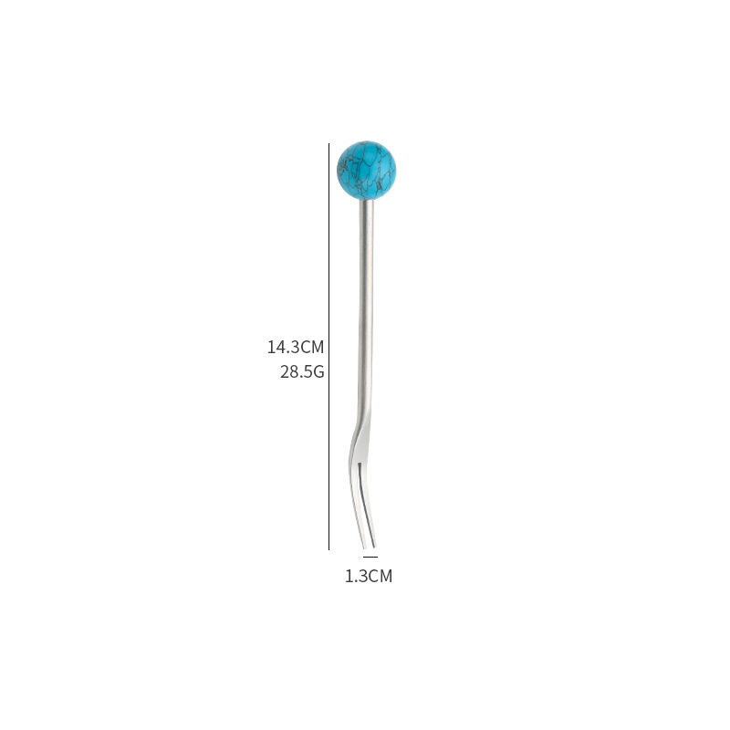 높은 색상 가치 천연 원석 304 스테인레스 스틸 혼합 숟가락 창조적 인 공 혼합 차 숟가락 커피 특수 믹싱로드
