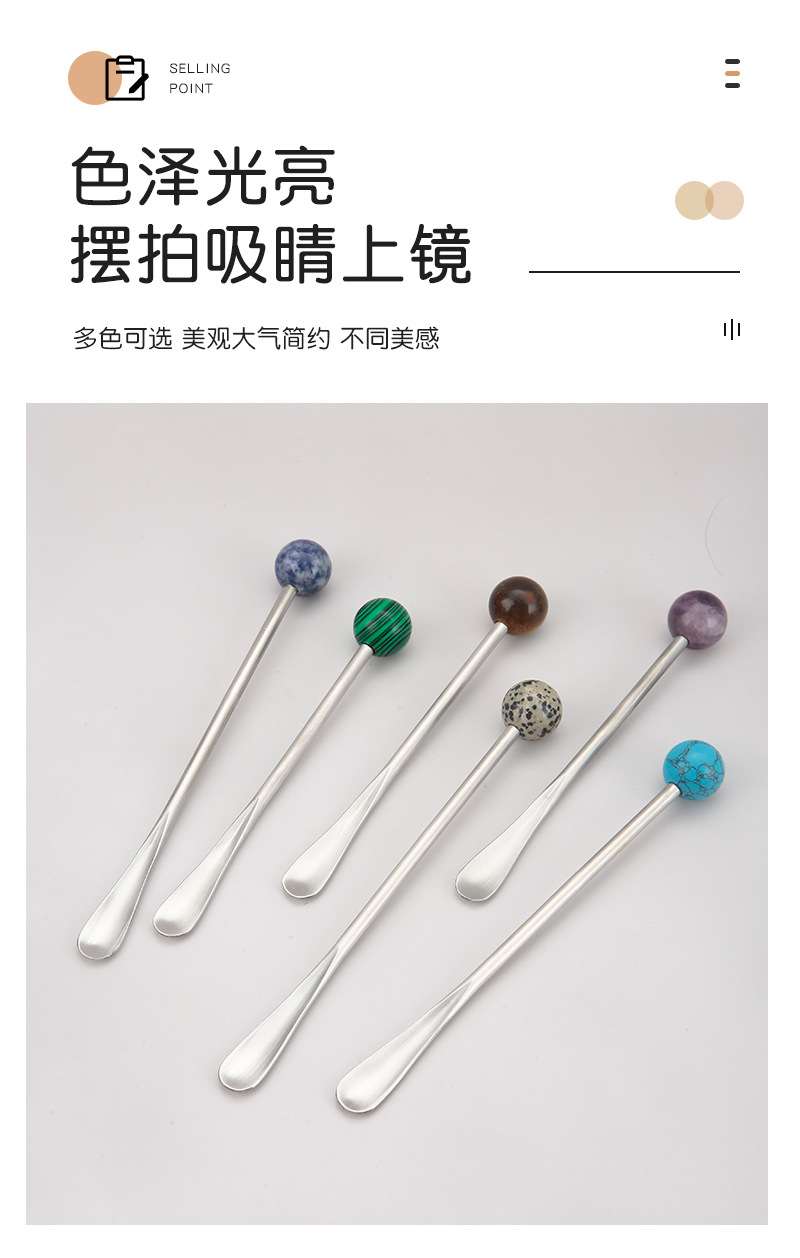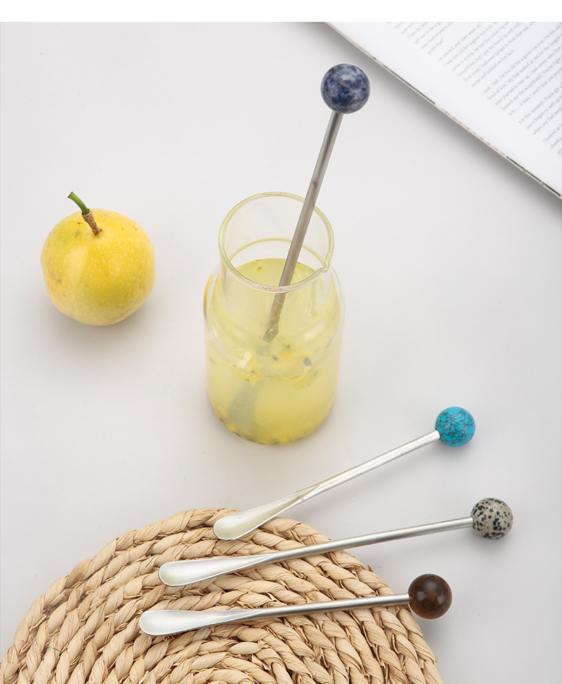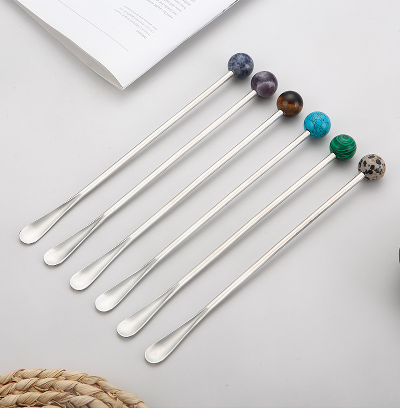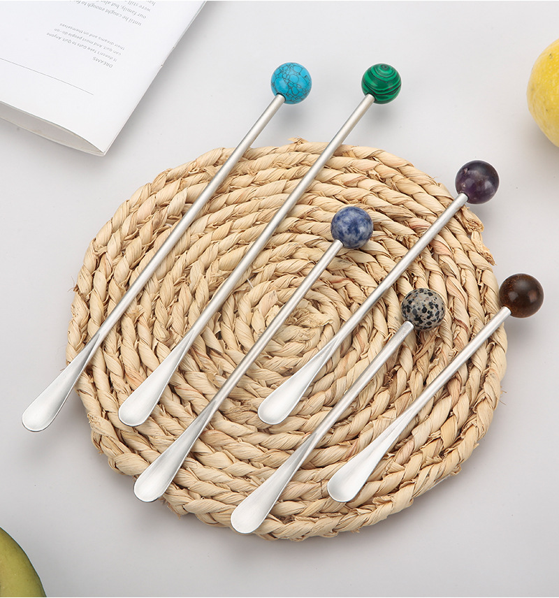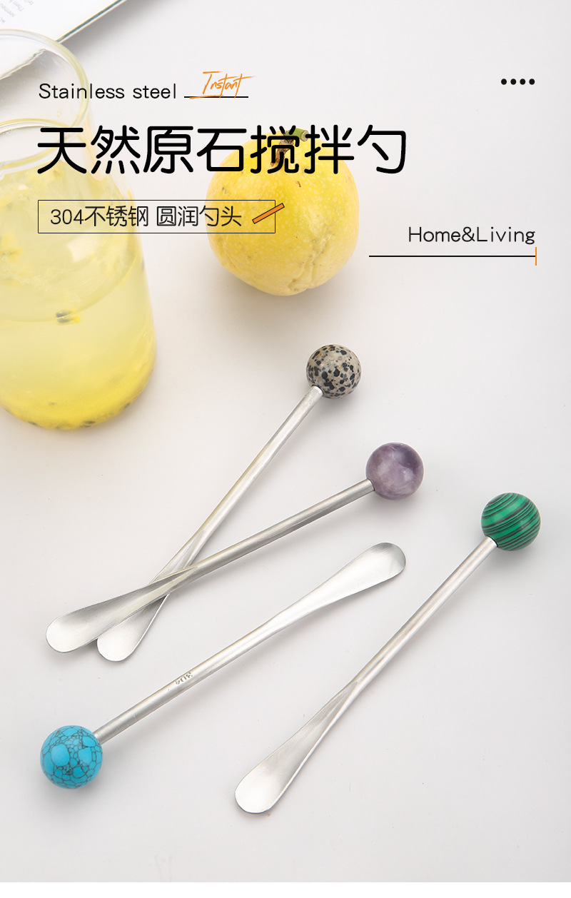 높은 색상 가치 천연 원석 304 스테인레스 스틸 혼합 숟가락 창조적 인 공 혼합 차 숟가락 커피 특수 믹싱로드스토어 가기
