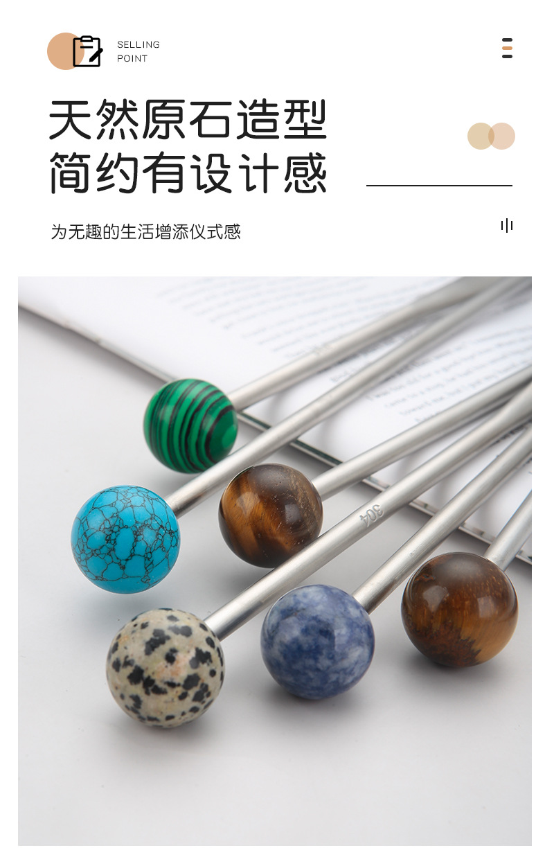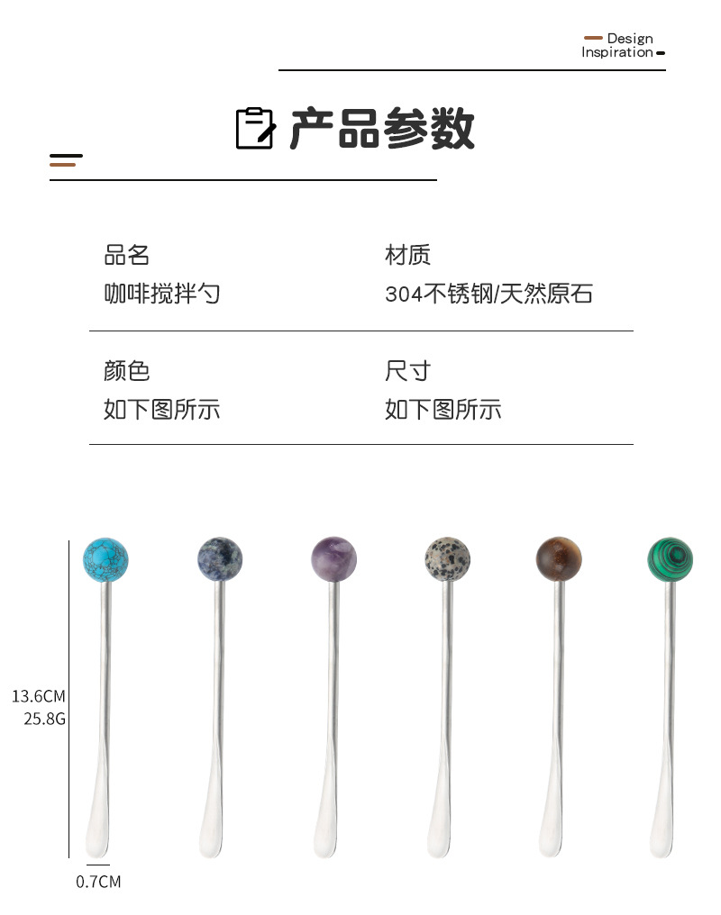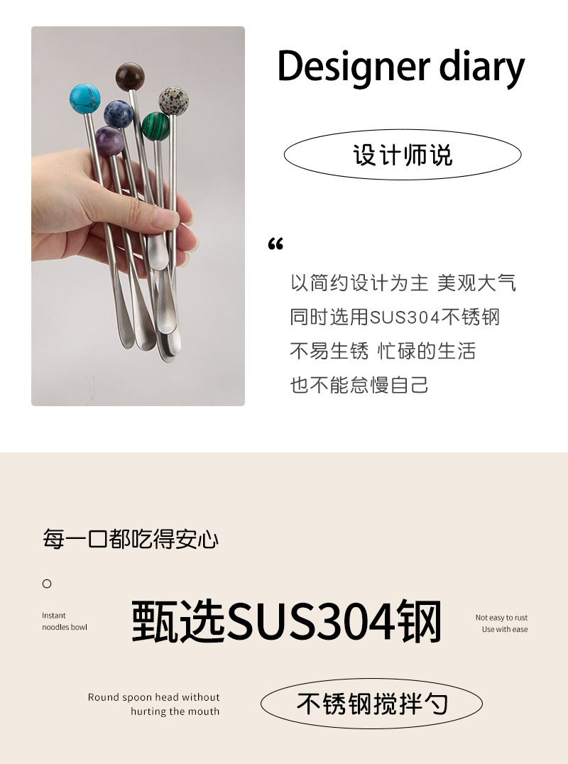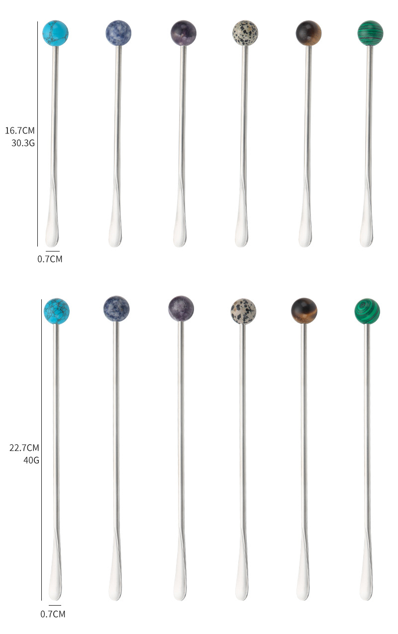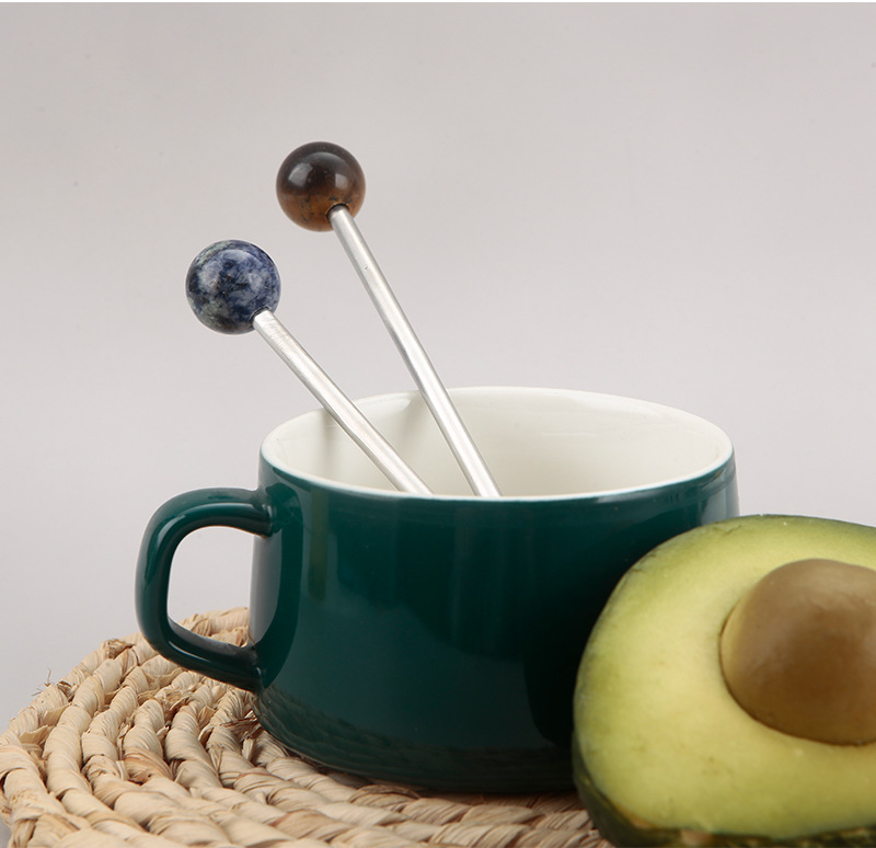 높은 색상 가치 천연 원석 304 스테인레스 스틸 혼합 숟가락 창조적 인 공 혼합 차 숟가락 커피 특수 믹싱로드스토어 가기