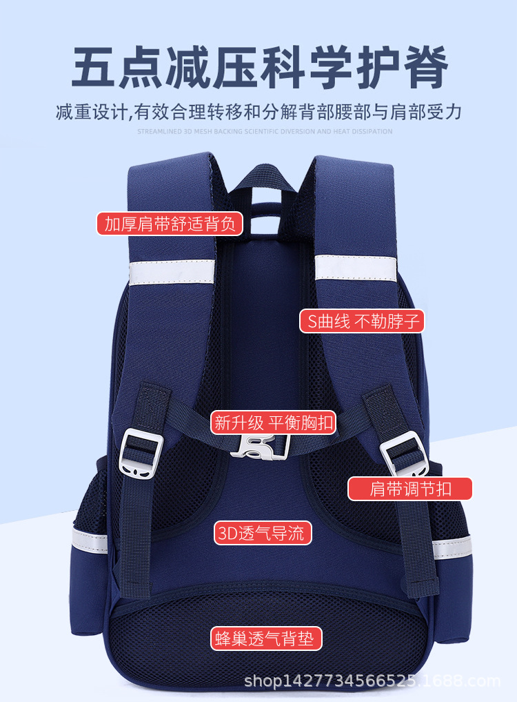 초등학교 남학생을위한 국경 도매 3 피스 스쿨 백 1-3-6 학년 소녀 경량 부담 감소 방수 배낭스토어 가기