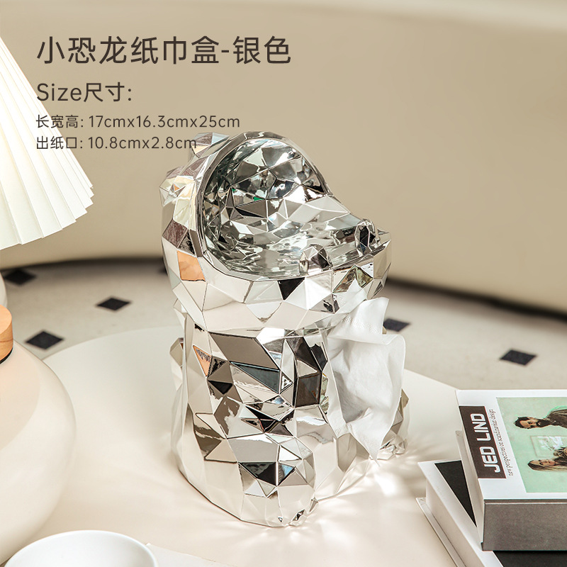 • 전기 도금된 은색 작은 공룡 티슈 상자