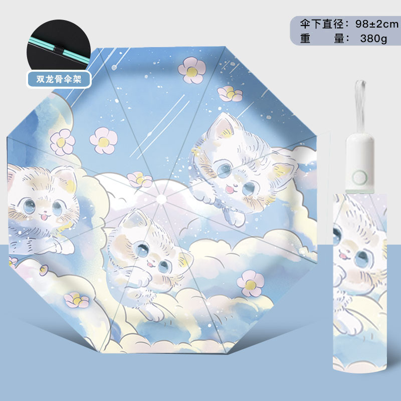 안전한 반동 어린이 우산 여중생 남학생 화창한 우산 이중 목적 접기 완전 셀프 컬렉션 우산