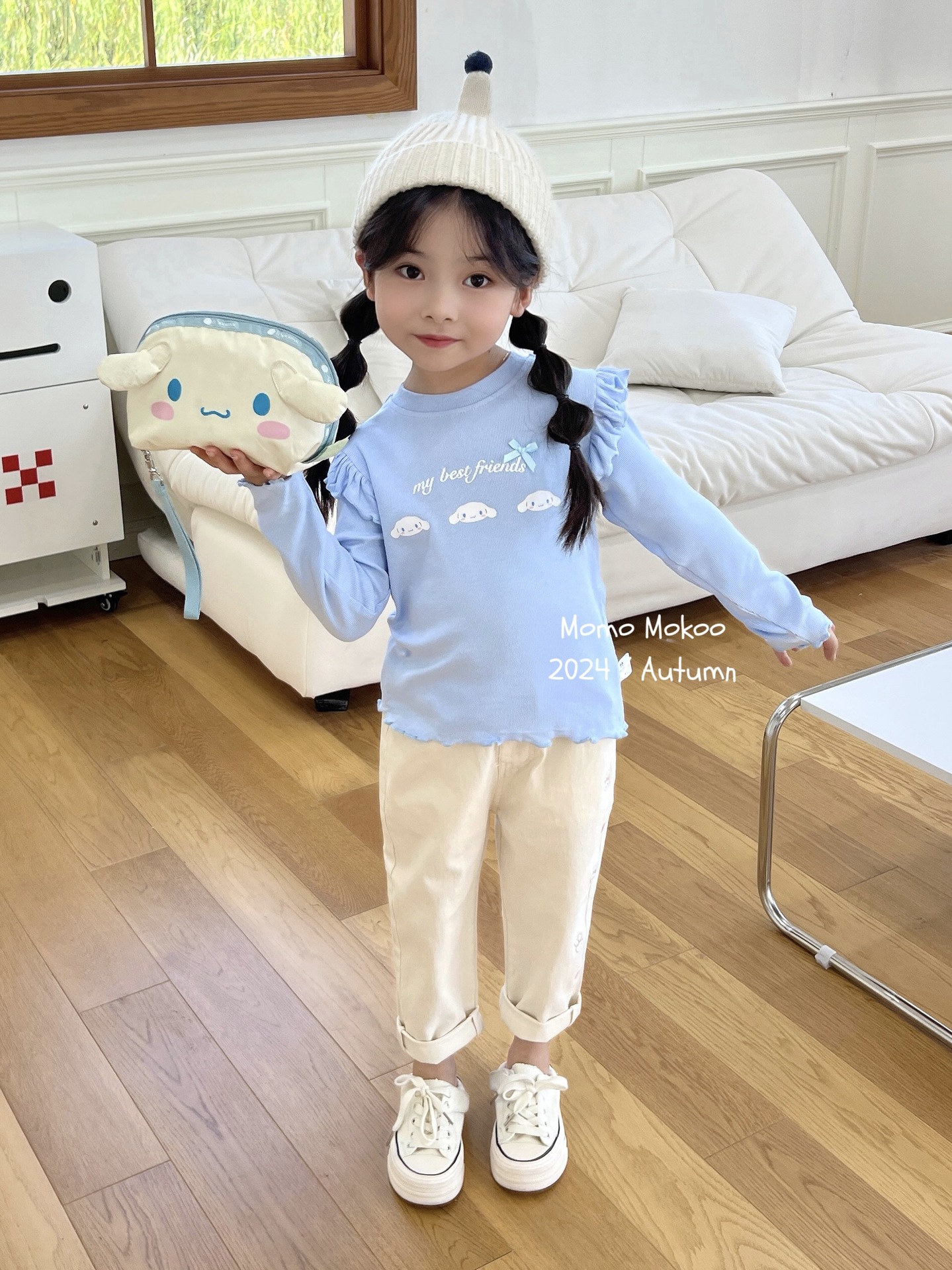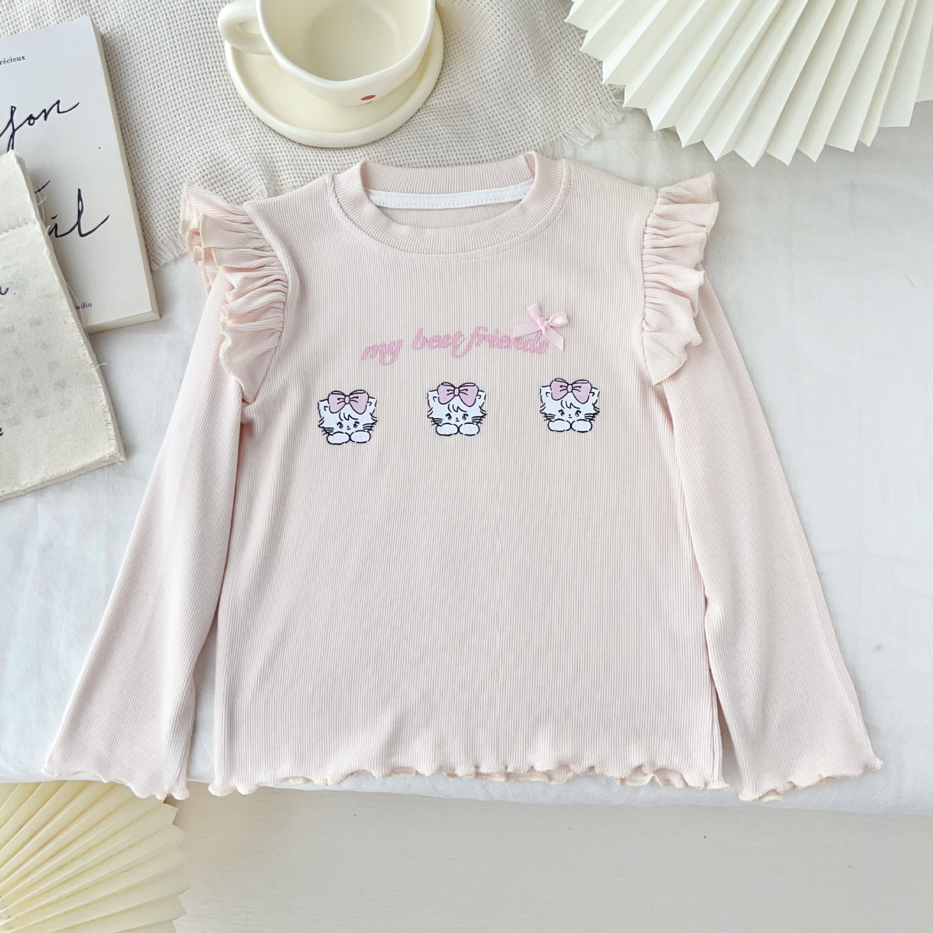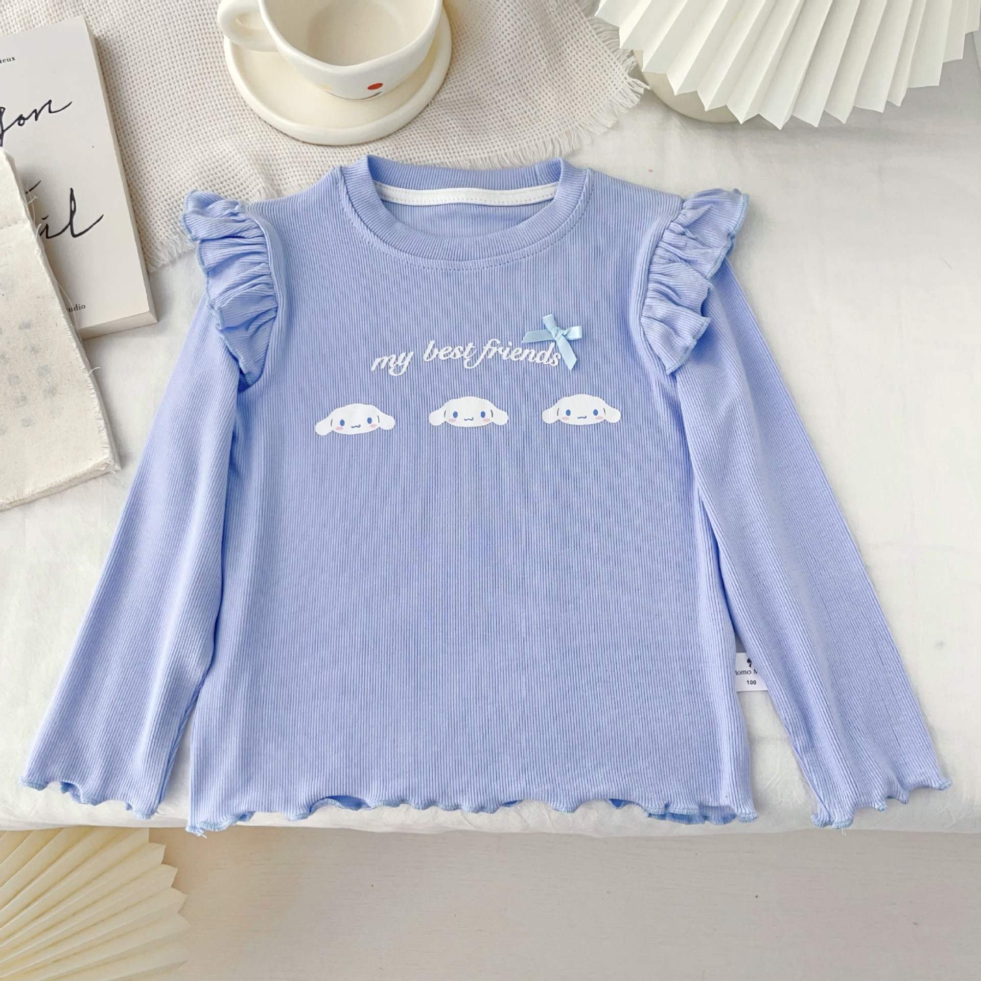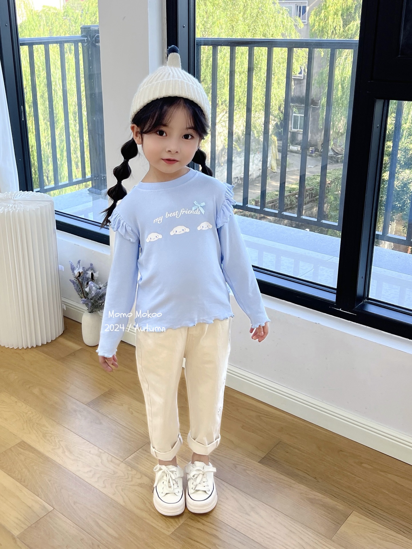 [모달 피트 스트립] 24 어린이 의류 새로운 소녀 가을 바닥 셔츠 긴 소매 모달 티셔츠 부드러운 만화