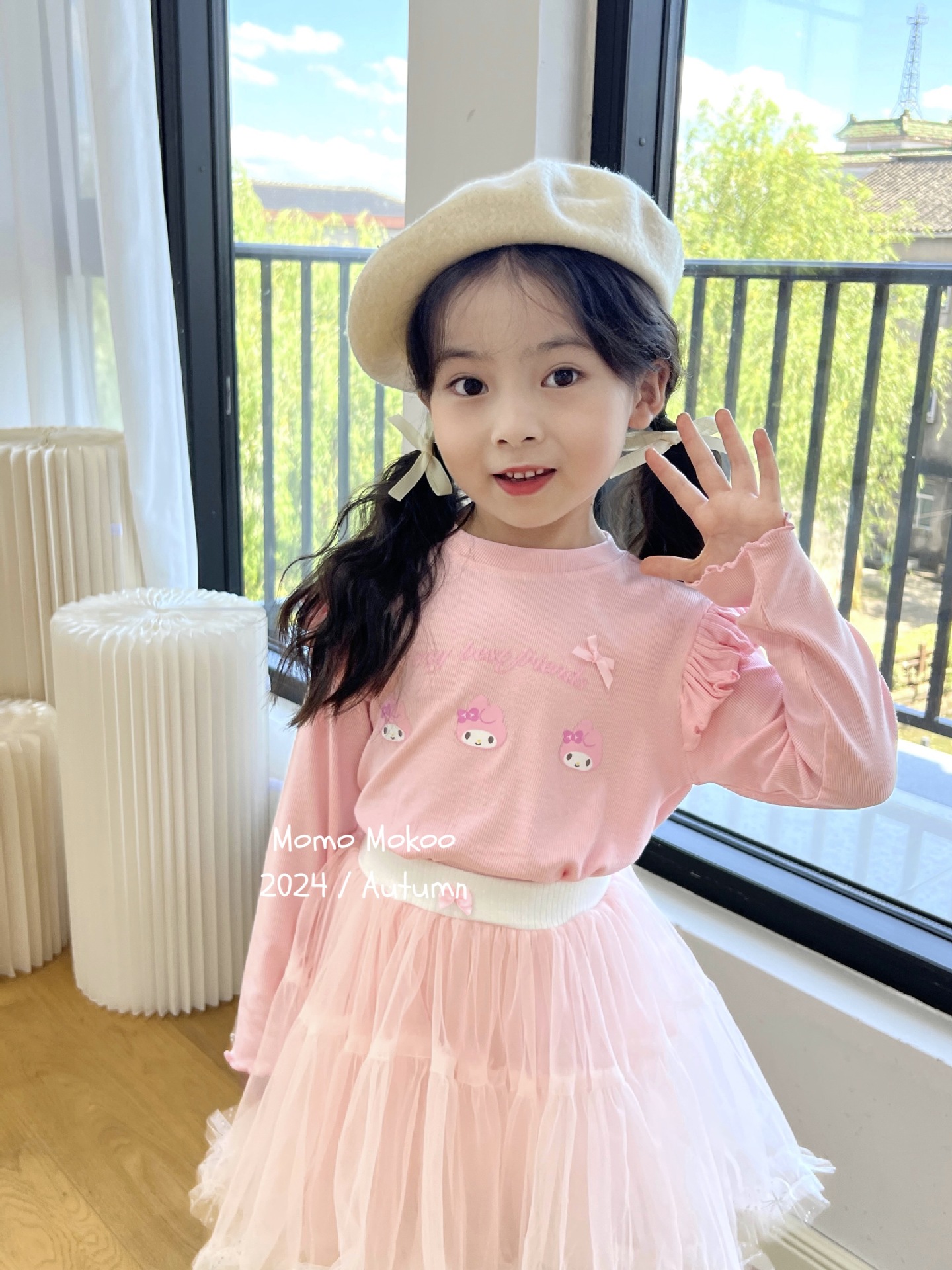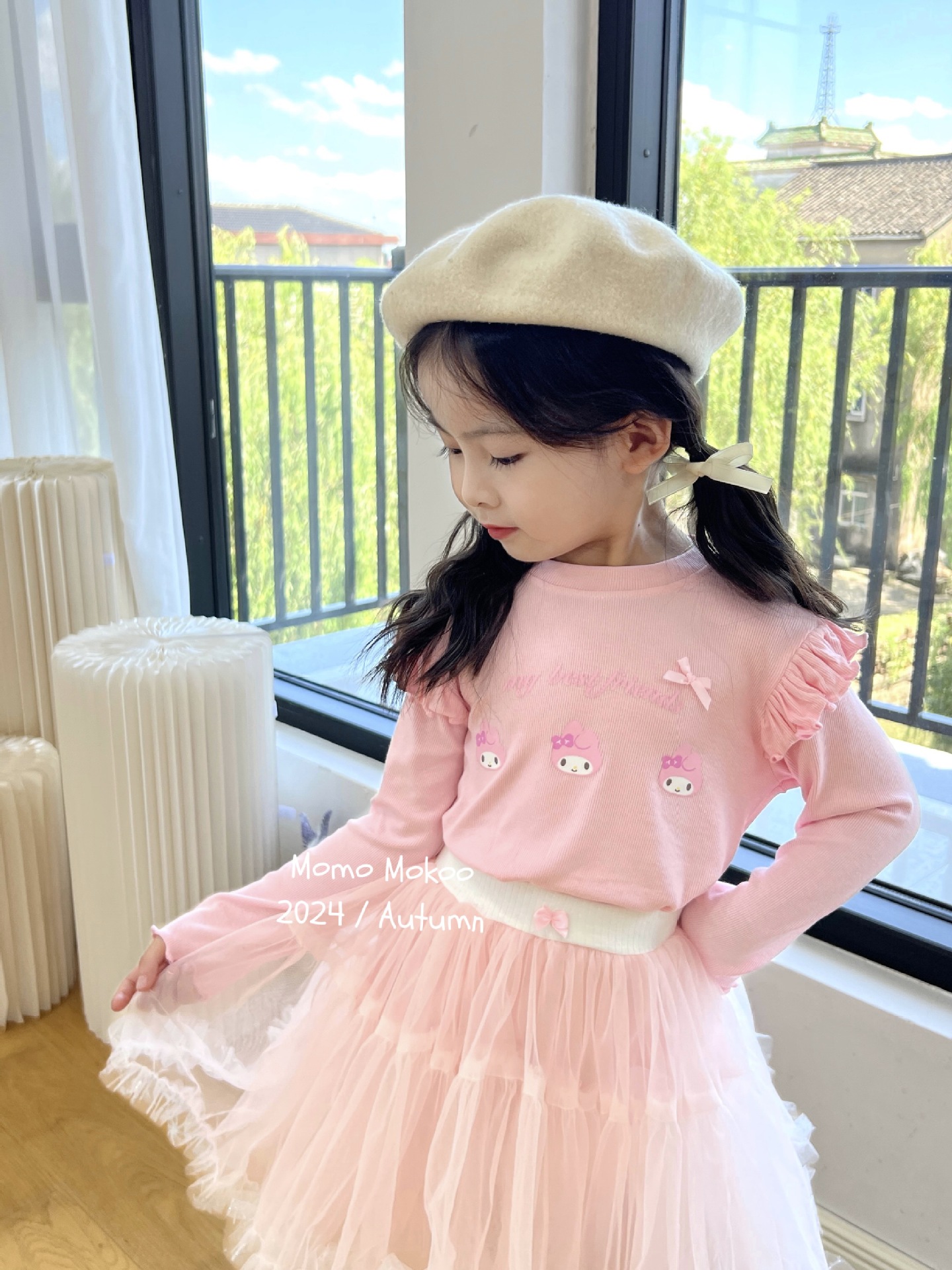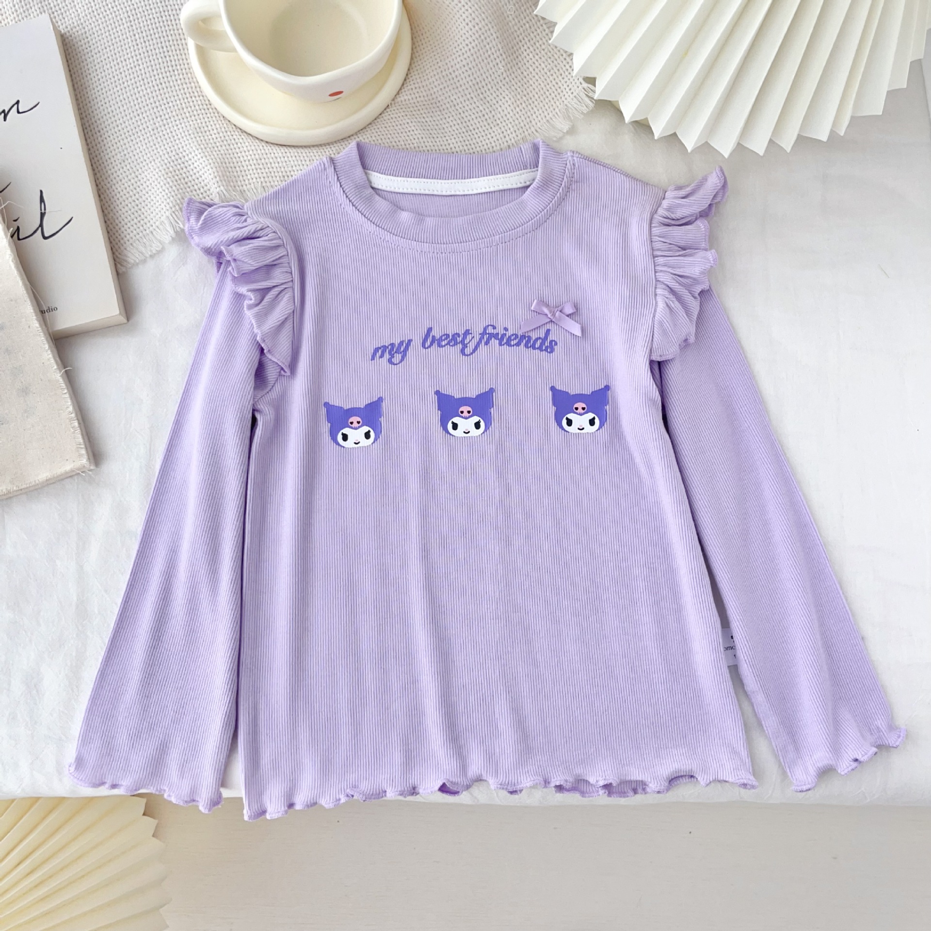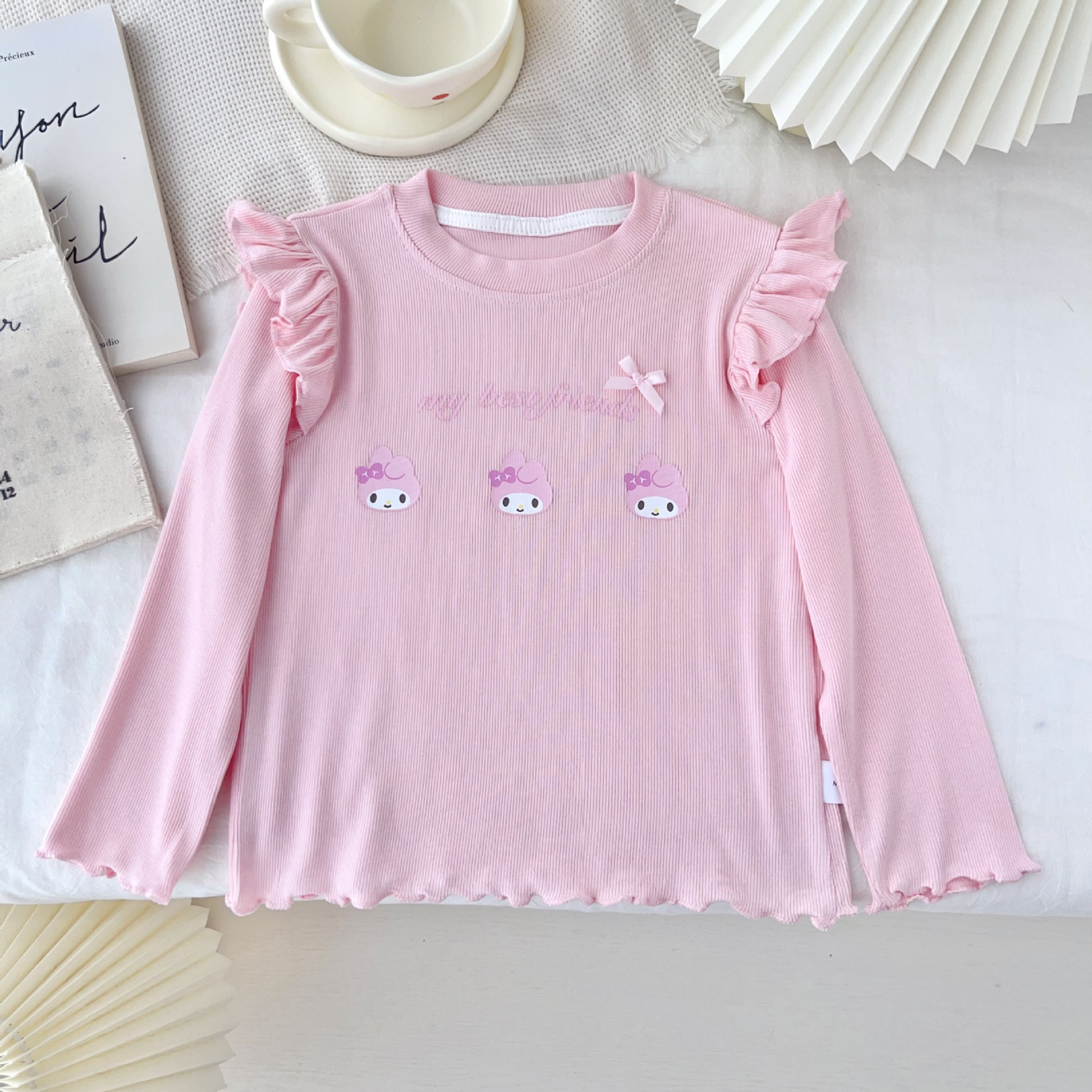 [모달 피트 스트립] 24 어린이 의류 새로운 소녀 가을 바닥 셔츠 긴 소매 모달 티셔츠 부드러운 만화