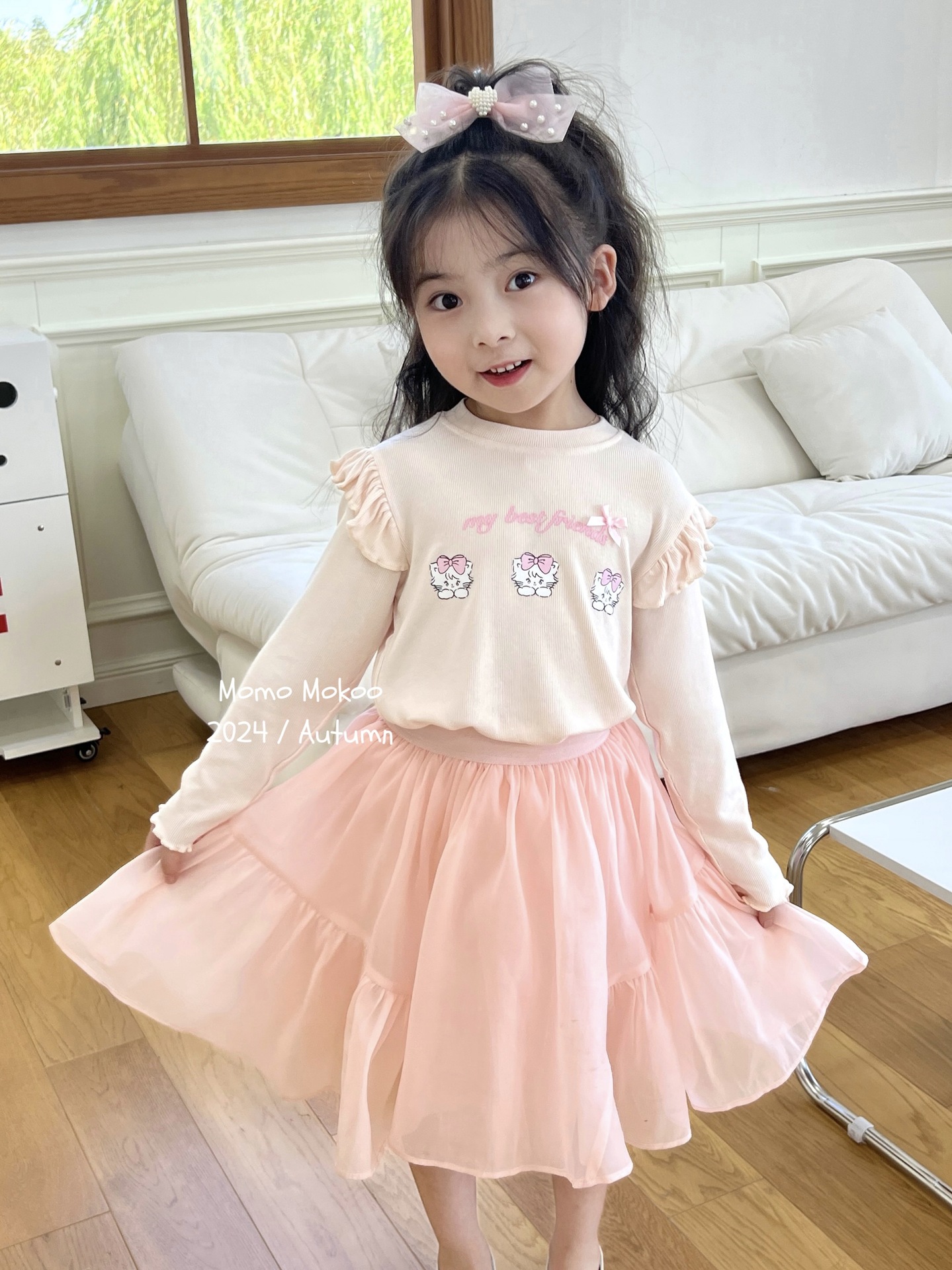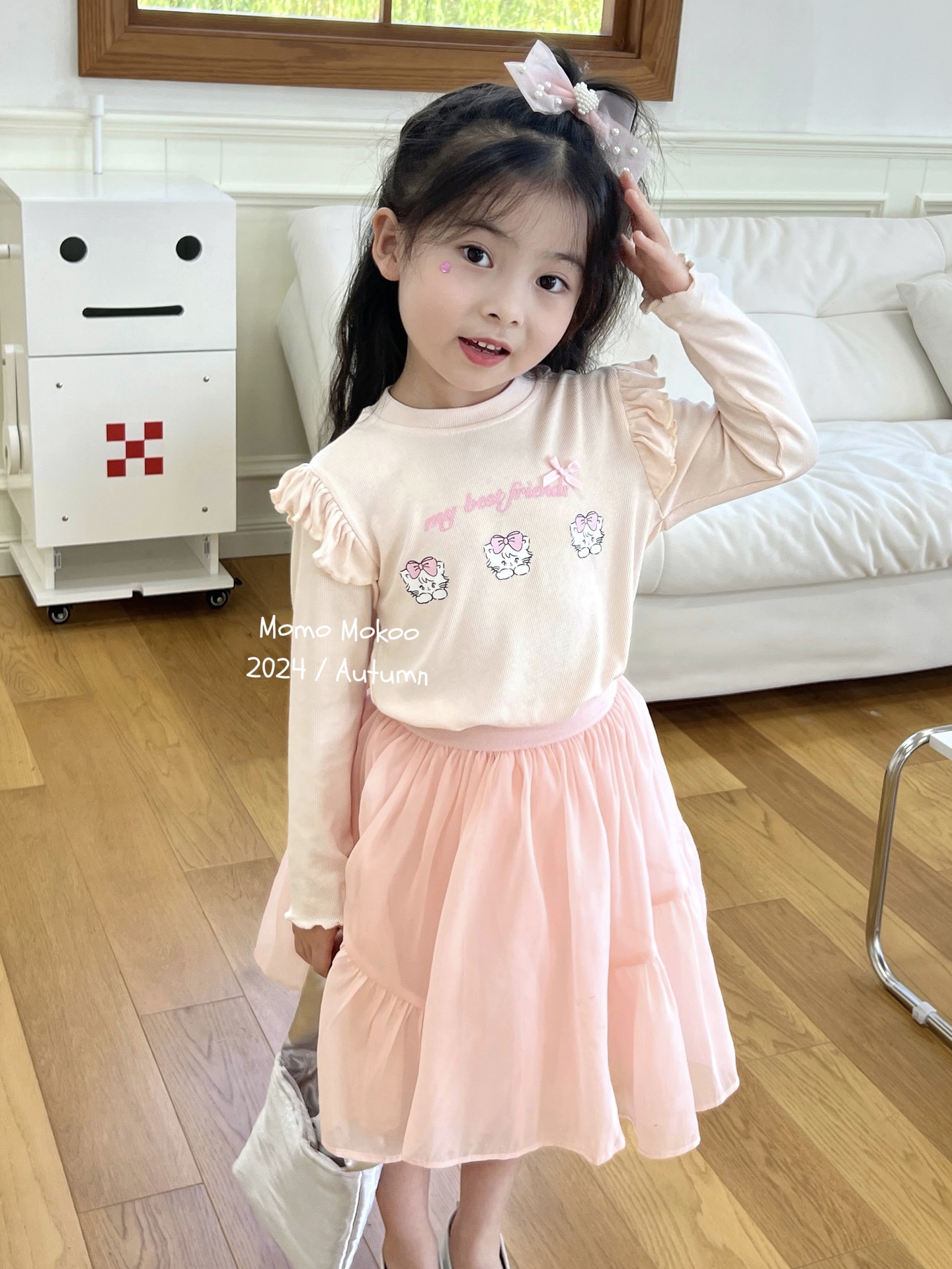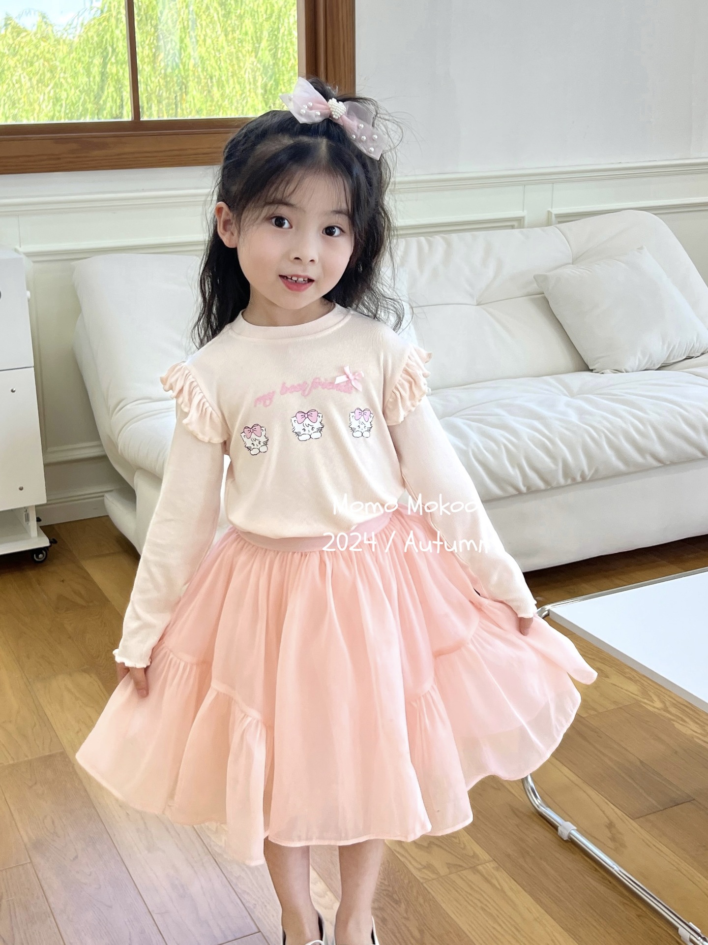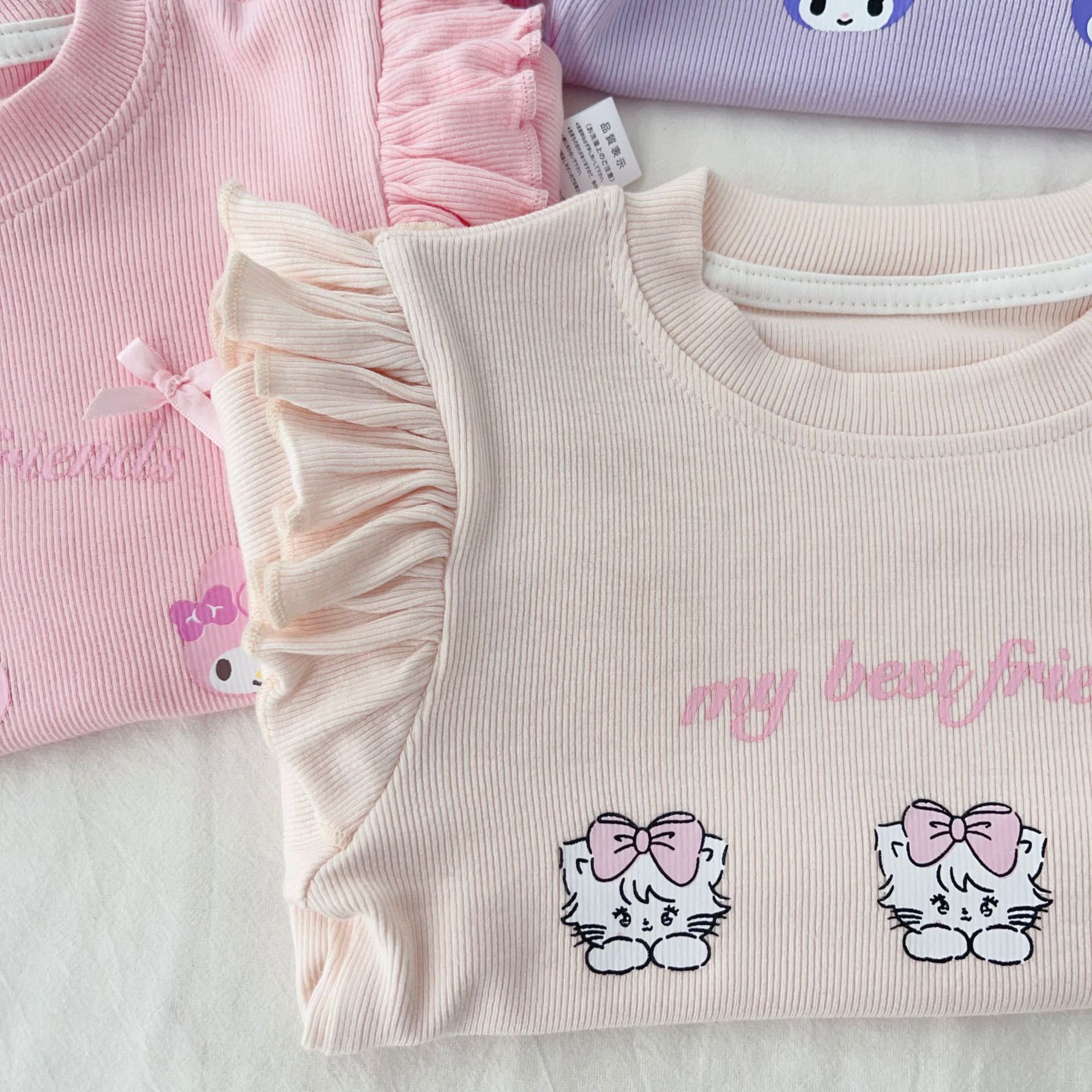 [모달 피트 스트립] 24 어린이 의류 새로운 소녀 가을 바닥 셔츠 긴 소매 모달 티셔츠 부드러운 만화