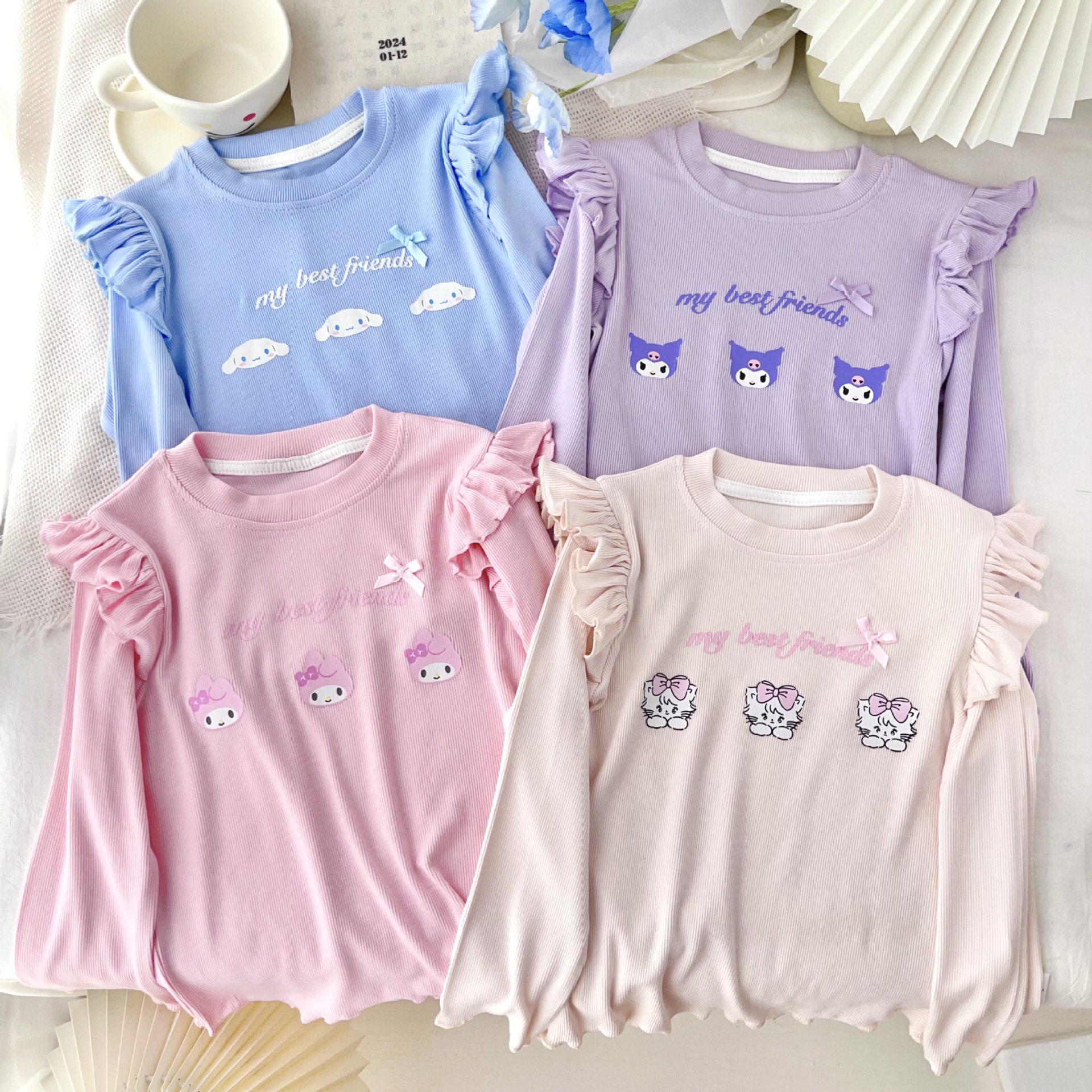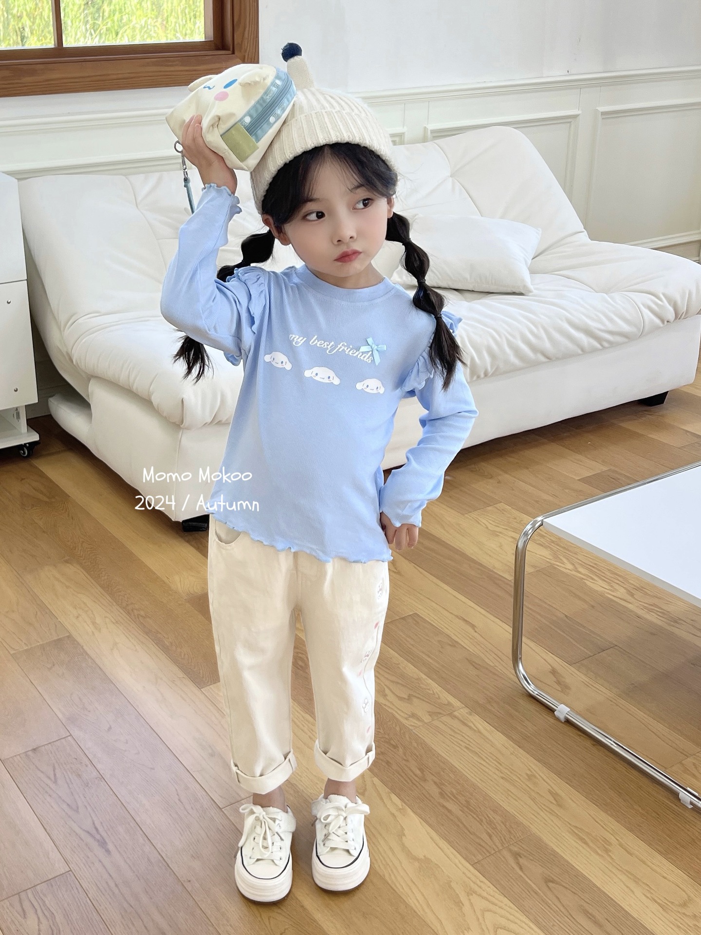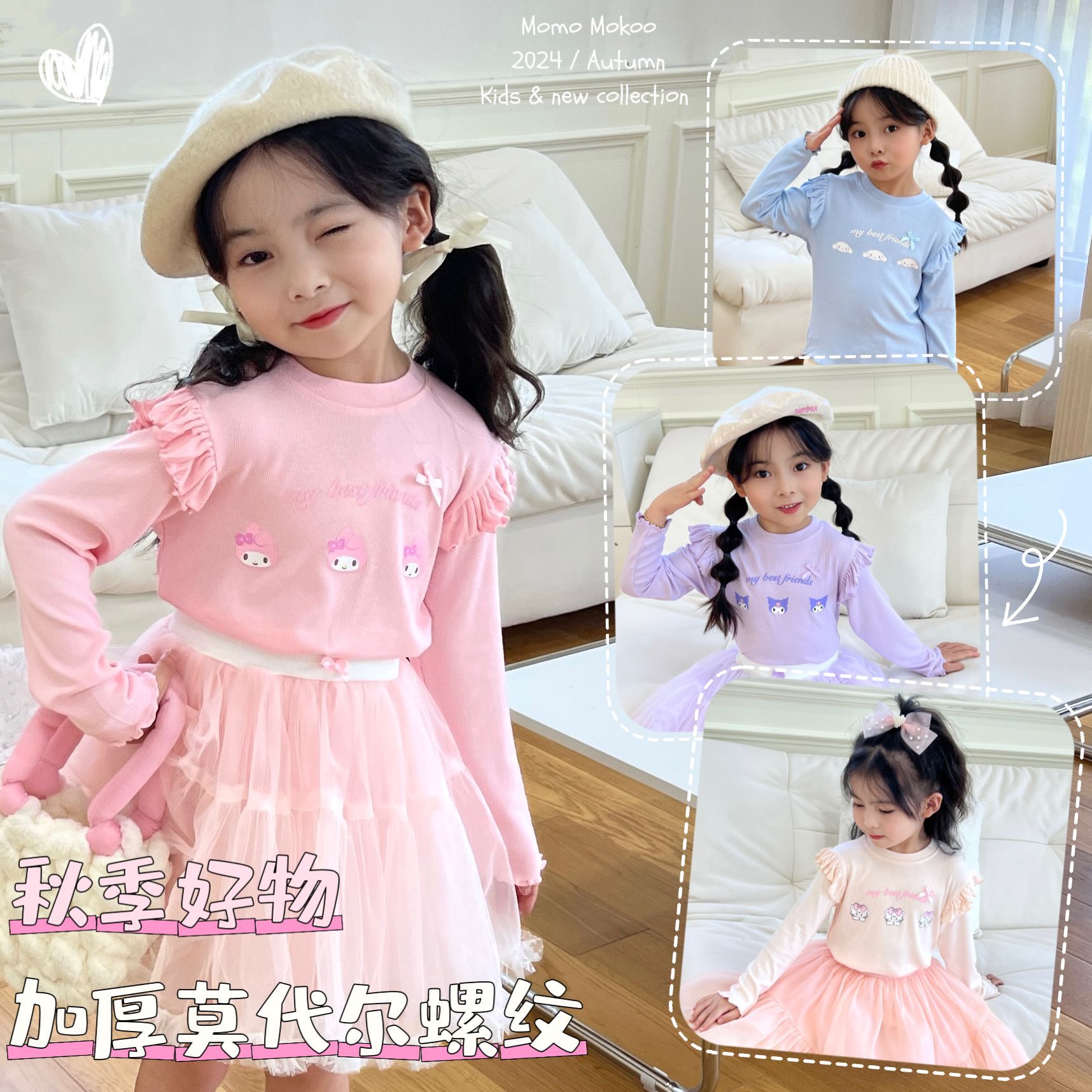 [모달 피트 스트립] 24 어린이 의류 새로운 소녀 가을 바닥 셔츠 긴 소매 모달 티셔츠 부드러운 만화스토어 가기