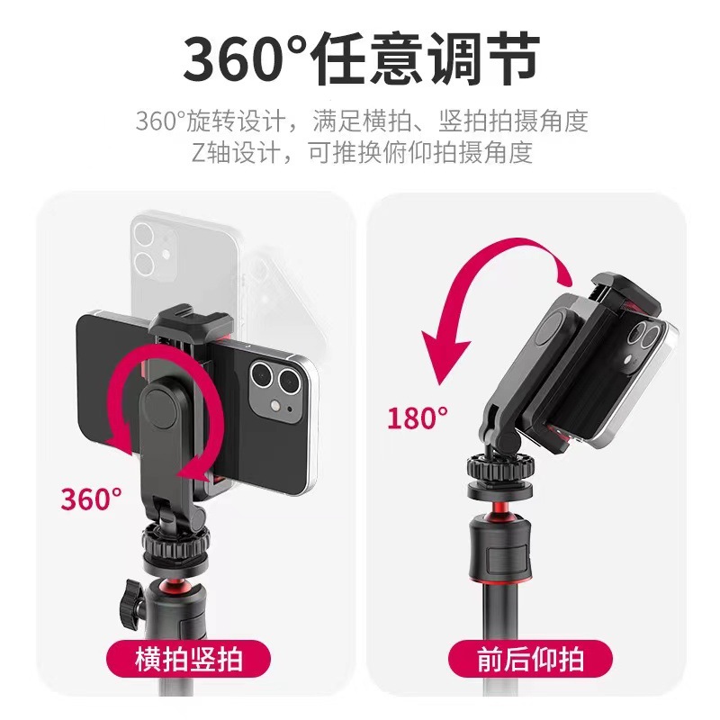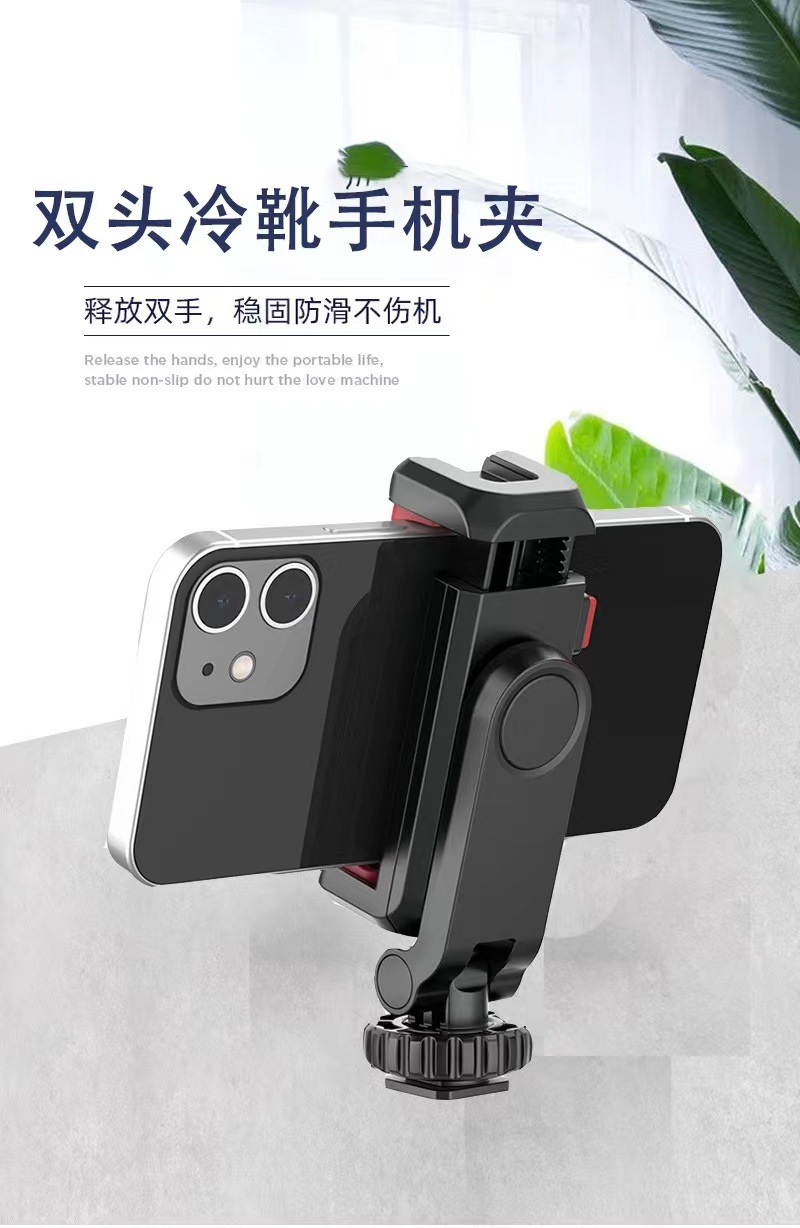 360 조정 휴대 전화 클램프 두 배 차가운 신발 뜨거운 신발 SLR 마이크로 단일 고정 라이브 브래킷 수평 및 수직 나사 회전