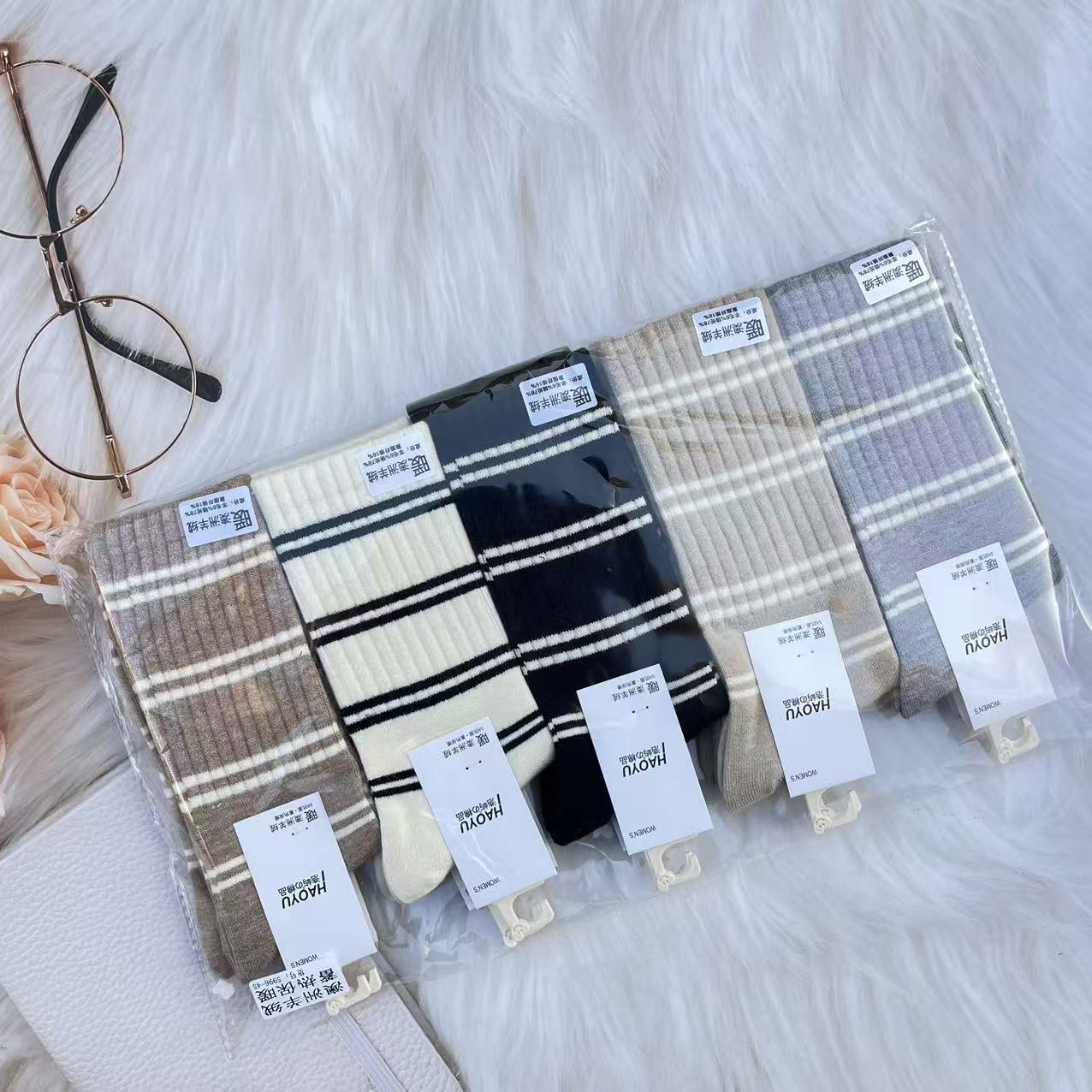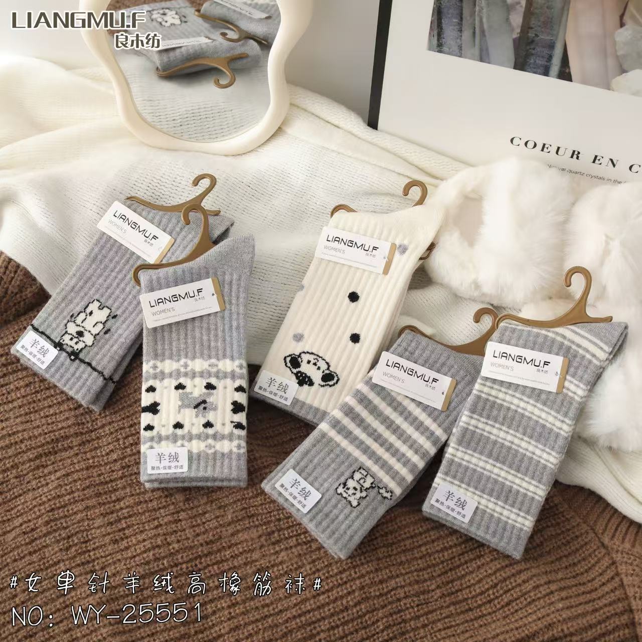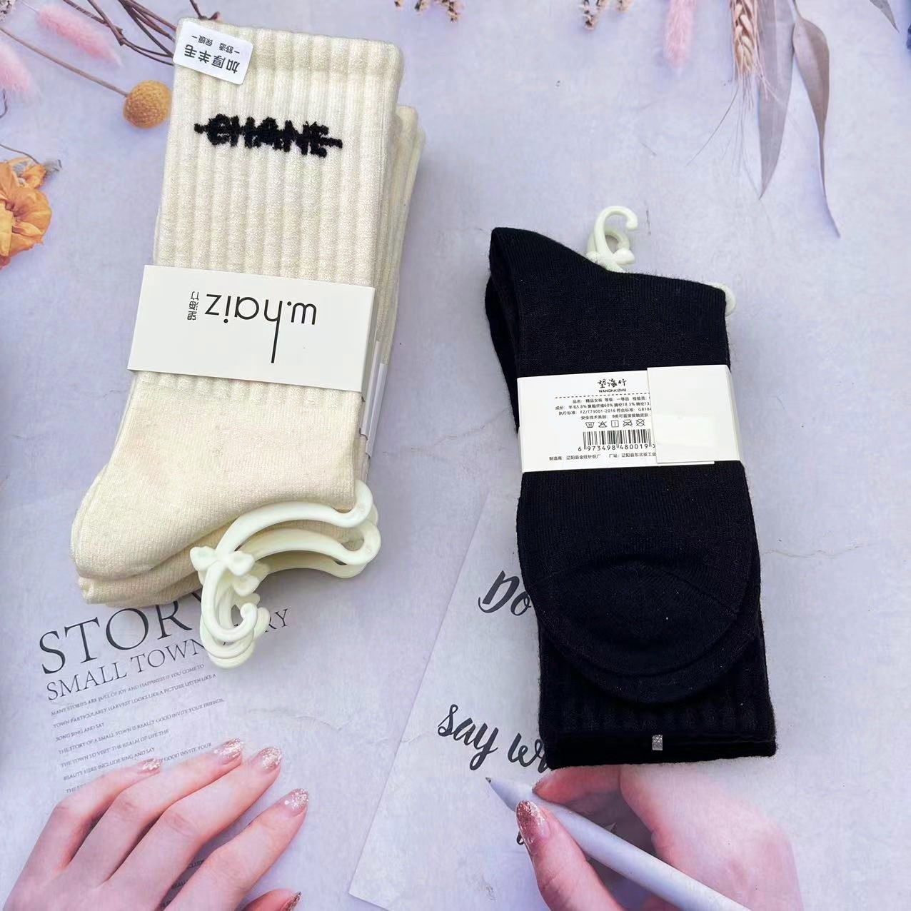 60g 왕하이 대나무 겨울 새로운 캐시미어 더미 양말 따뜻한 두꺼운 숙녀 긴 허리 캐시미어 양말 일본과 한국 스타일