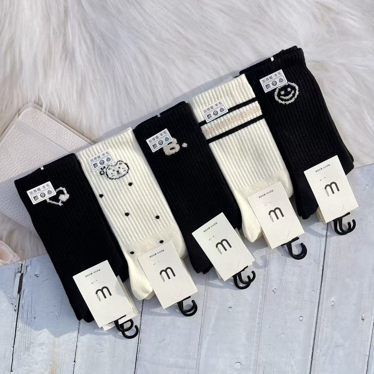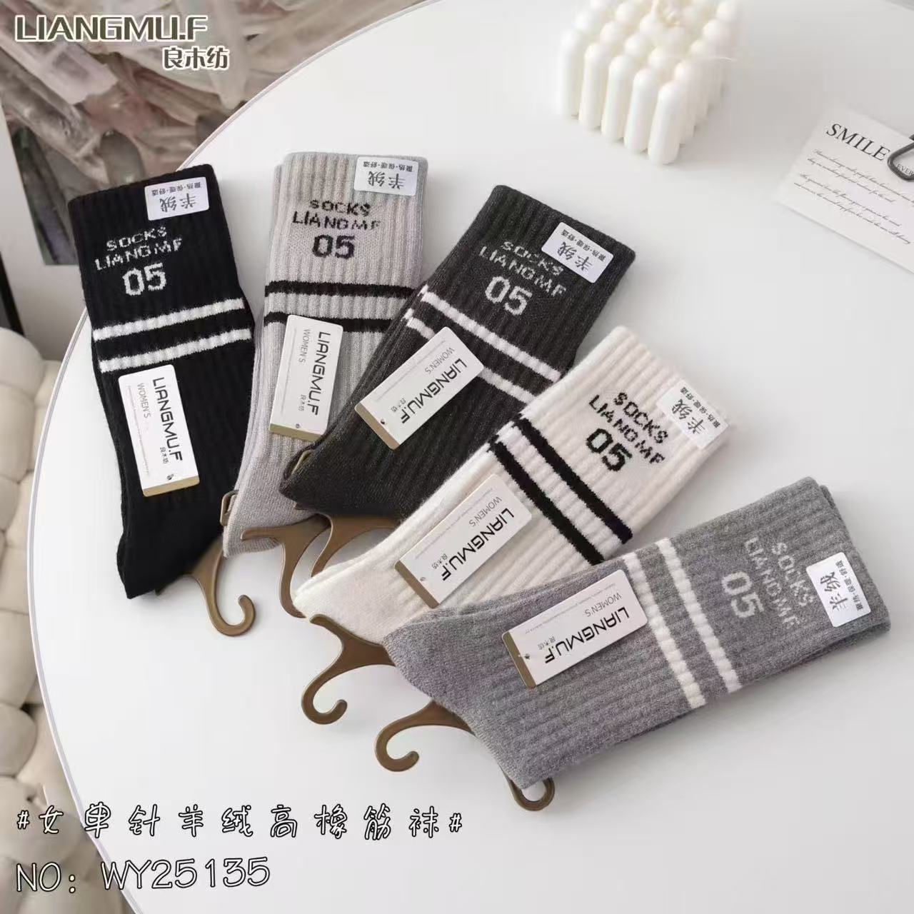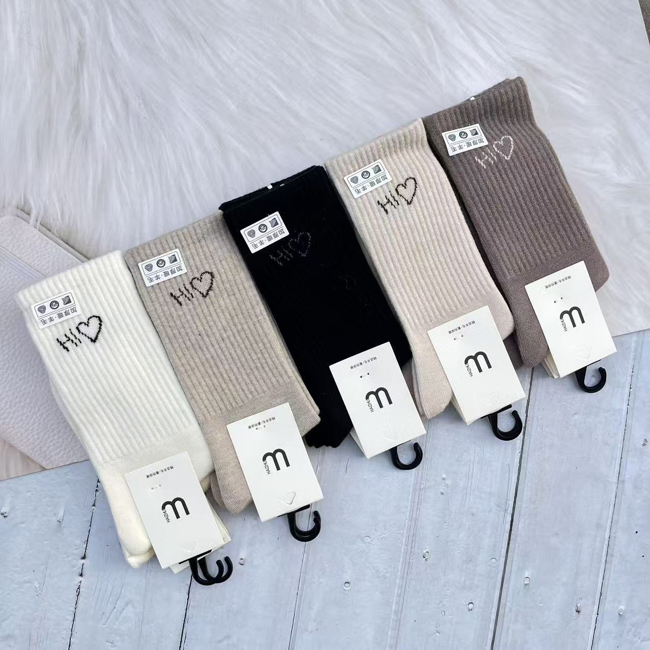 60g 왕하이 대나무 겨울 새로운 캐시미어 더미 양말 따뜻한 두꺼운 숙녀 긴 허리 캐시미어 양말 일본과 한국 스타일