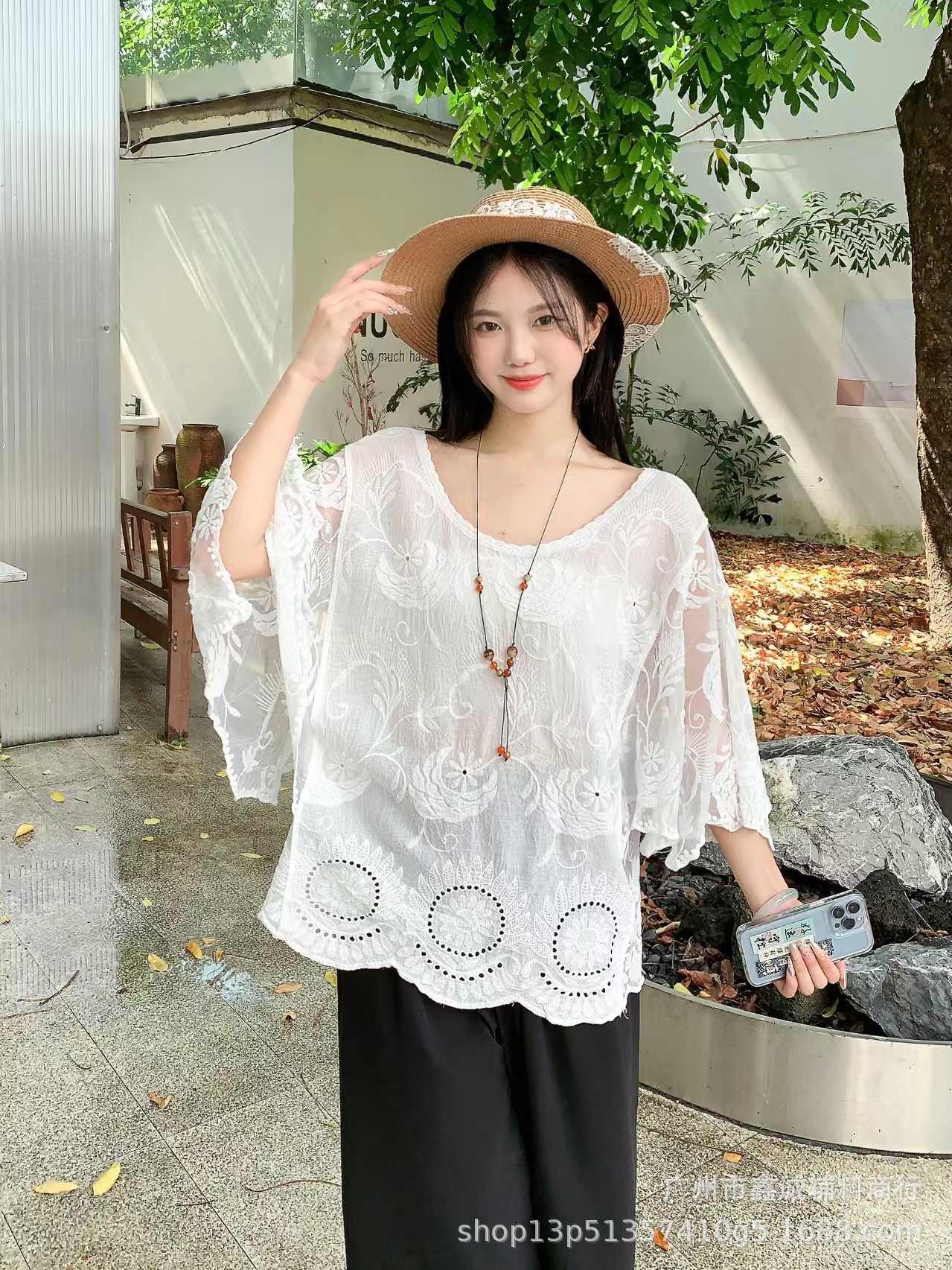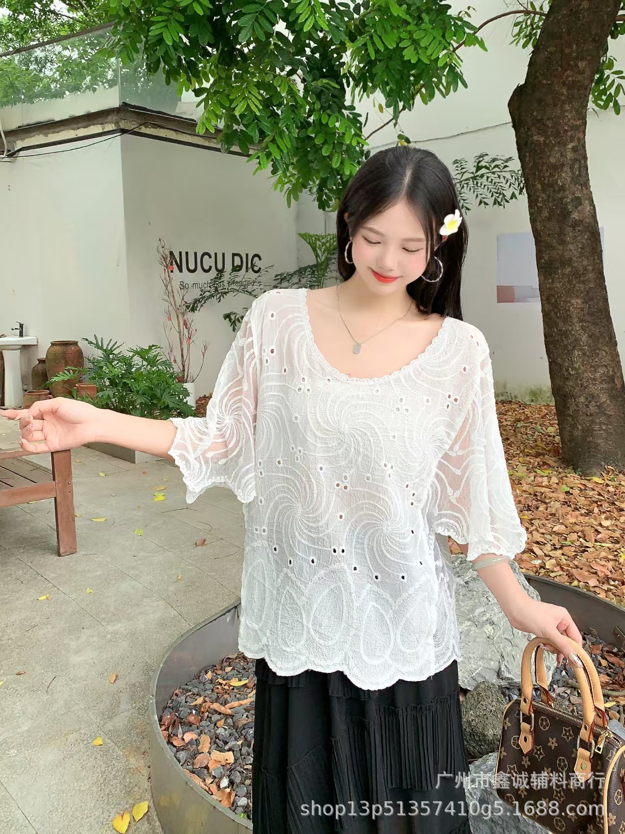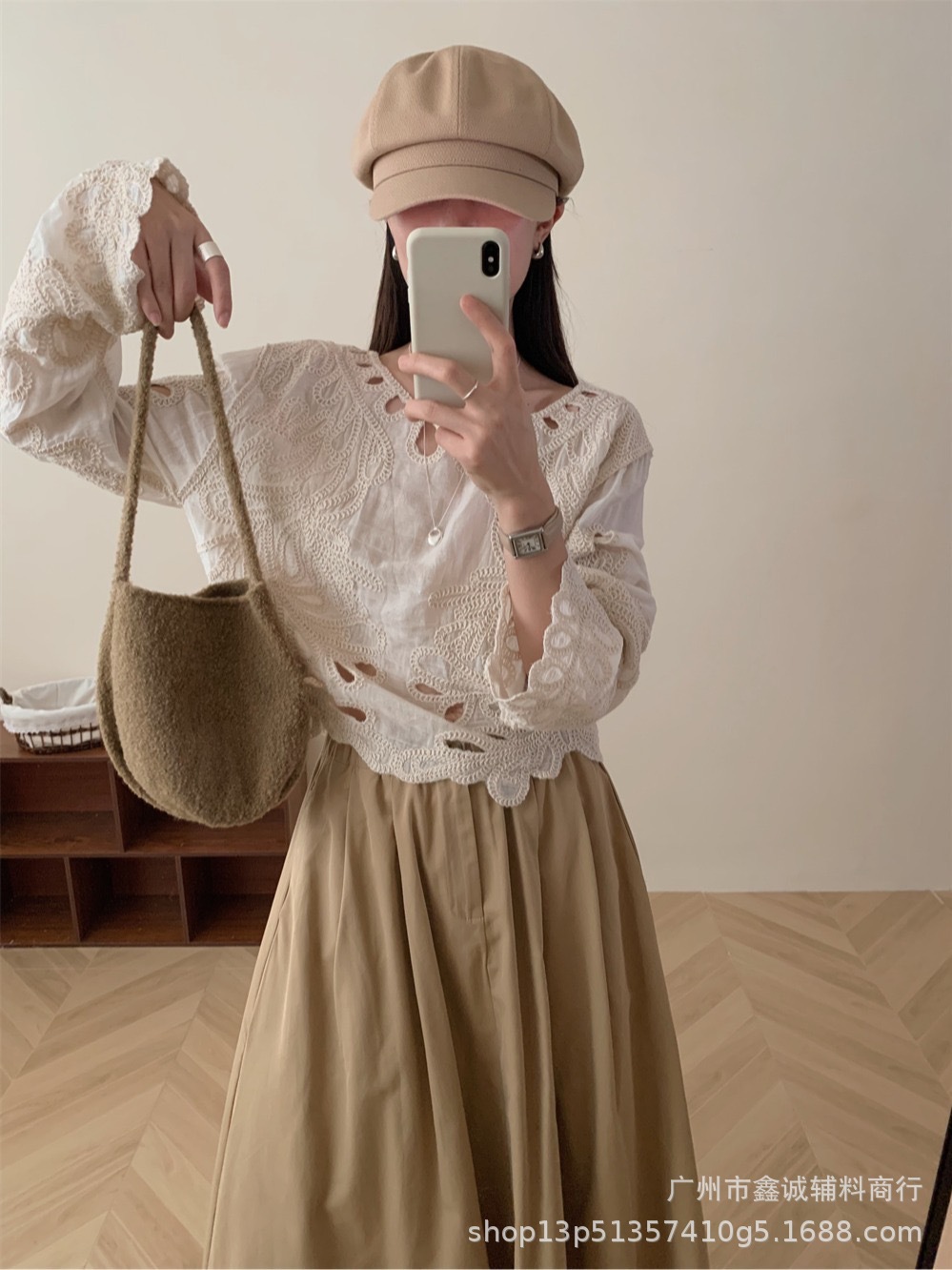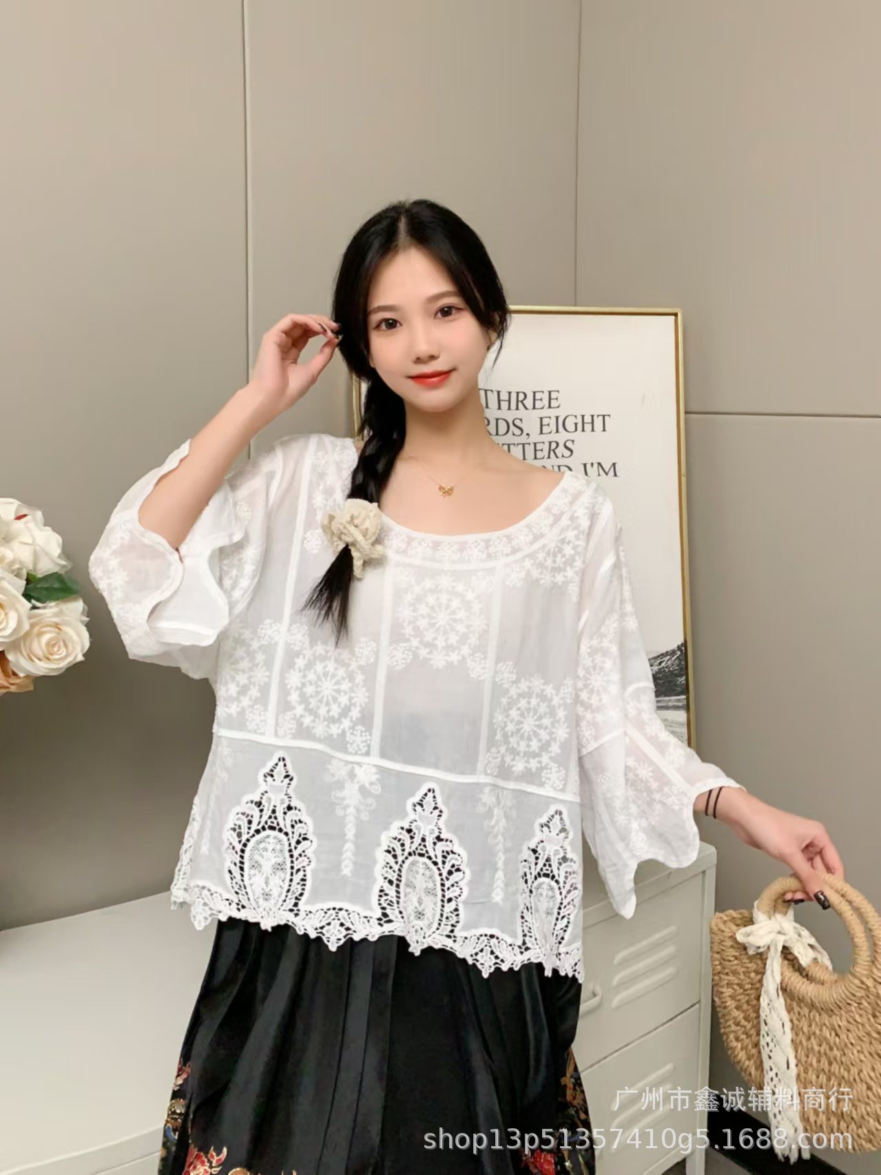 봄 · 가을 한국 동대문 할로우 긴소매 셔츠 면 리넨 레이스 프라이드 스트리트 디자인 센스 패션 루즈 여성 탑