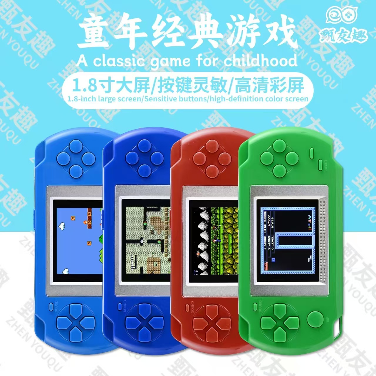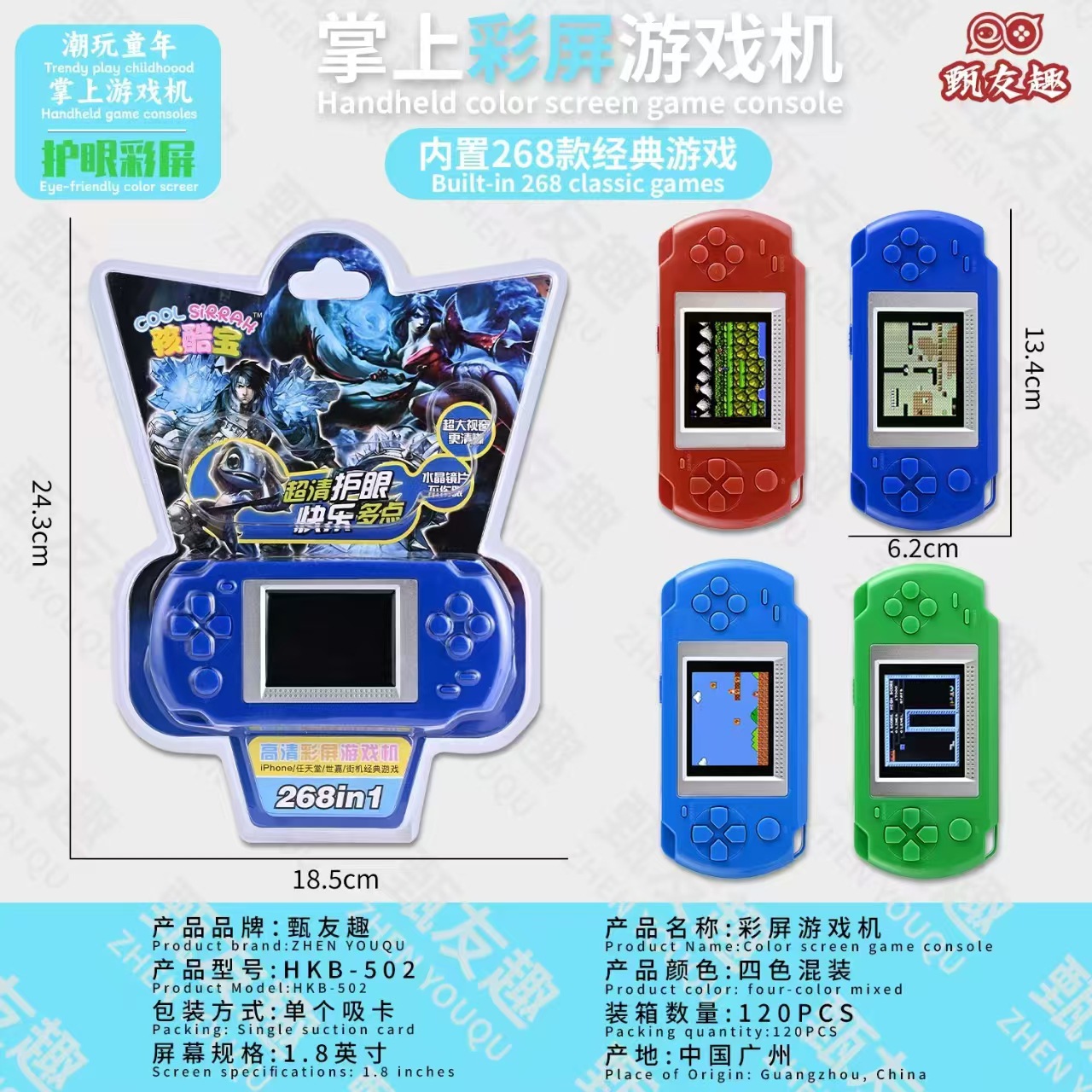 도매 하이쿠바오 2inch HKB-502 컬러 스크린 휴대용 게임기 어린이 게임 클래식 휴대용 게임기 블리스터 포장