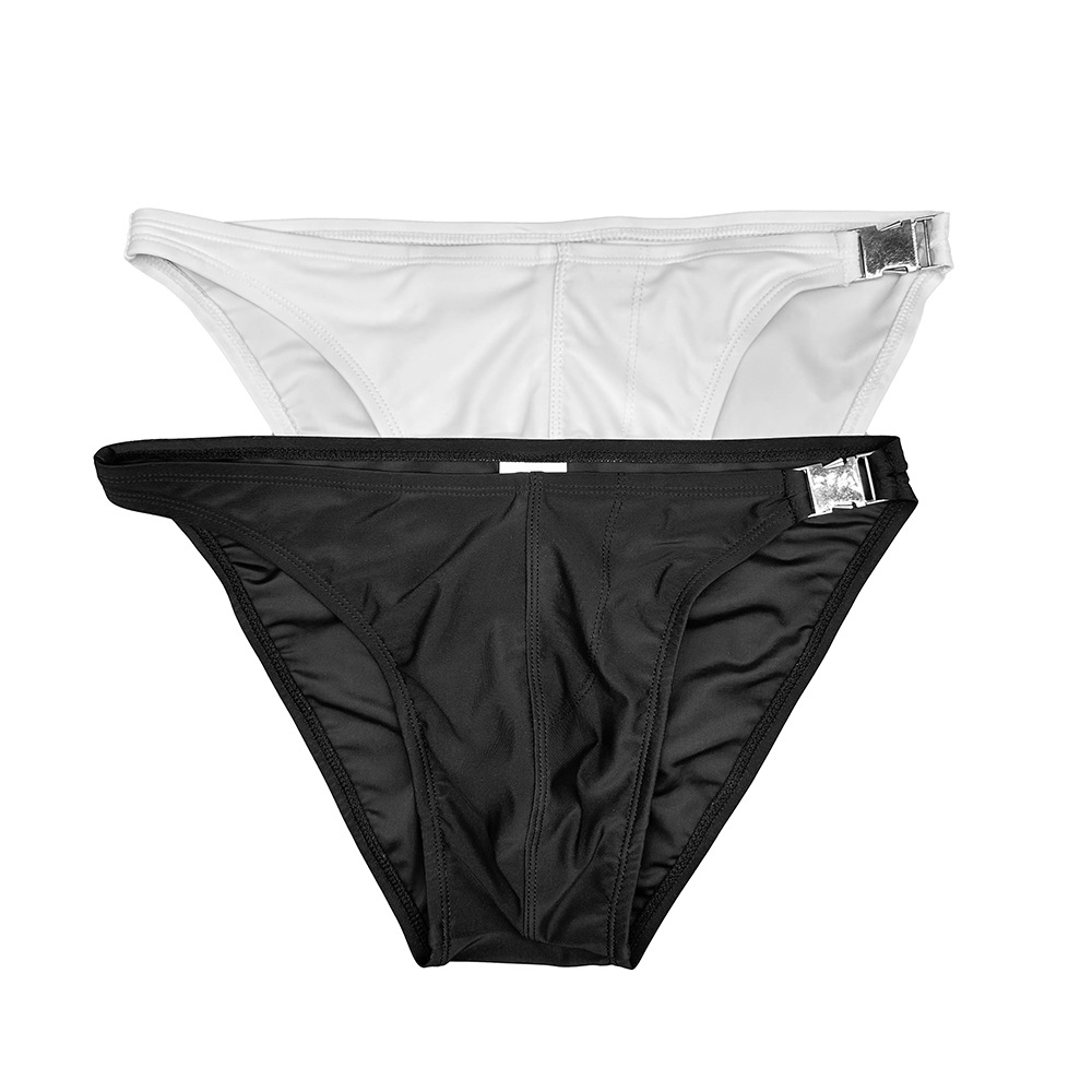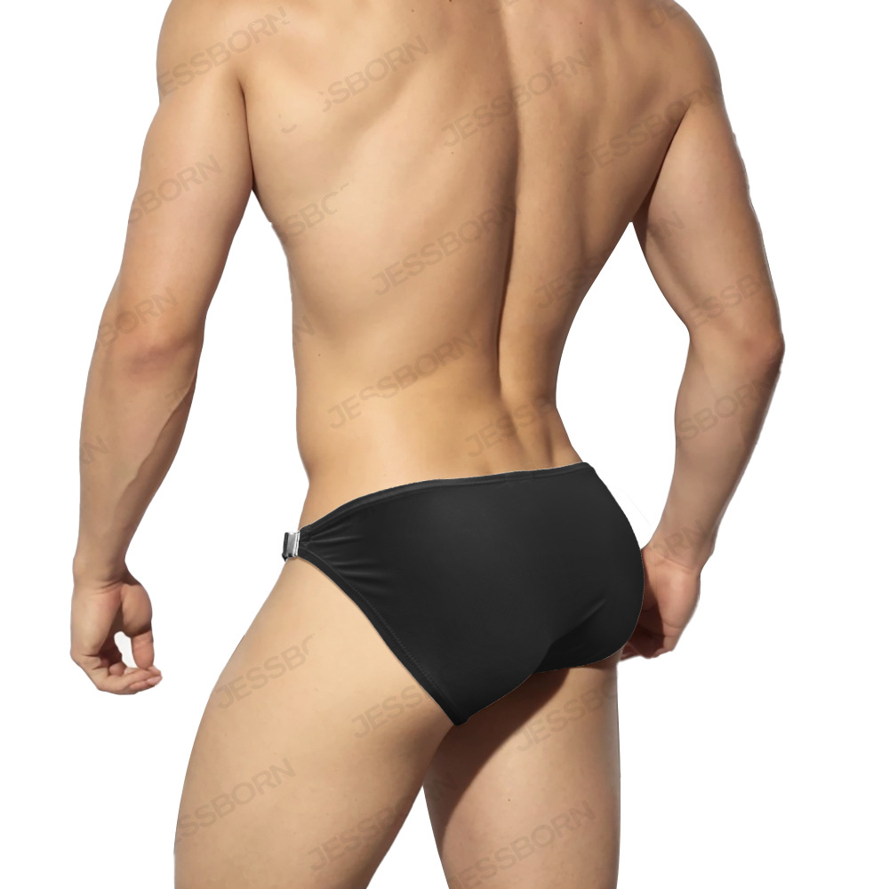 JESSBORN 남자 일방적 금속 버클 삼각형 수영 트렁크 사이드 슬릿 낮은 허리 섹시한 온천 수영장 트렁크