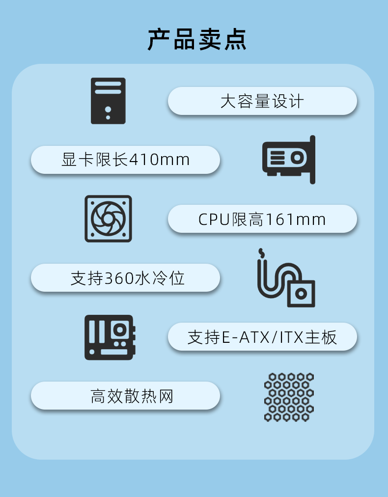 국경 간 파노라마 측면 투명한 컴퓨터 섀시 데스크탑 ATX 대형 마더 보드 360 물 냉각 지원스토어 가기