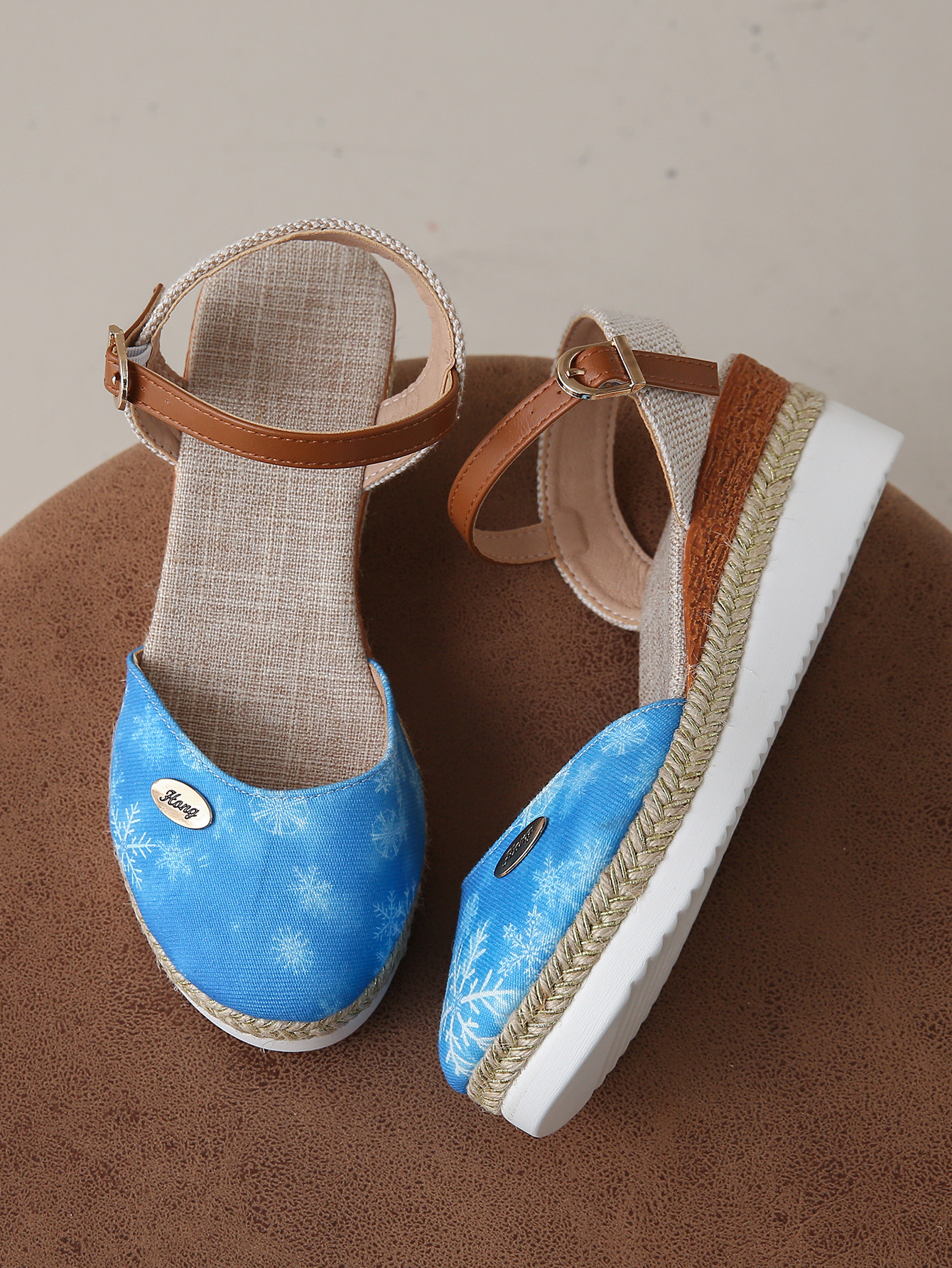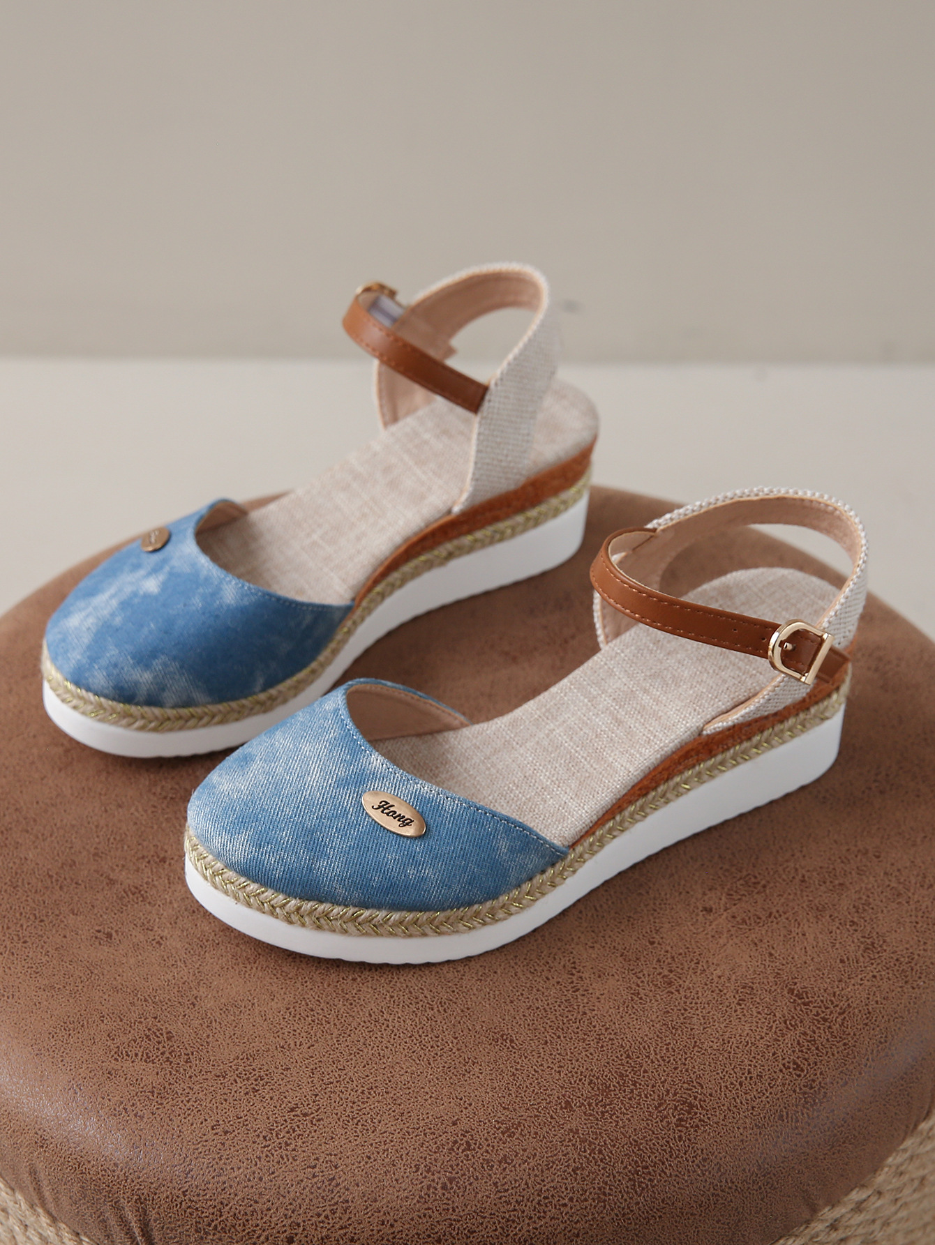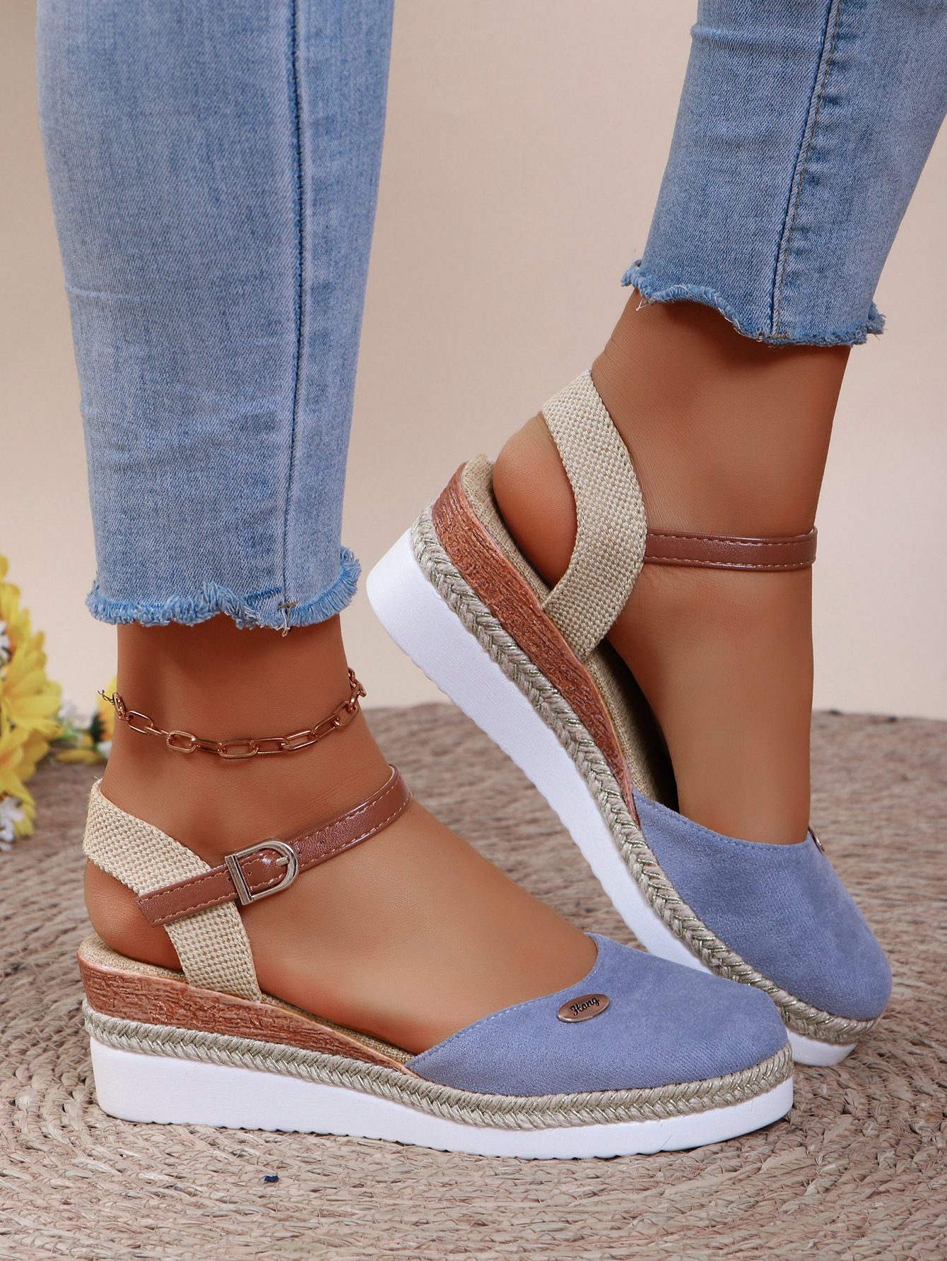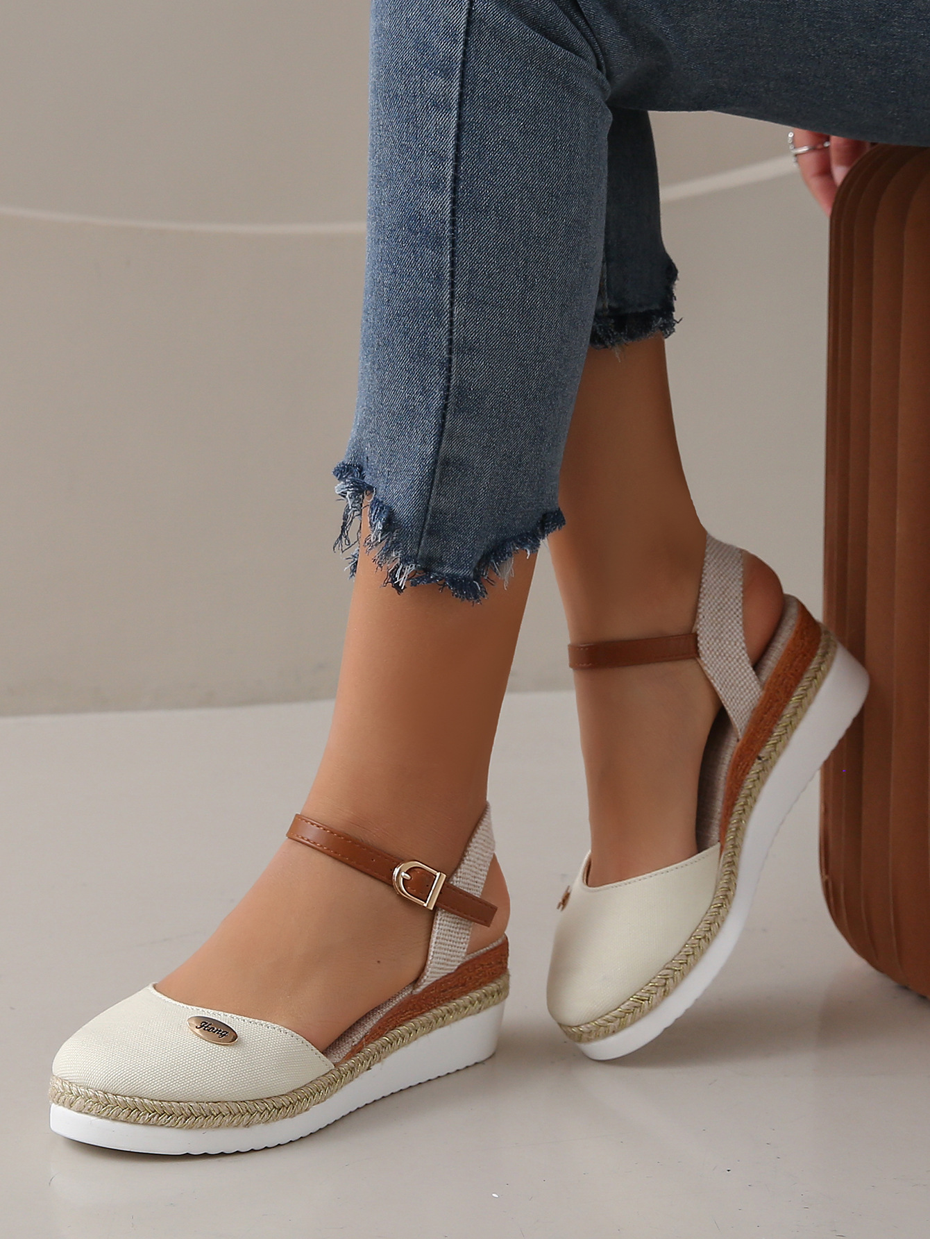2024 년 새로운 유럽 및 미국 플러스 사이즈 대외 무역 로마 샌들 여성 봄과 여름 커버 발가락 가방 웨지 버클 대마 바닥 샌들스토어 가기