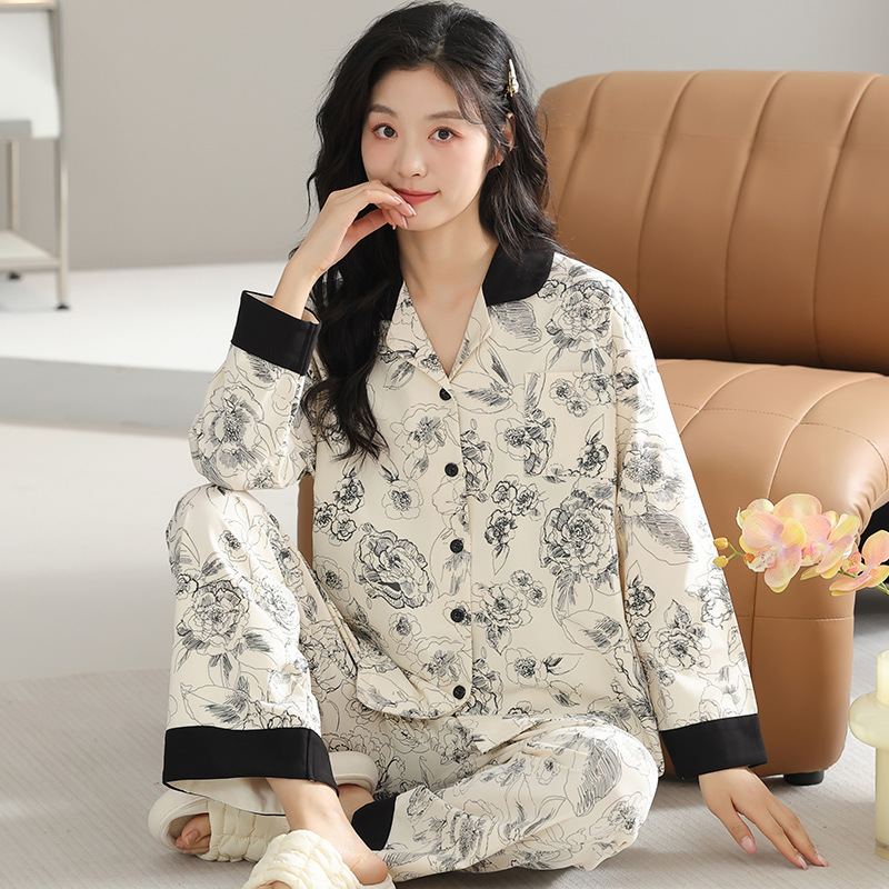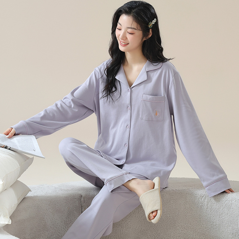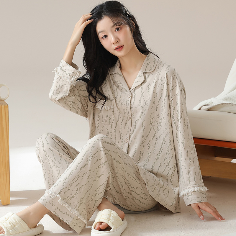 잠옷 여성의 봄과 가을 긴 소매 코튼 한국 스타일 간단한 캐주얼 플러스 사이즈 카디건 가을 겨울 홈 의류 세트