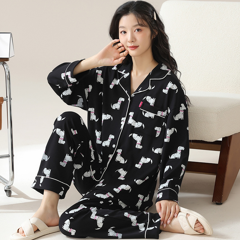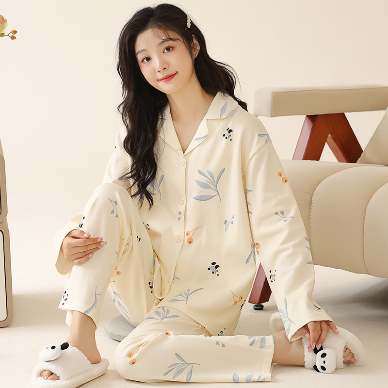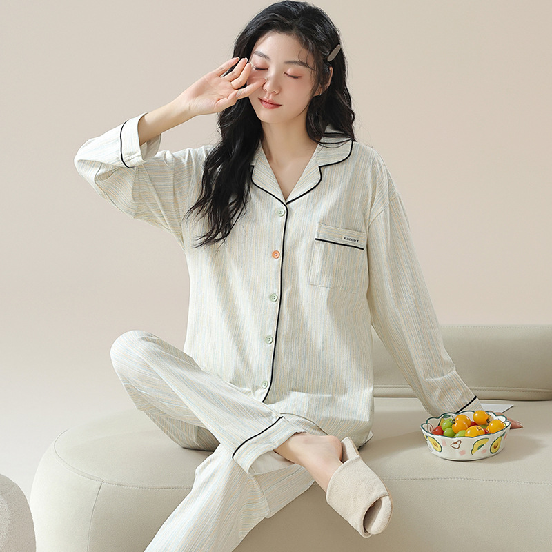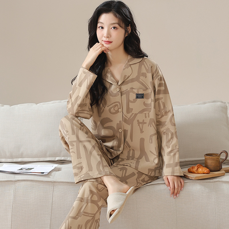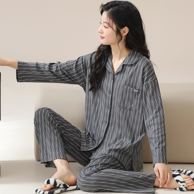 잠옷 여성의 봄과 가을 긴 소매 코튼 한국 스타일 간단한 캐주얼 플러스 사이즈 카디건 가을 겨울 홈 의류 세트스토어 가기