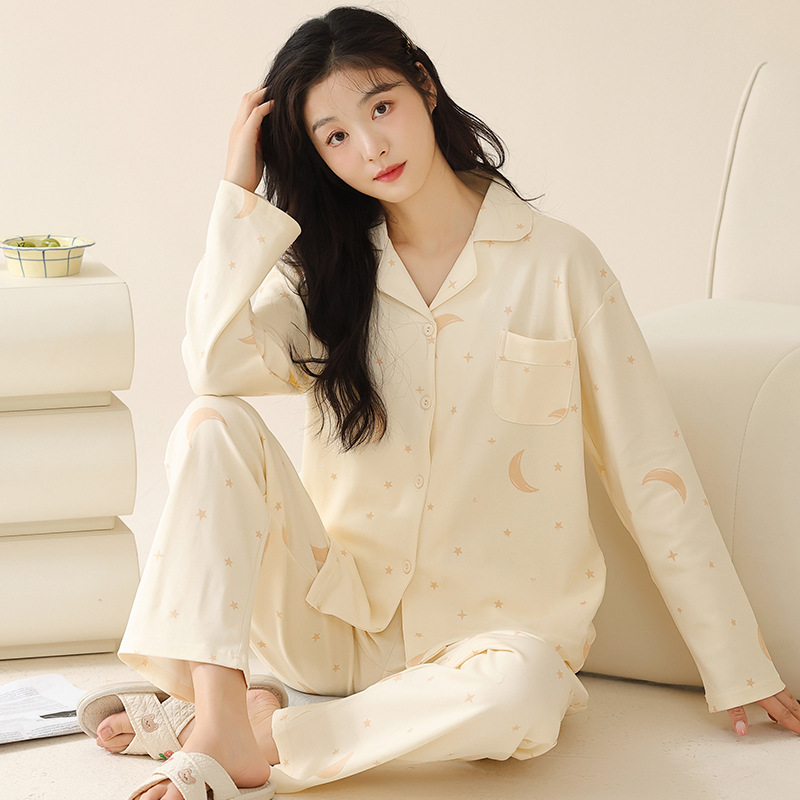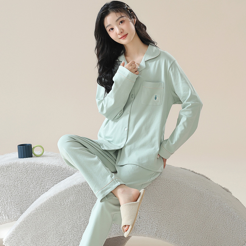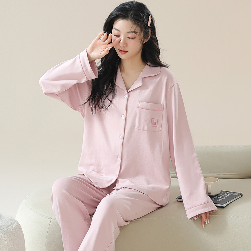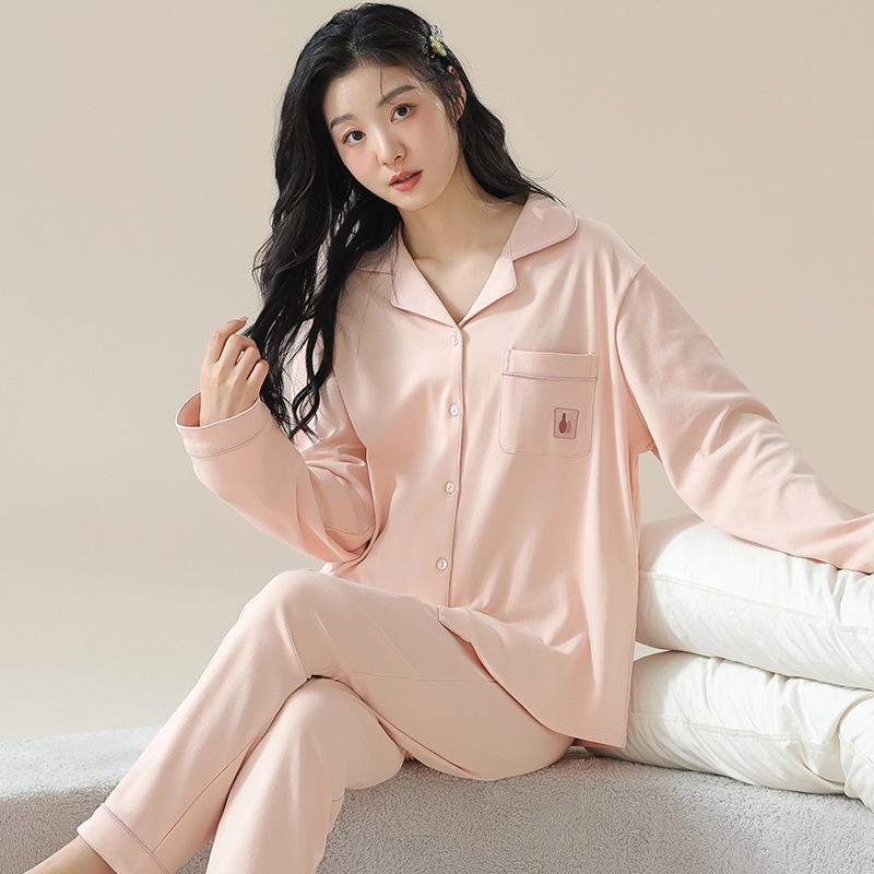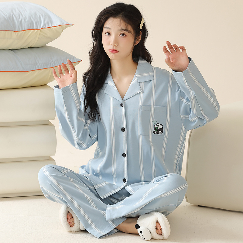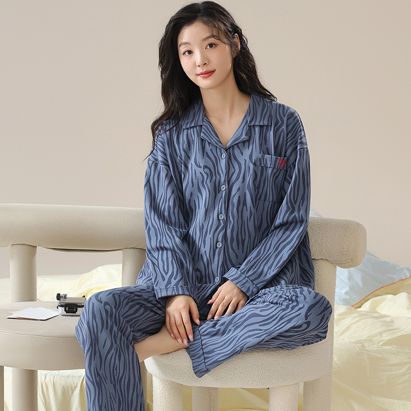 잠옷 여성의 봄과 가을 긴 소매 코튼 한국 스타일 간단한 캐주얼 플러스 사이즈 카디건 가을 겨울 홈 의류 세트스토어 가기