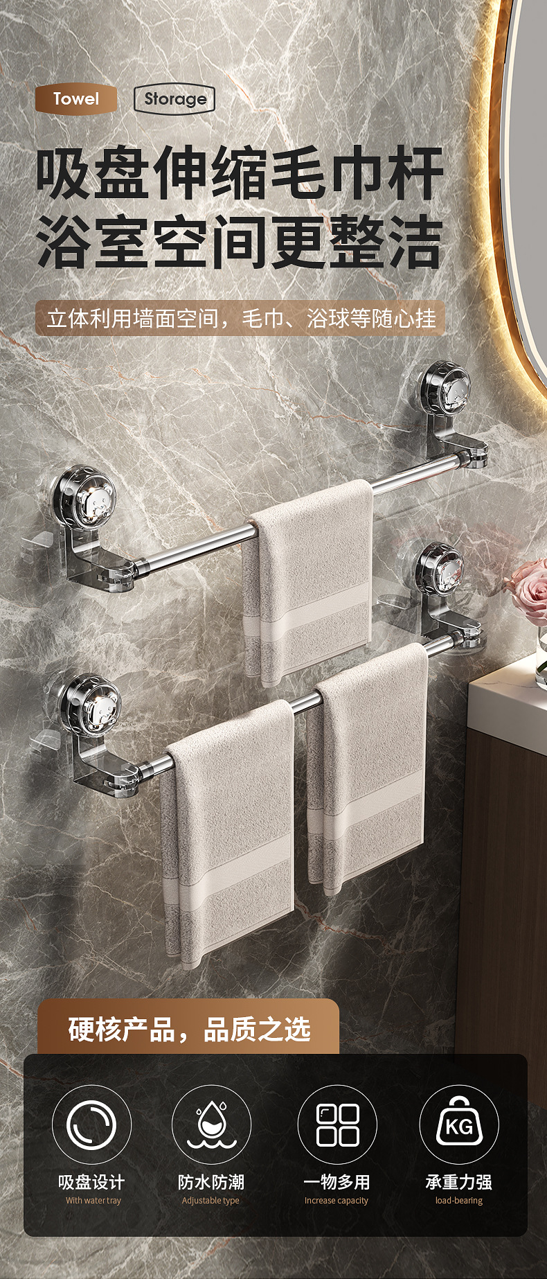 새로운 흡입 컵 슬리퍼 랙 욕실 비 천공 화장실 텔레스코픽 저장 유물 화장실 슬리퍼 랙 배수 랙