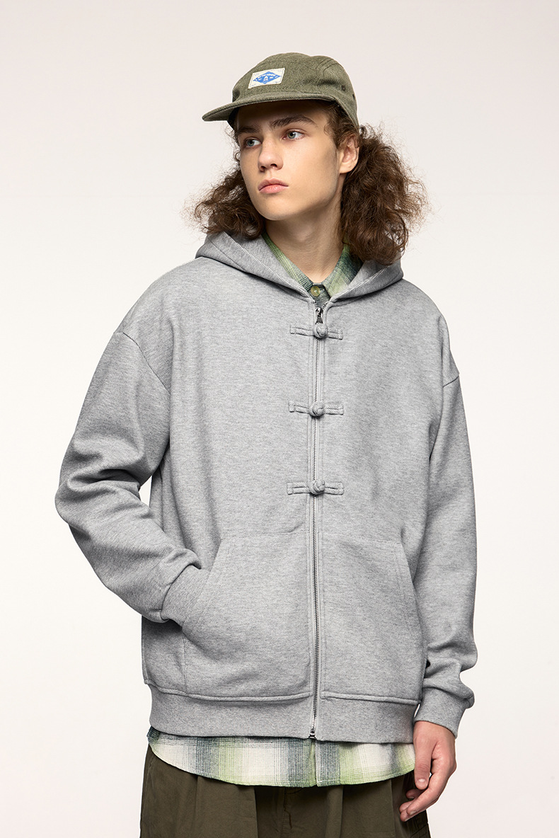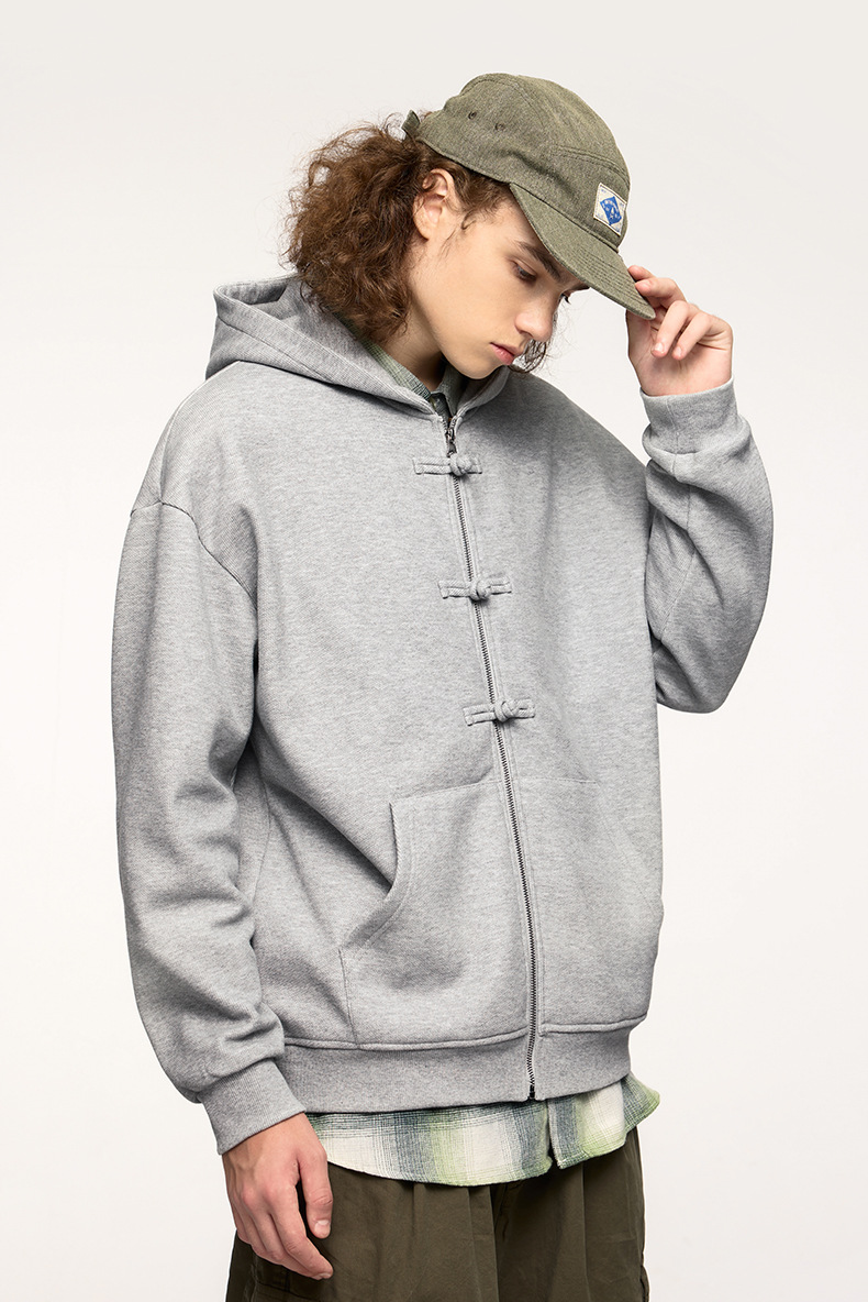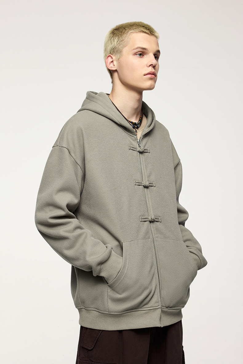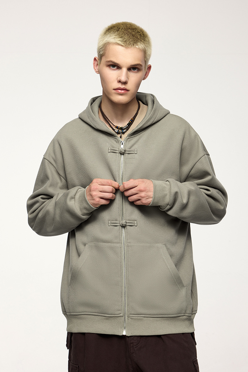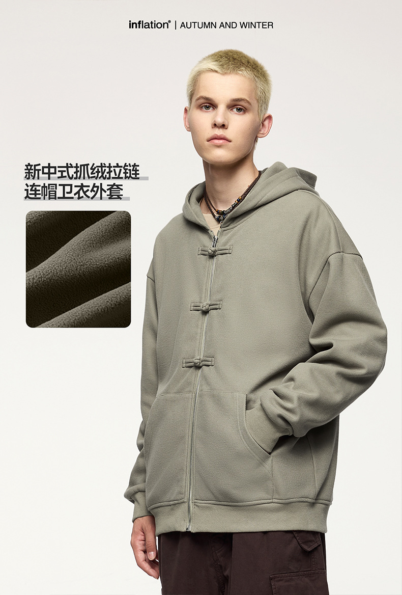지에잔 남성복 | 410g 신상 중국풍 플리스 지퍼 후드 스웨트셔츠 2026 남성용 봄 아우터 버튼탑스토어 가기