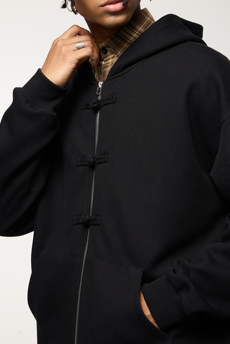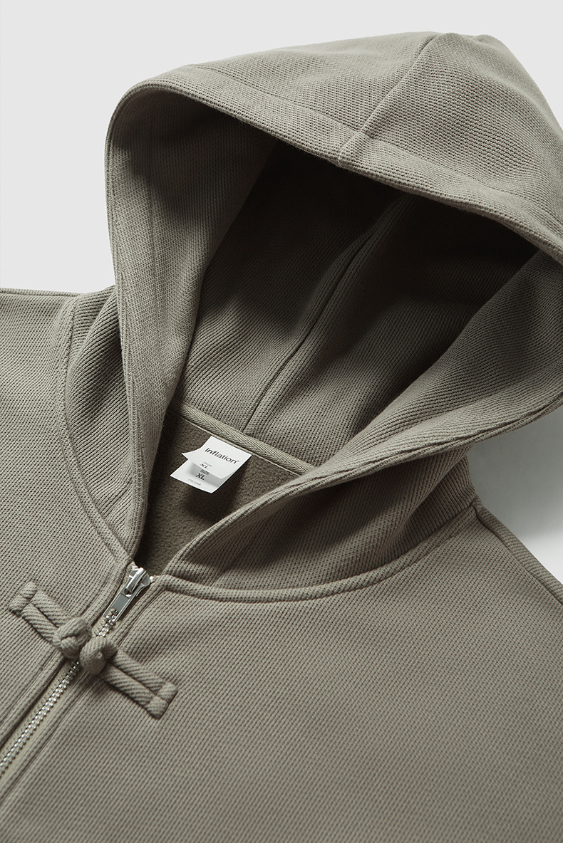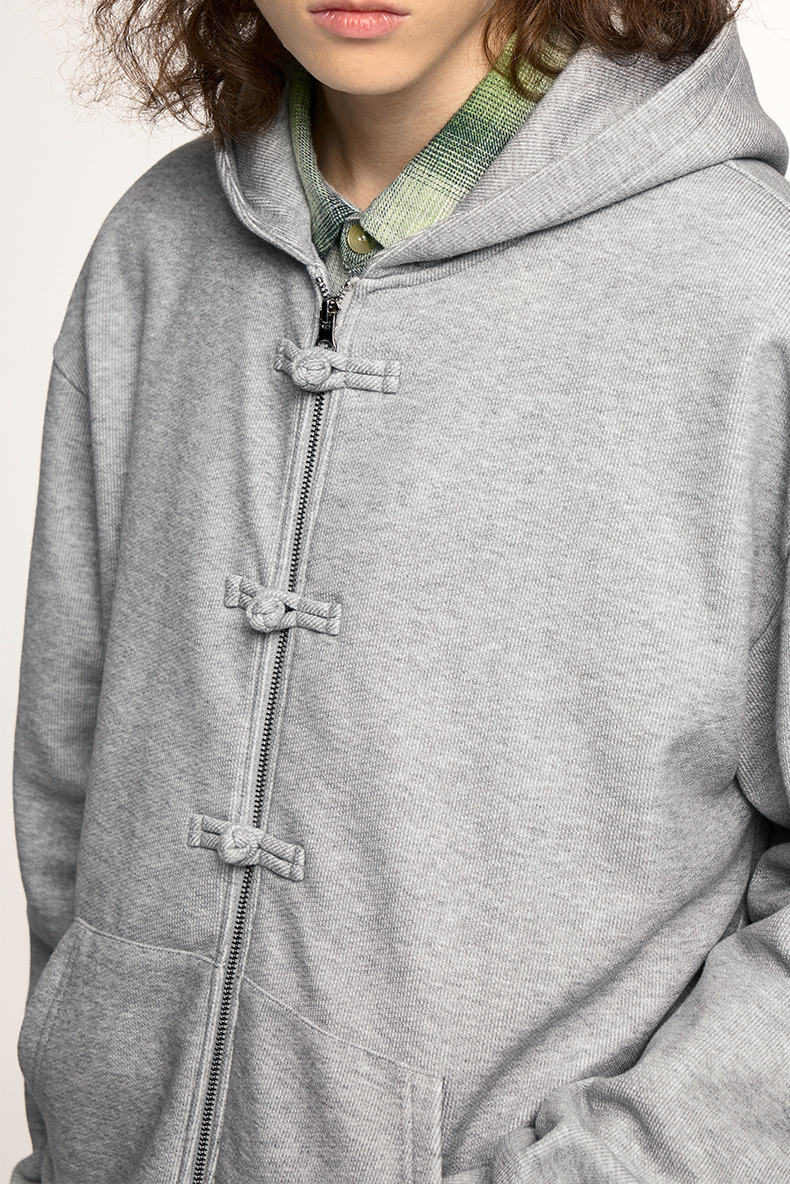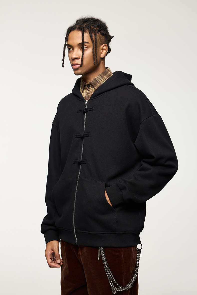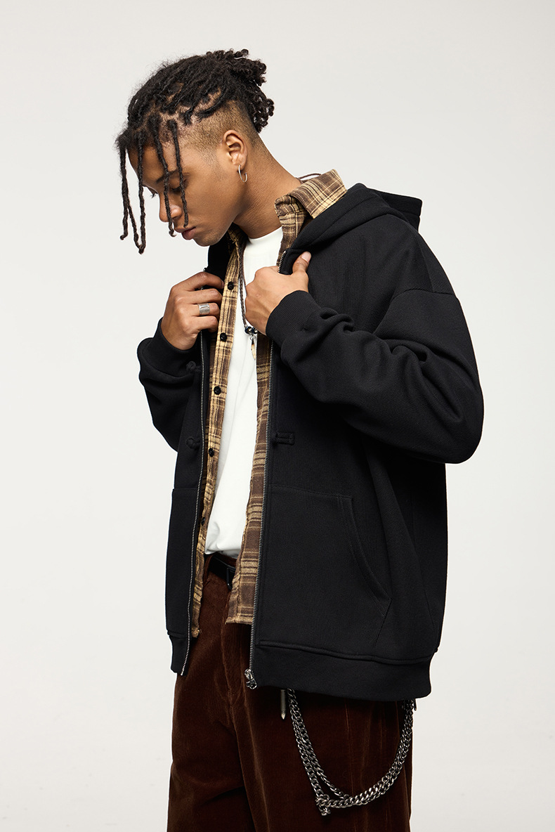 지에잔 남성복 | 410g 신상 중국풍 플리스 지퍼 후드 스웨트셔츠 2026 남성용 봄 아우터 버튼탑스토어 가기