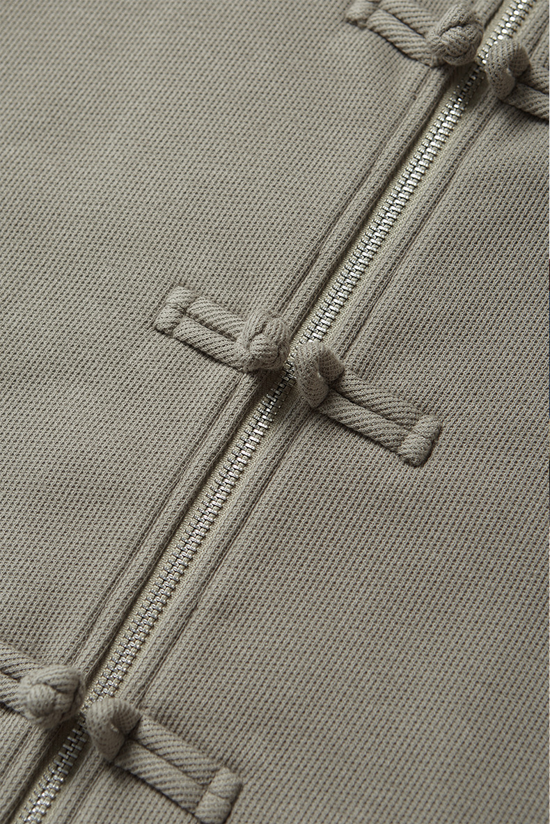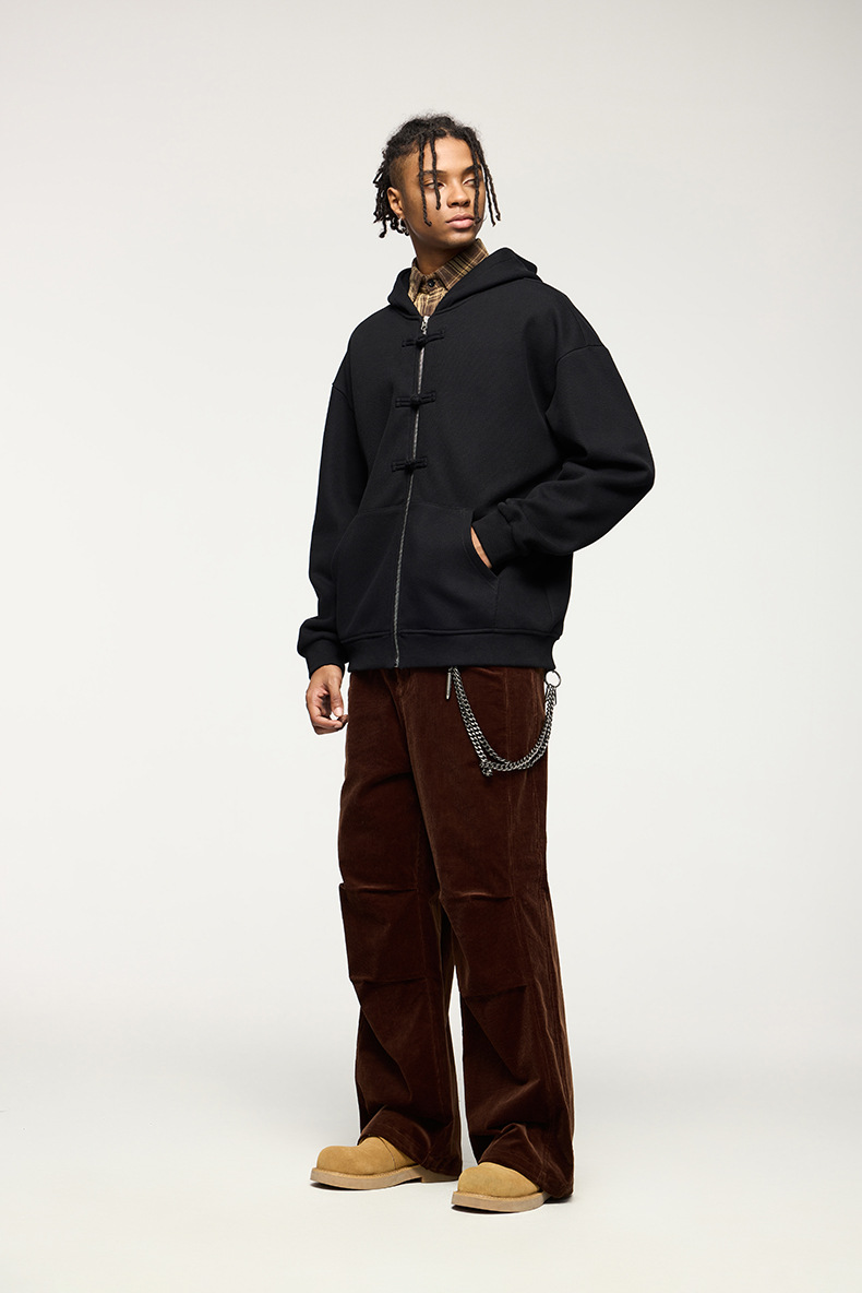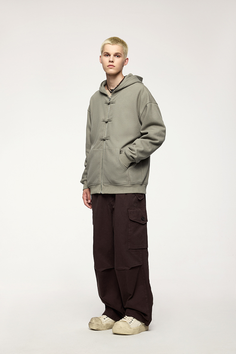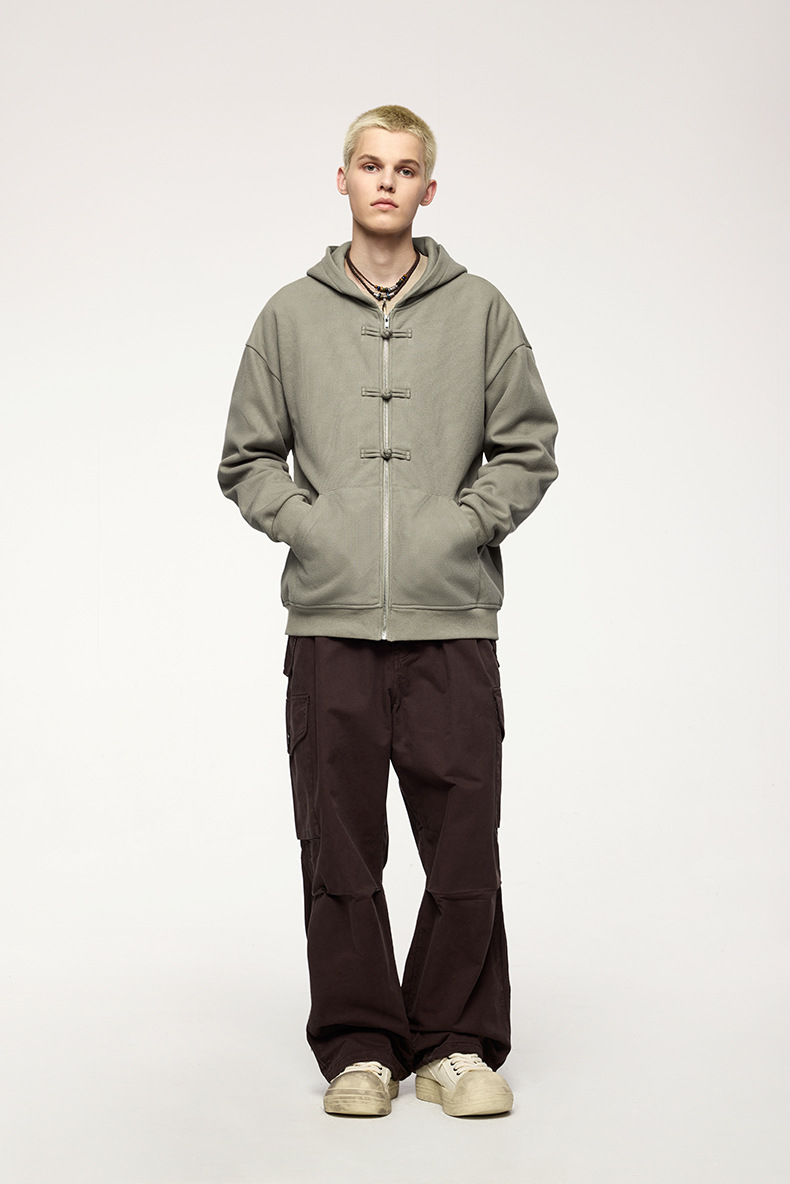 지에잔 남성복 | 410g 신상 중국풍 플리스 지퍼 후드 스웨트셔츠 2026 남성용 봄 아우터 버튼탑