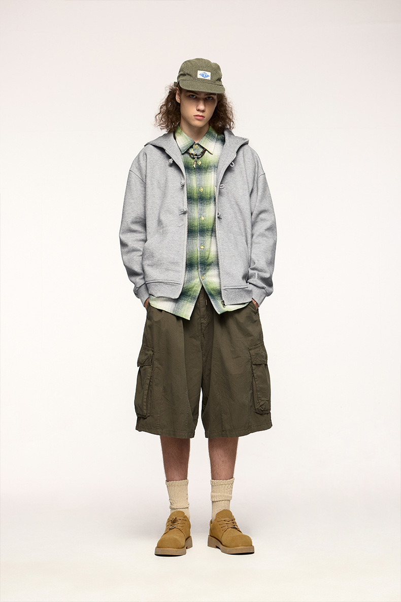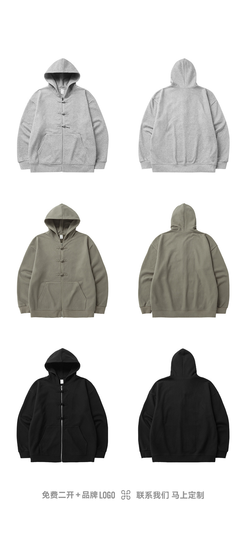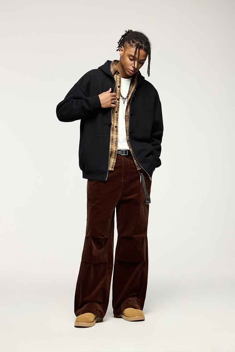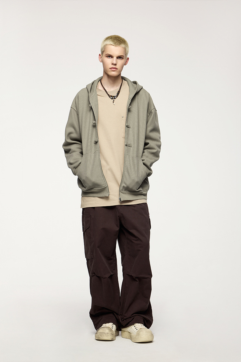 지에잔 남성복 | 410g 신상 중국풍 플리스 지퍼 후드 스웨트셔츠 2026 남성용 봄 아우터 버튼탑